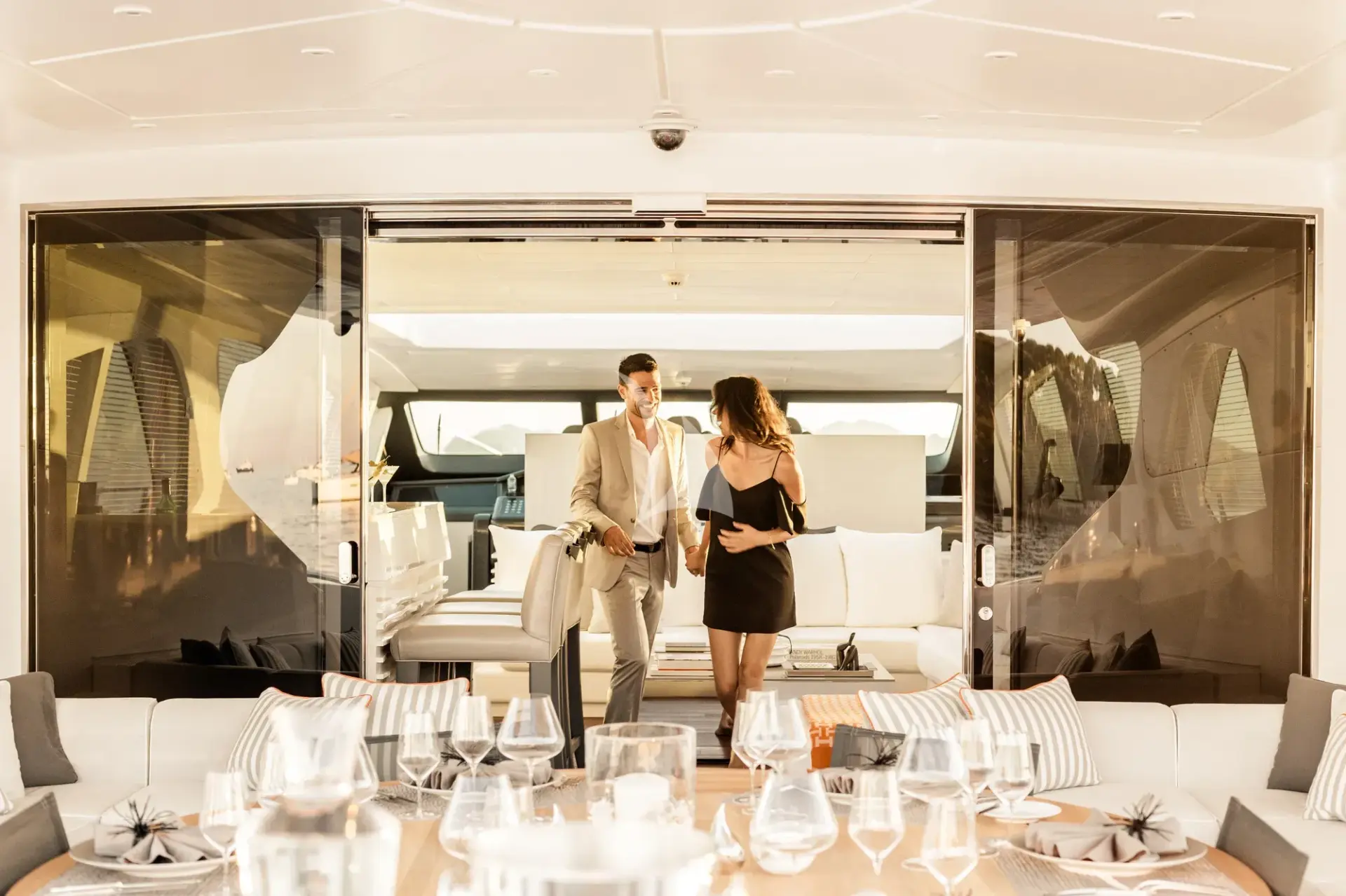A stand out yacht, BEACHOUSE is known for its comfort and modern airy interior décor. Inspired by a luxury BEACHOUSE, it features light panels throughout the yacht with soft furnishings that complement the neutral toned fabrics, with warm wooden floors. The yacht also features bespoke modern art and vibrant colors that harmoniously blend with the rest of the yacht.