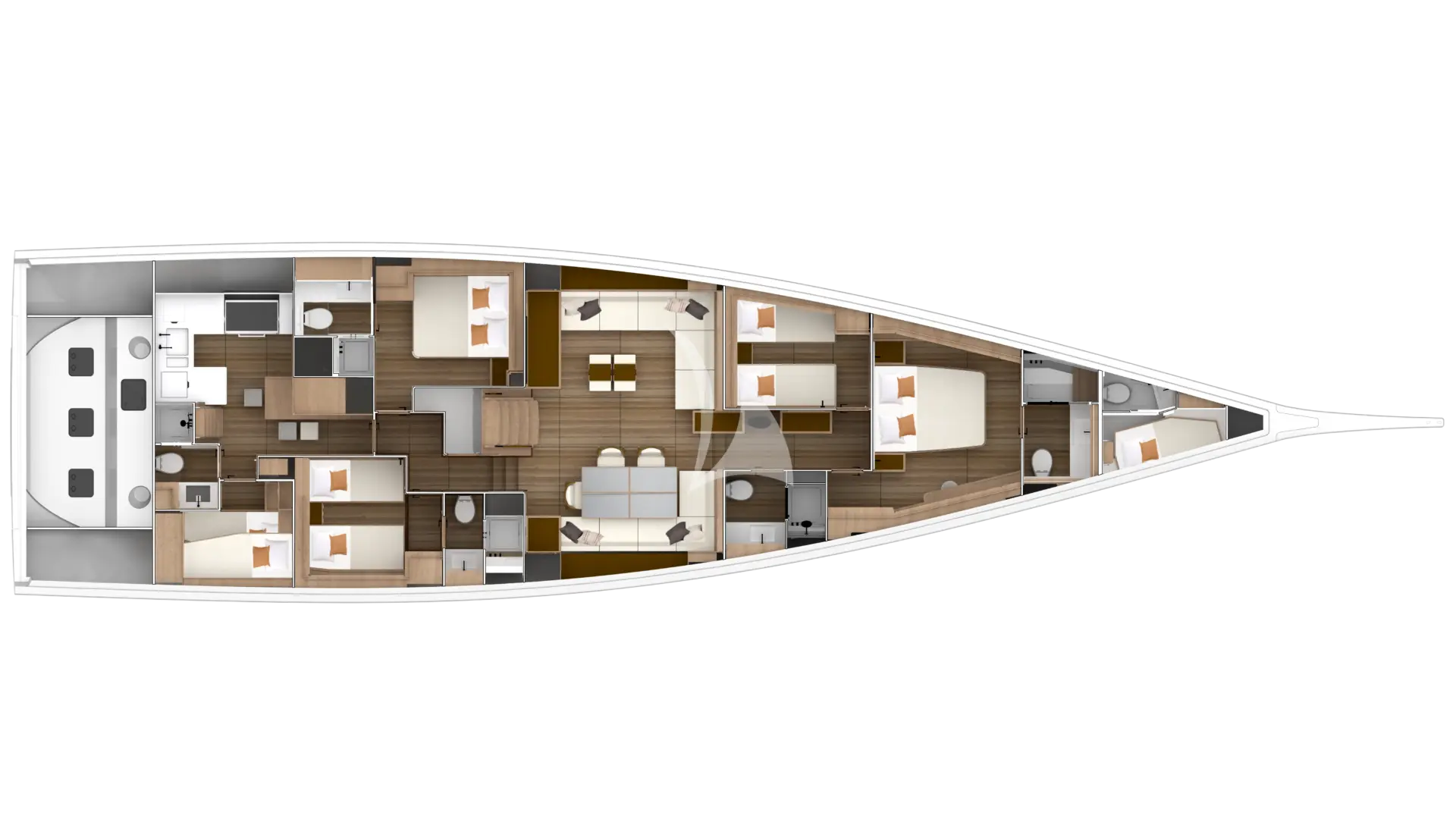 Built by Cantiere del Pardo, with naval architecture by Matteo Polli and design by Nauta Design, BIANCA II represents the most performance-focused evolution of the Grand Soleil Plus range. She offers the presence and comfort of a true luxury yacht while remaining responsive, agile, and rewarding to sail. The spacious, well-organised cockpit features long seating areas and generous sunbathing spaces, making it equally comfortable when sailing or relaxing at anchor. Her deep keel and optimised hull provide excellent stability, precise handling, and confident control in a wide range of conditions.