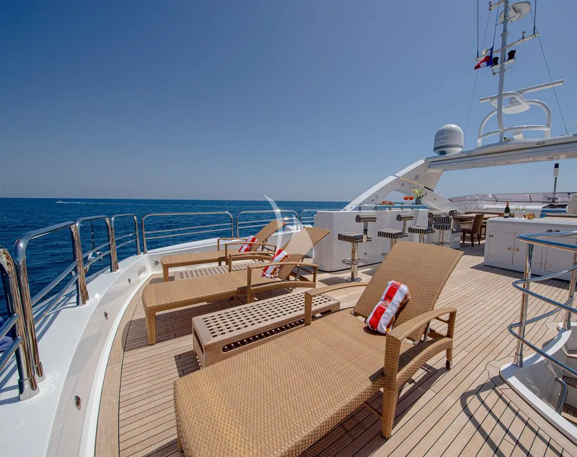 M/Y Blade I is a 34m (112ft) Sunseeker, built in 2009, offering a blend of sporty performance and elegant comfort. She accommodates up to 10 guests in 5 cabins, with both twin staterooms convertible to double staterooms, and is operated by a professional crew of 6.