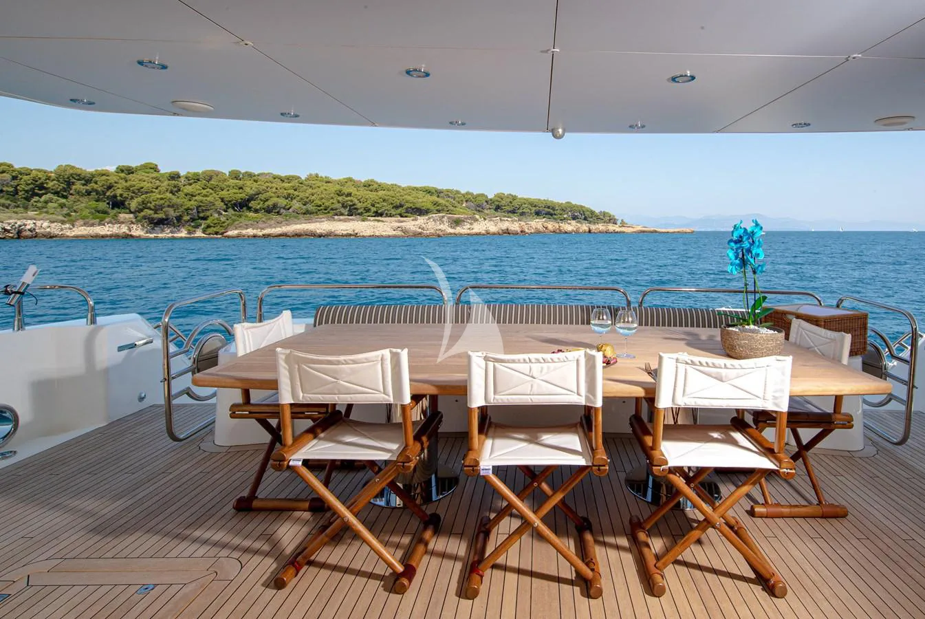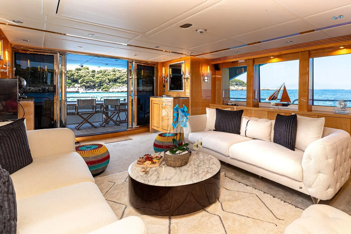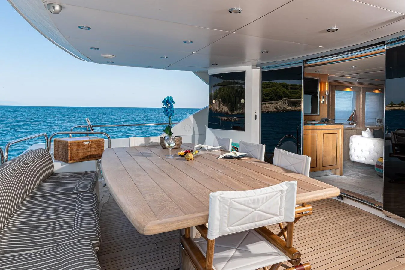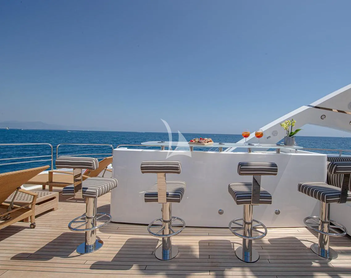 A hydraulic balcony opens from the main salon, creating a seamless indoor–outdoor living space. Stabilizers at anchor and underway ensure excellent comfort, while Starlink provides reliable onboard connectivity. With a maximum speed of 26 knots and having been fully refit in 2026, M/Y Blade I is ideal for cruising Greece in style.