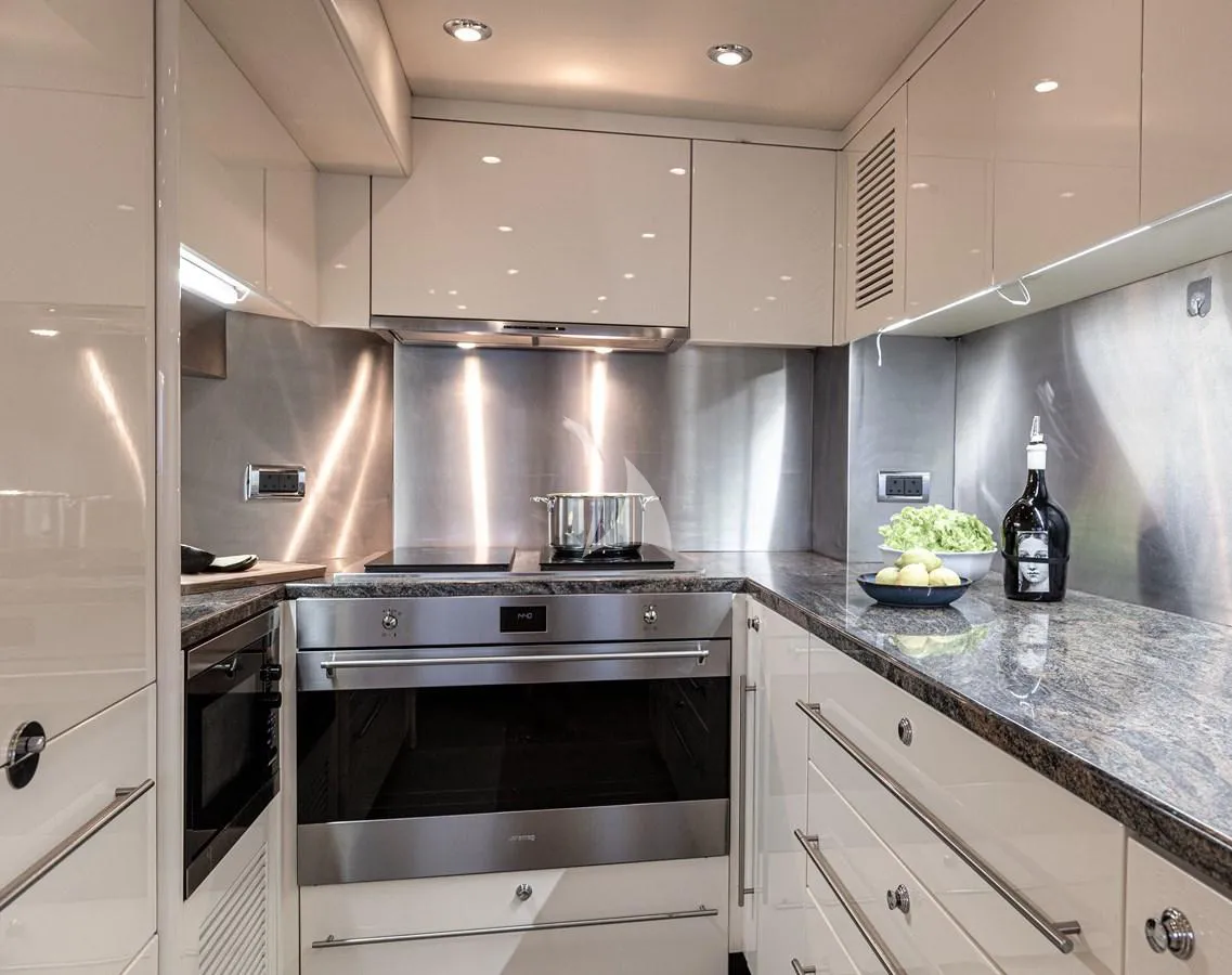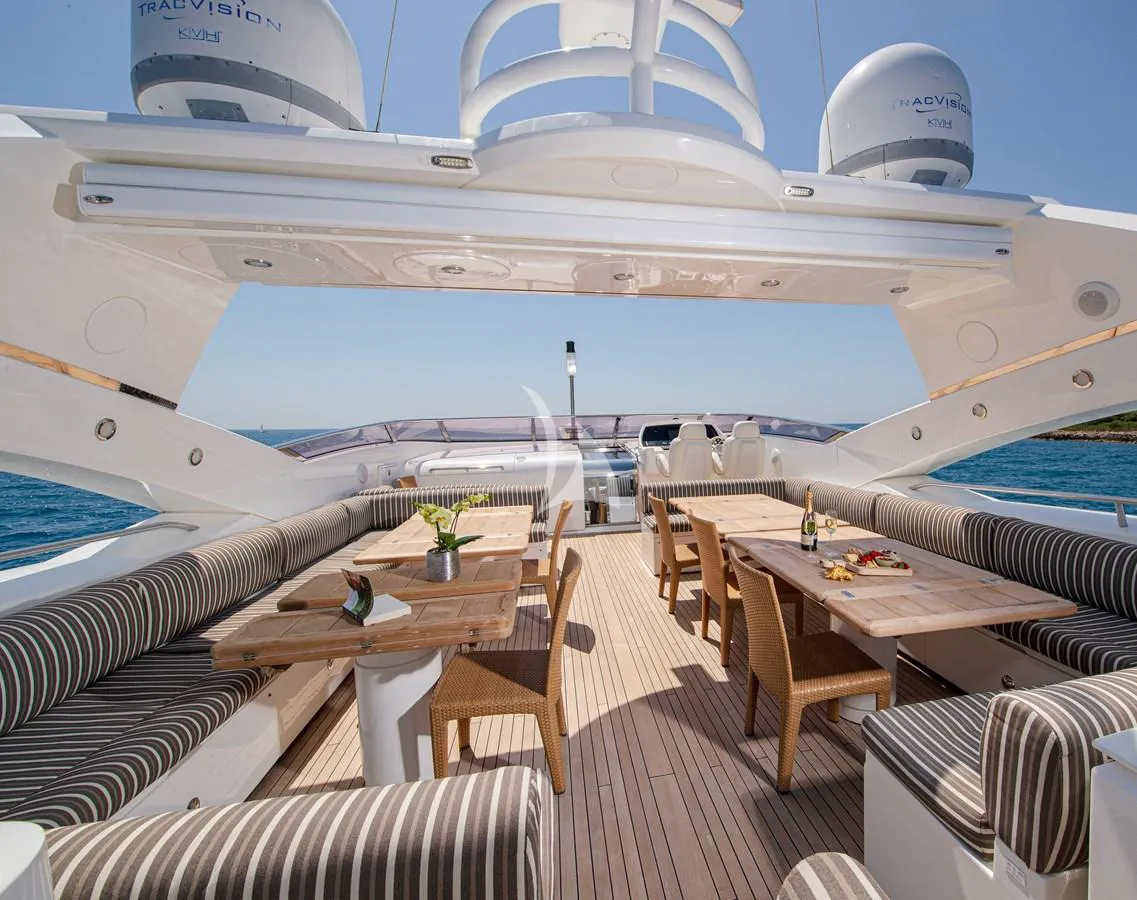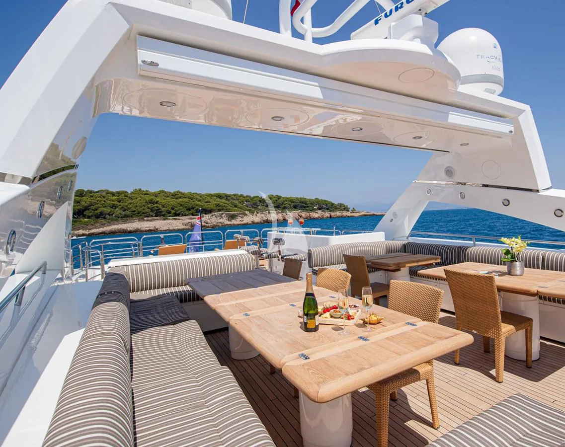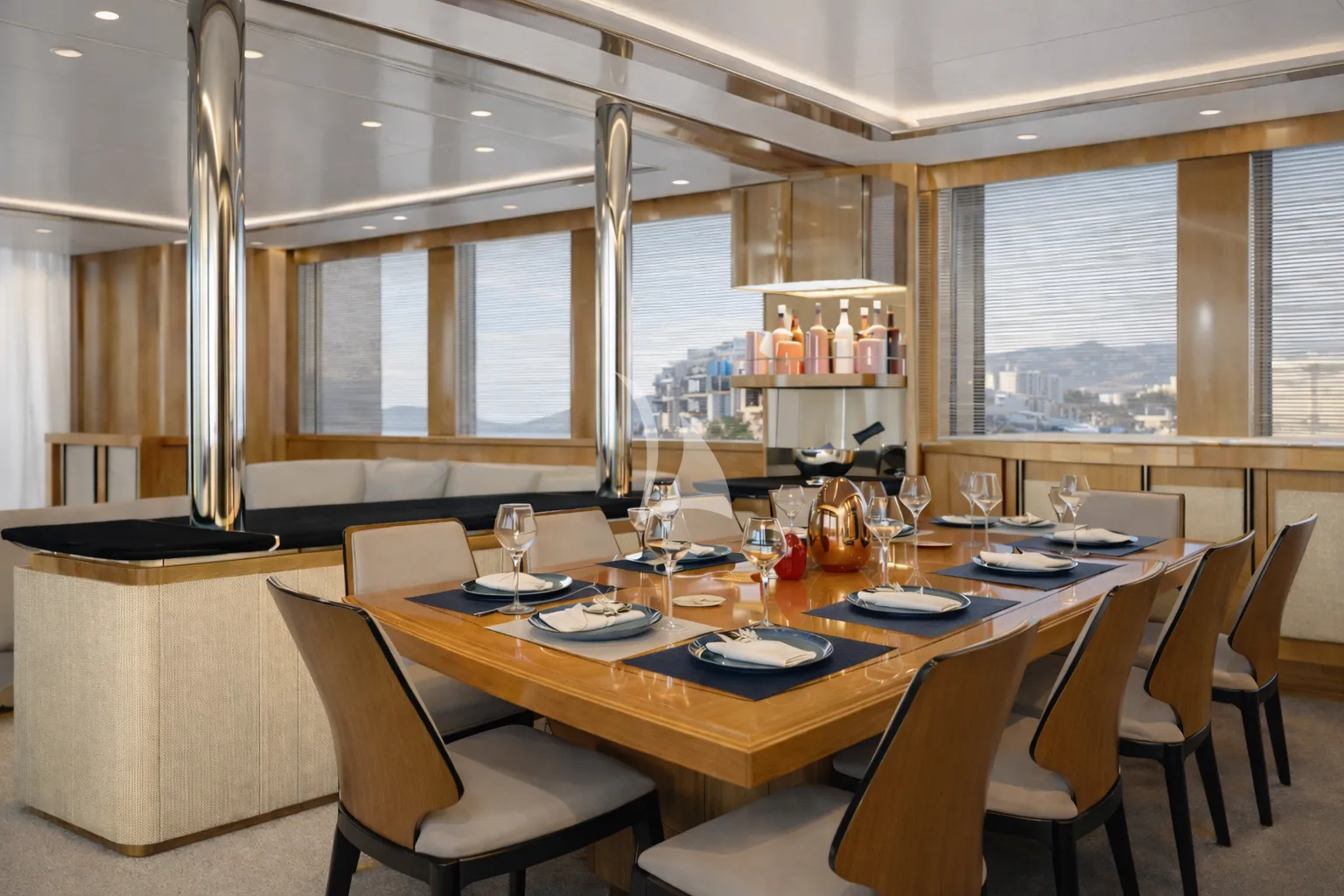 A hydraulic balcony opens from the main salon, creating a seamless indoor–outdoor living space. Stabilizers at anchor and underway ensure excellent comfort, while Starlink provides reliable onboard connectivity. With a maximum speed of 26 knots and having been fully refit in 2026, M/Y Blade I is ideal for cruising Greece in style.