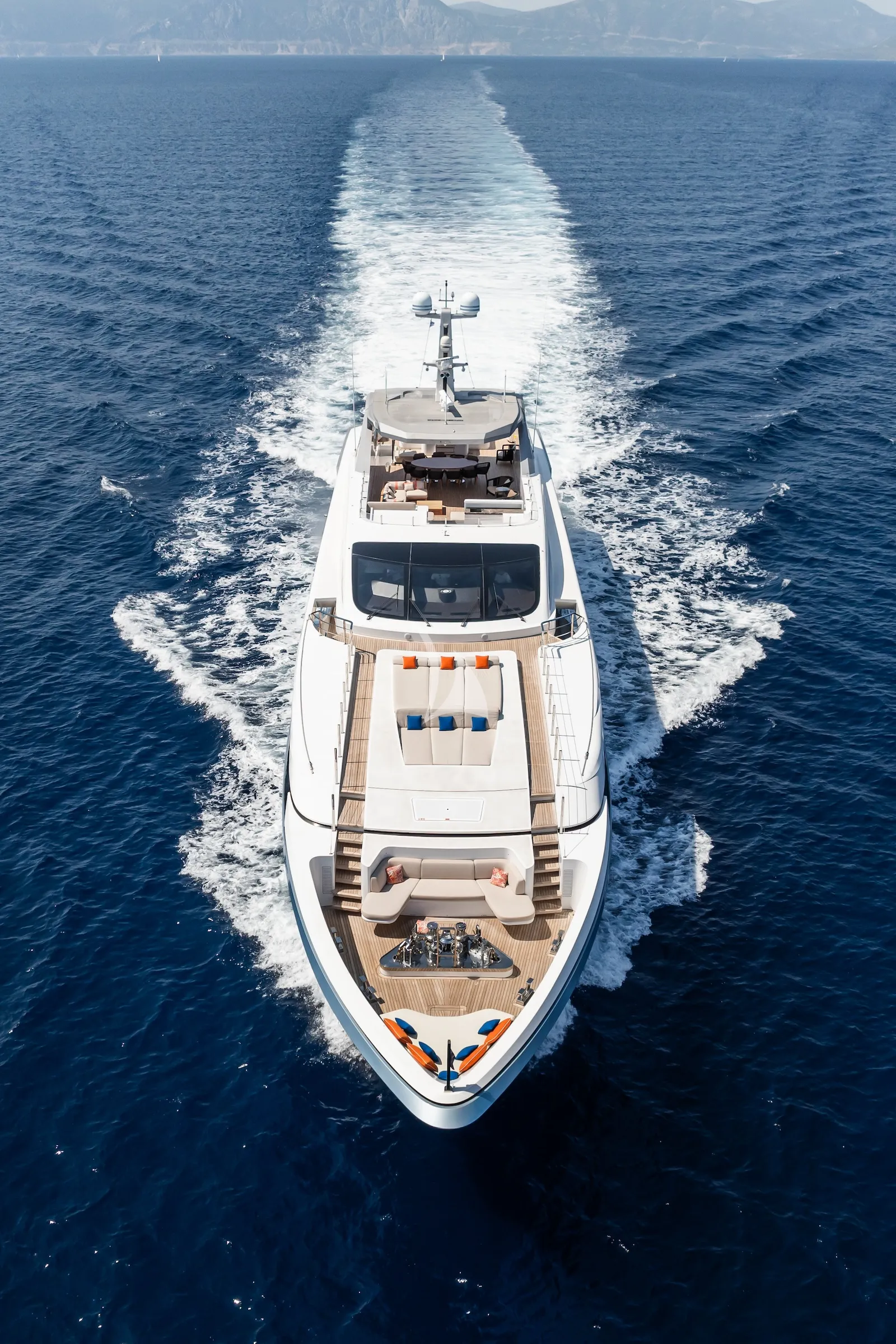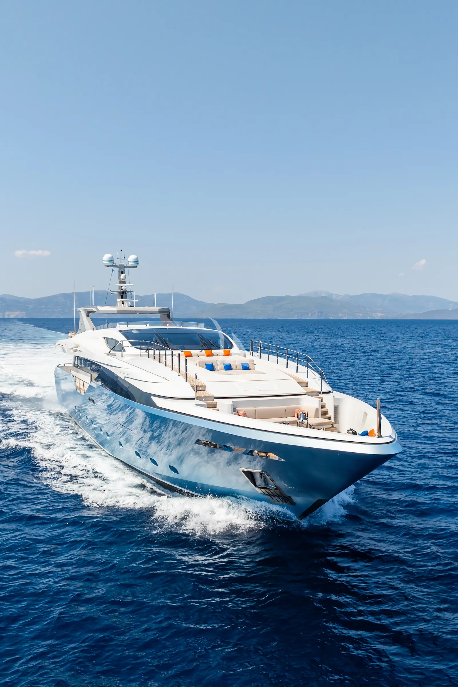 BLUE MOON is equipped with an advanced planing hull and triple MTU engines, enabling her to achieve impressive speeds. Her shallow draft of 1.91 meters allows for exploration in shallower waters, providing dynamic and varied itineraries.