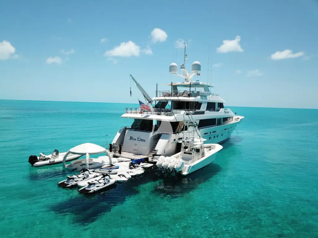 Step aboard the newly refit Blue Time, a 130-foot luxury motor yacht that blends timeless elegance with modern sophistication. Fresh from a comprehensive 2024 refit, Blue Time is better than ever—boasting upgraded interiors, cutting-edge technology, and enhanced amenities that set the stage for an unforgettable yachting experience. Designed for both comfort and performance, Blue Time accommodates up to 10 guests in five beautifully appointed staterooms, including four king suites and a versatile twin cabin, ideal for families or mixed groups. With a professional 7-person crew led by veteran charter Captain David, every detail of your journey is expertly handled.