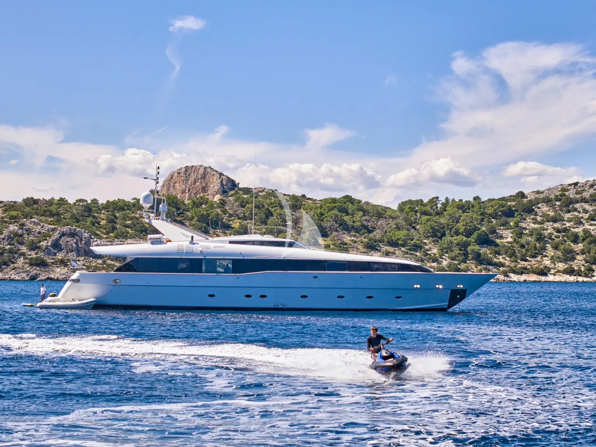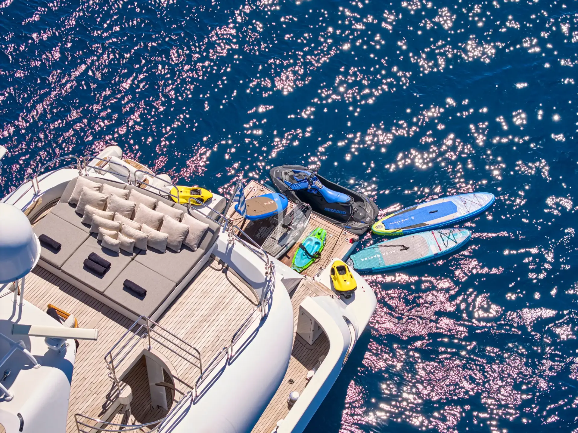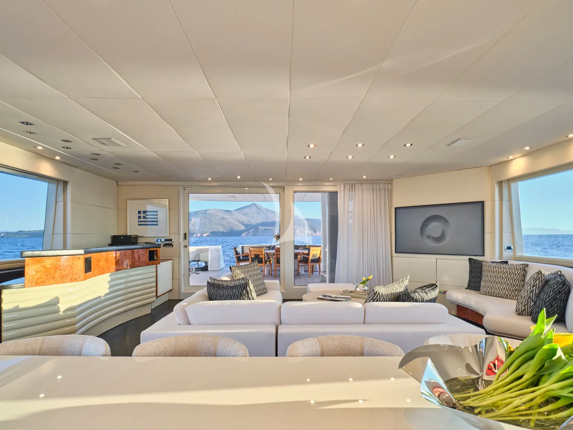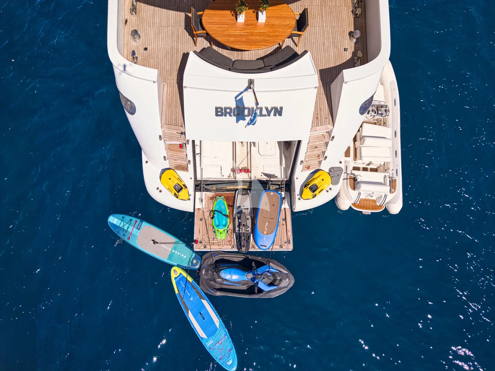 She boasts a swim platform, making accessing the crystal-clear waters of the Mediterranean effortless. BROOKLYN is the perfectly sized vessel for family holidays on the water boasting five spacious staterooms that can be configured to sleep up to 10 guests. Her voluminous full-beam Master Suite on main deck with sauna includes a luxurious en-suite bathroom with a sauna and a separate area that can be used as an office . Her remaining VIP, Double, and Twin Staterooms ensure guests enjoy the height of luxury, privacy, and exclusivity.