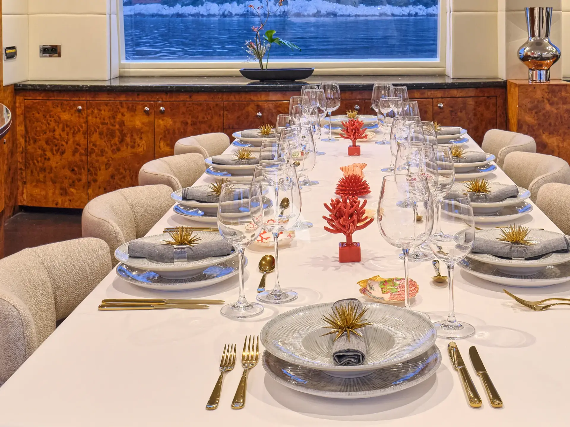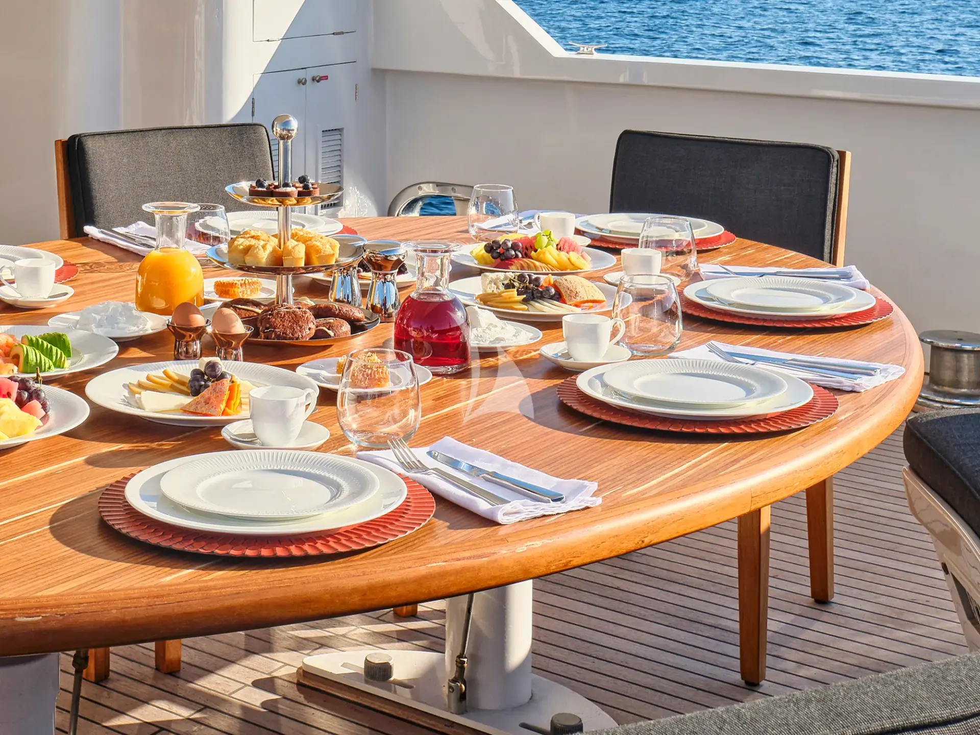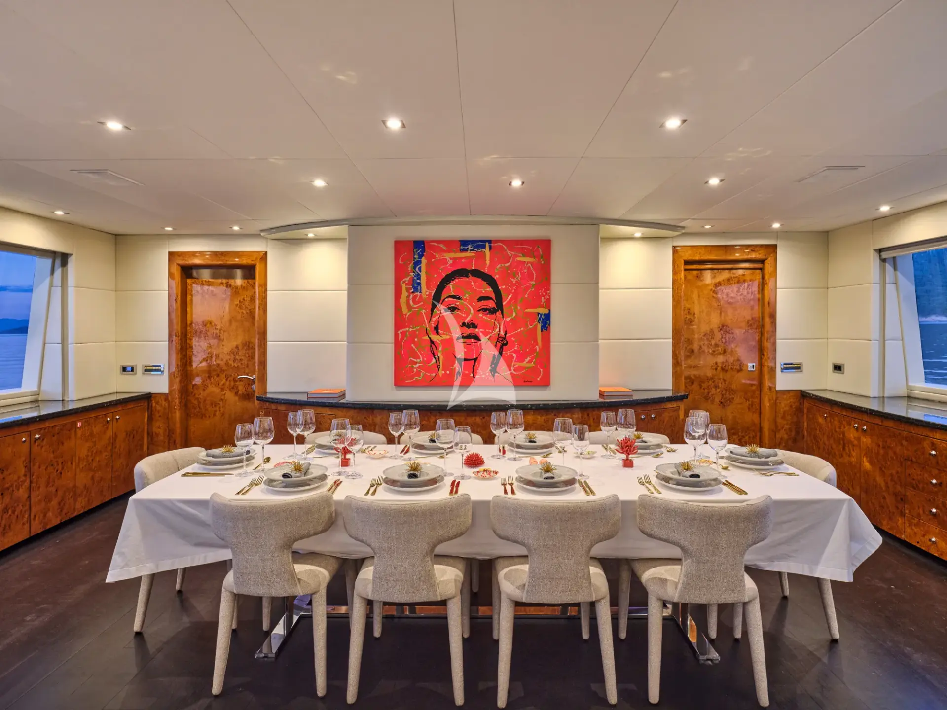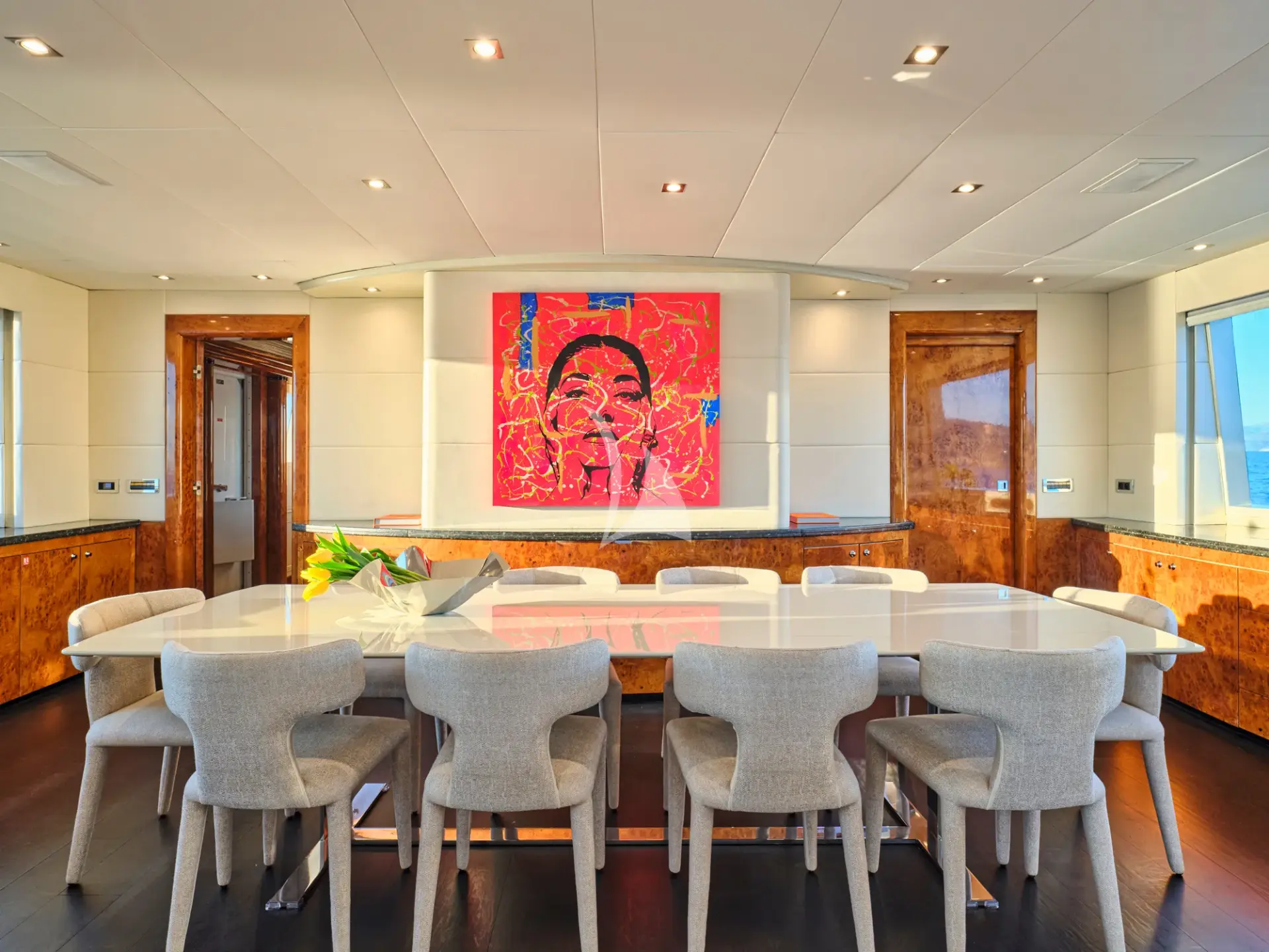 She boasts a swim platform, making accessing the crystal-clear waters of the Mediterranean effortless. BROOKLYN is the perfectly sized vessel for family holidays on the water boasting five spacious staterooms that can be configured to sleep up to 10 guests. Her voluminous full-beam Master Suite on main deck with sauna includes a luxurious en-suite bathroom with a sauna and a separate area that can be used as an office . Her remaining VIP, Double, and Twin Staterooms ensure guests enjoy the height of luxury, privacy, and exclusivity.