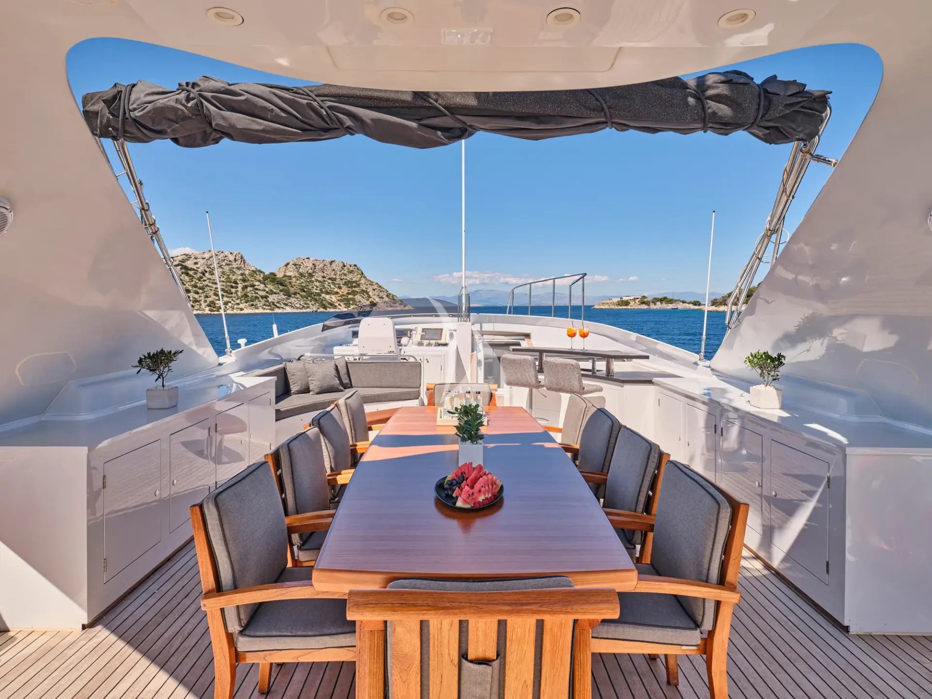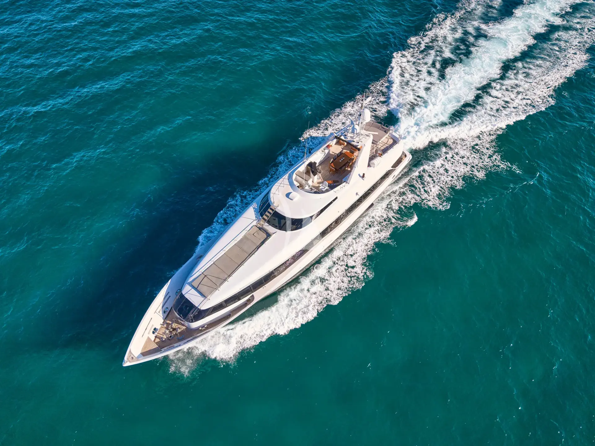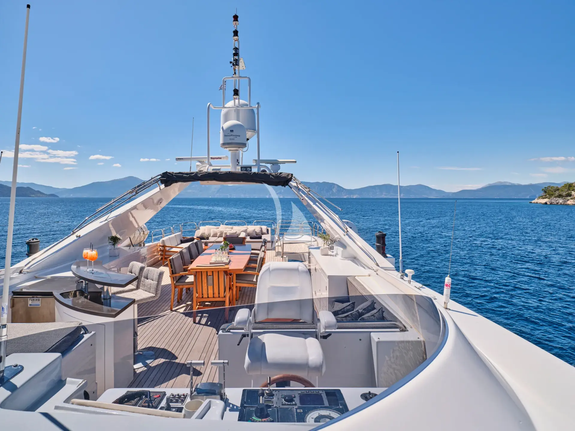 Impressive leisure and entertainment facilities includes a sun deck with custom furniture and a large sun pad on the bow which make her the ideal motor yacht for socializing and entertaining with family and friends.