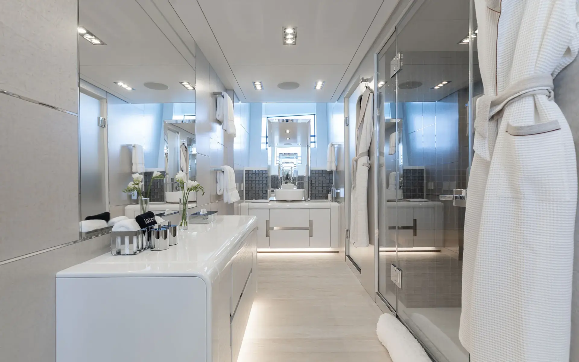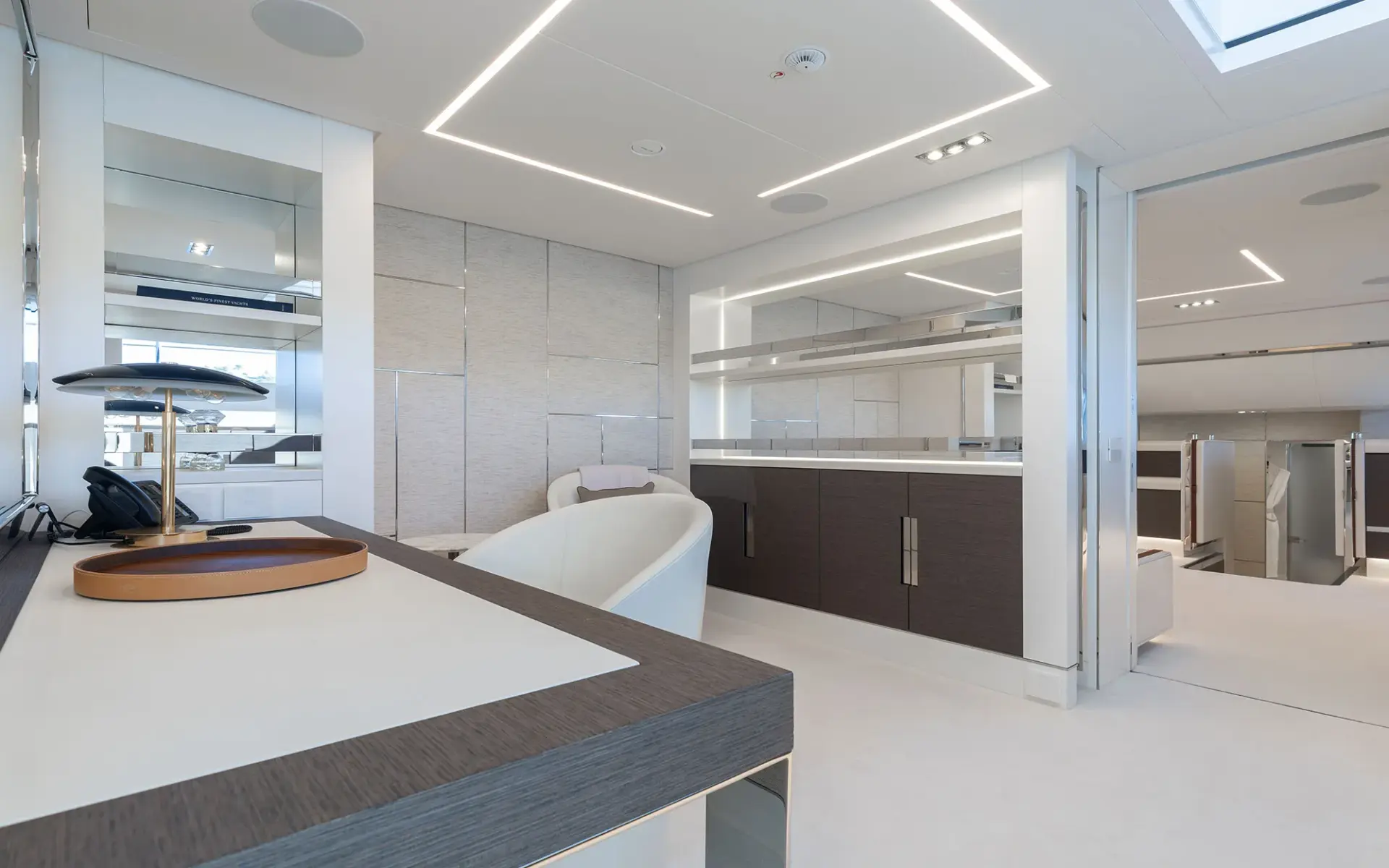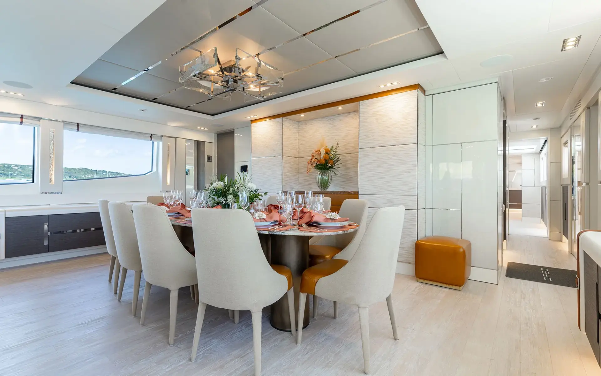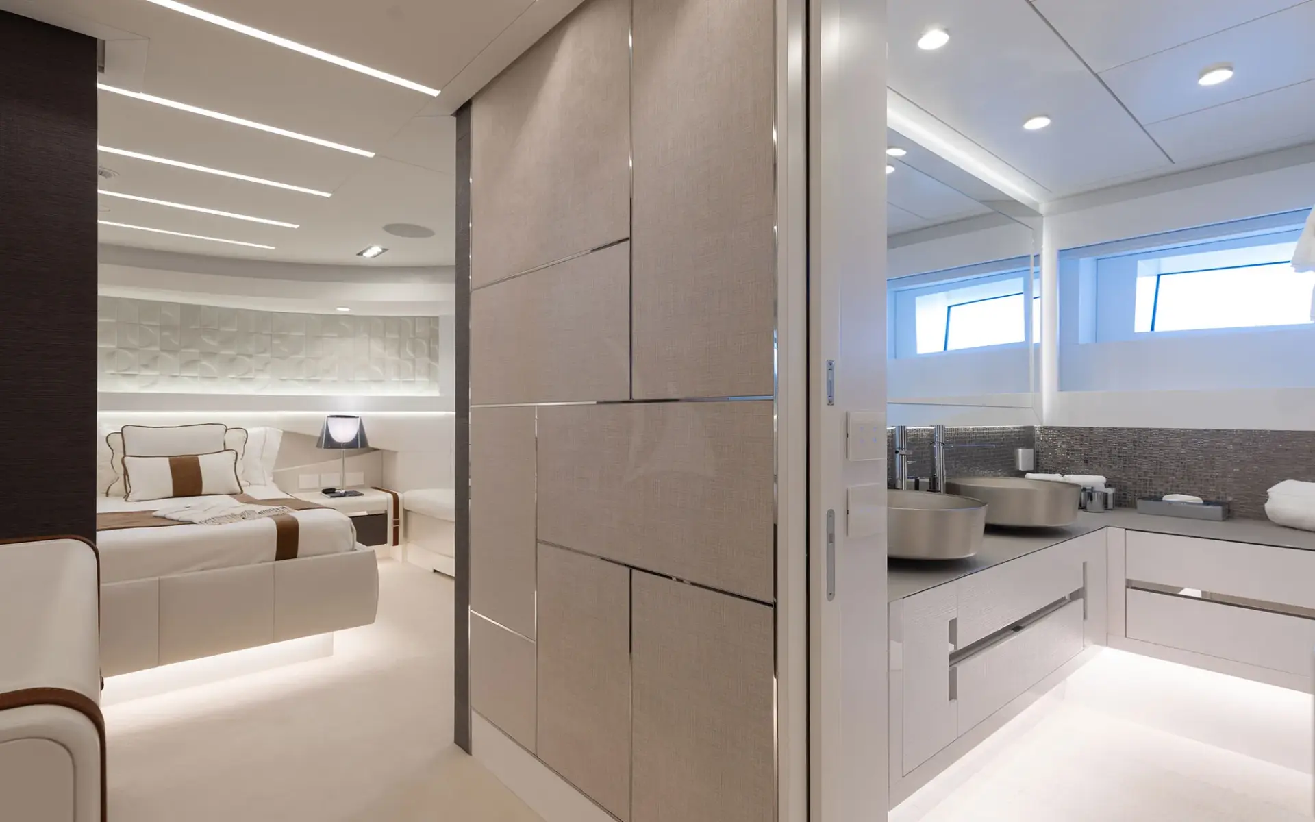 The impressive Pershing offers a sleek, sporty exterior and a modern Italian interior with large windows allowing a seamless blend with the outdoors. CABO can accommodate then guests comfortably across five luxurious staterooms including an on deck full beam Master. Four stylish and plush staterooms, all ensuite, are situated below. The top-tier amenities are endless, from the bow Jacuzzi surrounded by sunpads and optional shade, to the generous fold out beach club filled with toys and entertainment.