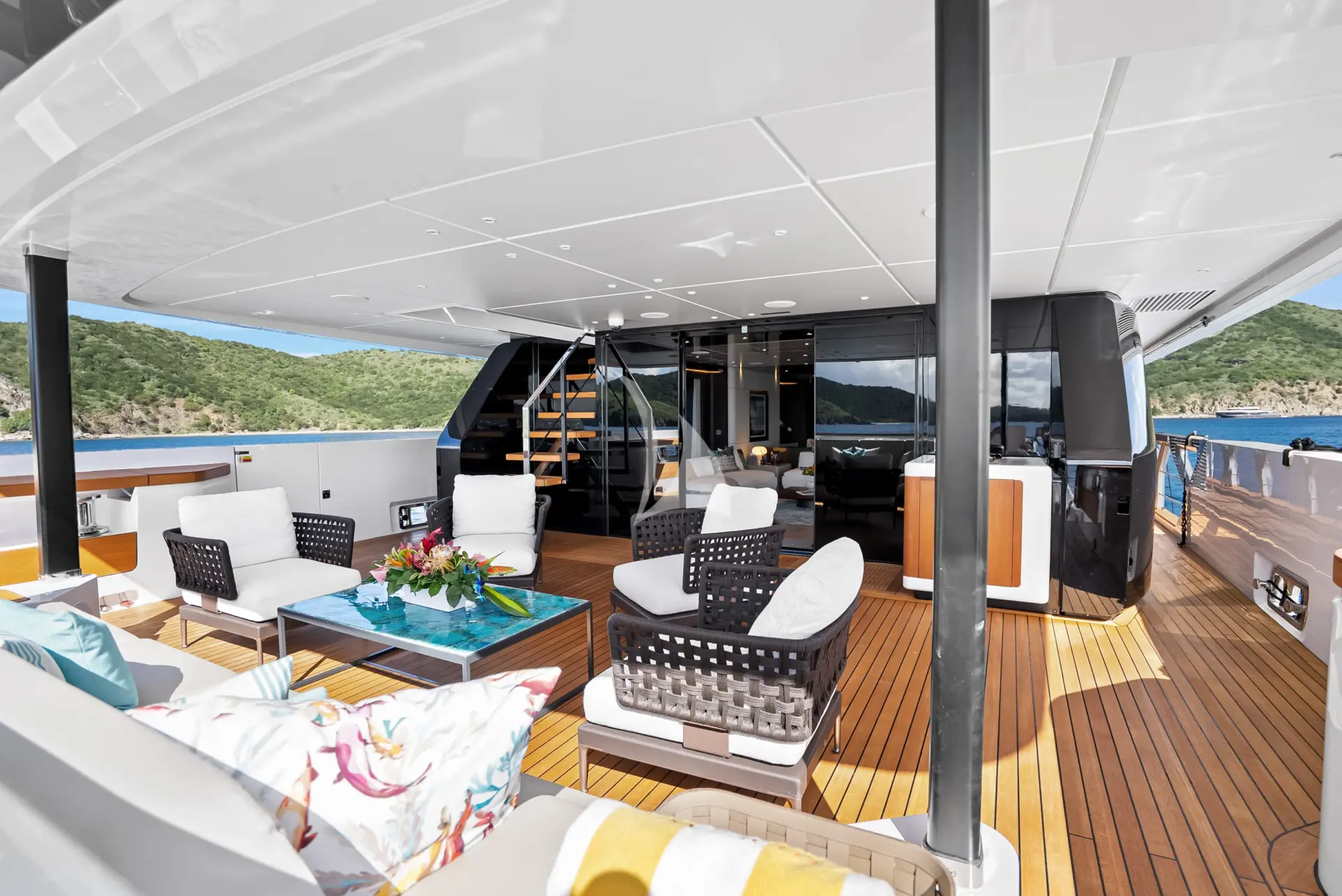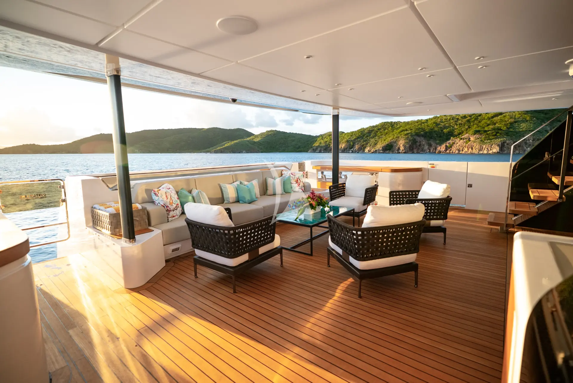 Built for efficient cruising, CANOE CANOE reaches a top speed of 20 knots, cruises comfortably at 16 knots, and burns just 60 gallons at 12 knots, making her a smart and economical choice for longer itineraries. Her design prioritizes seamless indoor-outdoor living, with a layout that encourages both relaxation and recreation.