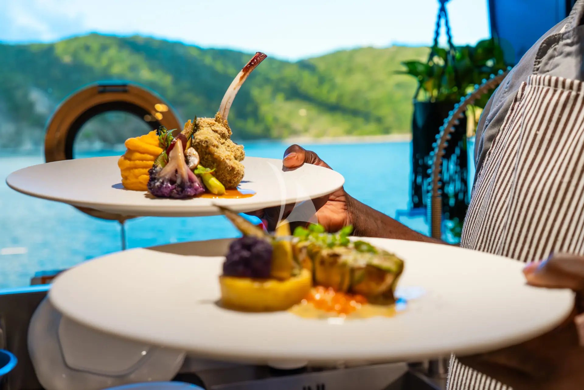 Back onboard, the ambiance transitions effortlessly from day to evening. The interior team curates tablescapes and coordinates lively themed dinner nights, adding personality and a sense of occasion to every meal. The chef brings international expertise to the galley, crafting menus tailored to guest preferences, whether light and wellness-forward or indulgent and celebratory.