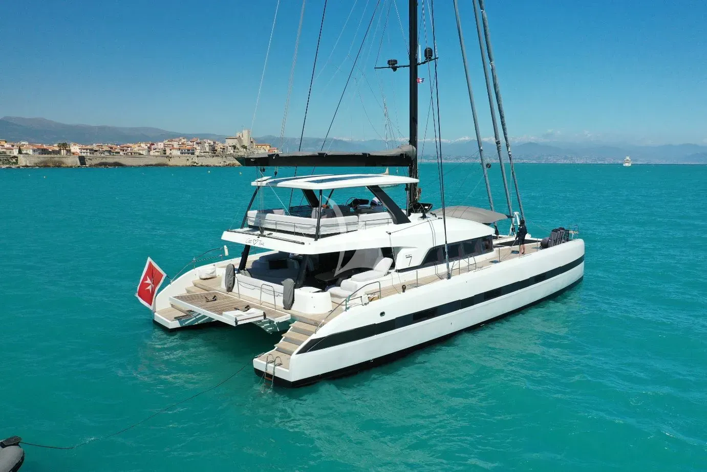 CAT TUA is a 76ft (23m) sailing yacht built by Lagoon in 2021 and refitted in 2024. She accommodates up to 8 guests in 4 cabins comprising 4 double, with a professional crew of 4 ensuring an exceptional charter experience. Available for charter in France, Italy, Spain. Notable features include registered below 24m, volumes very well maximized, refit 2024, great selection of watertoys, and low consumption.