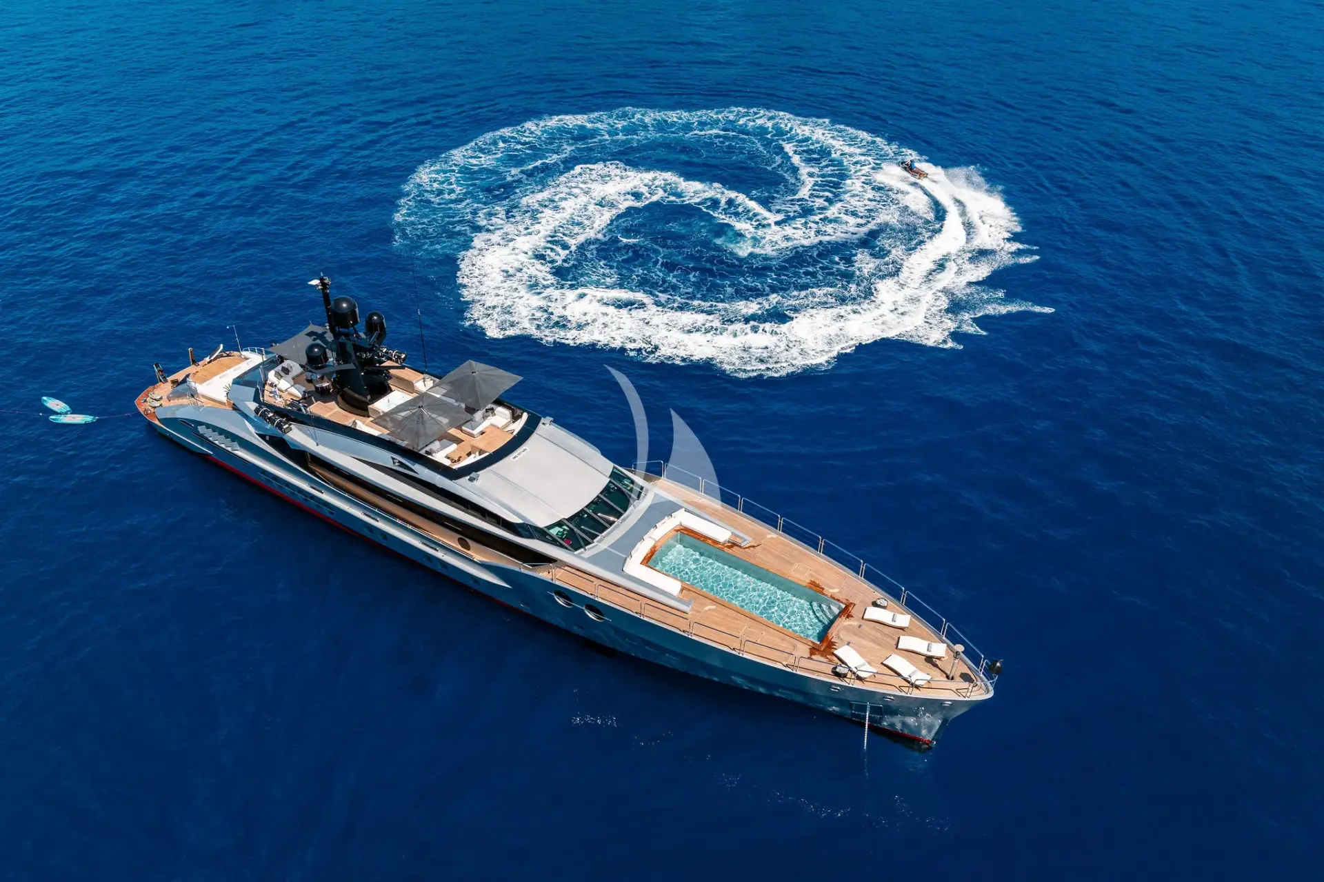 DB9 is fully equipped with an extensive collection of water toys, including a 6.4-meter (21-foot) Castoldi jet tender, two Jet Skis, two Seabobs, an inflatable kayak, a Lift e-foil, waterskis, wakeboards, and more—offering endless on-the-water adventure for guests of all ages.