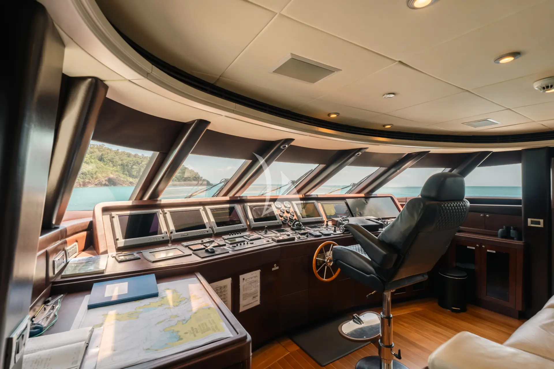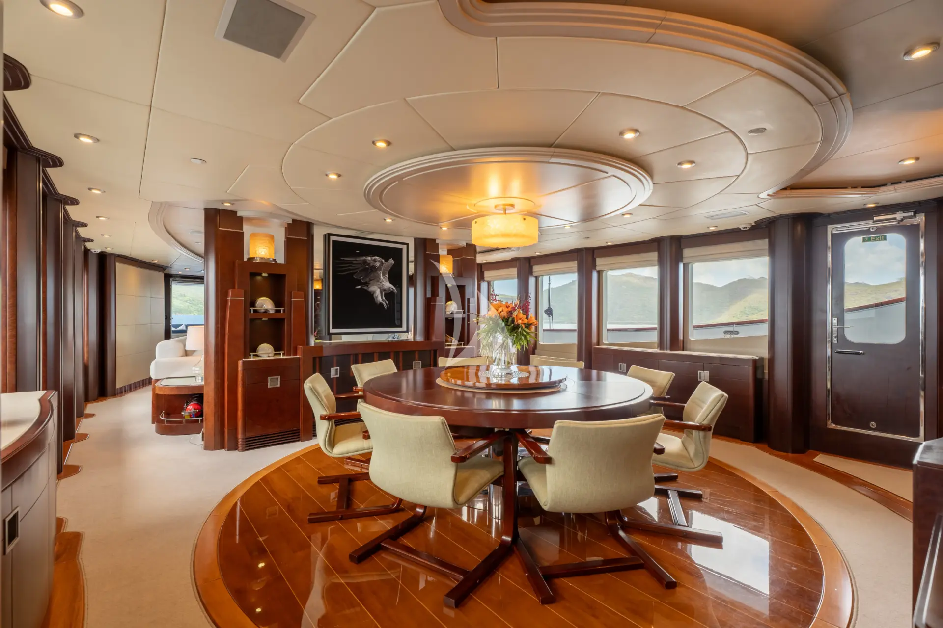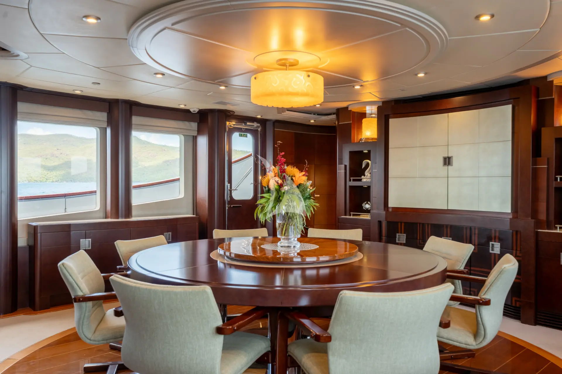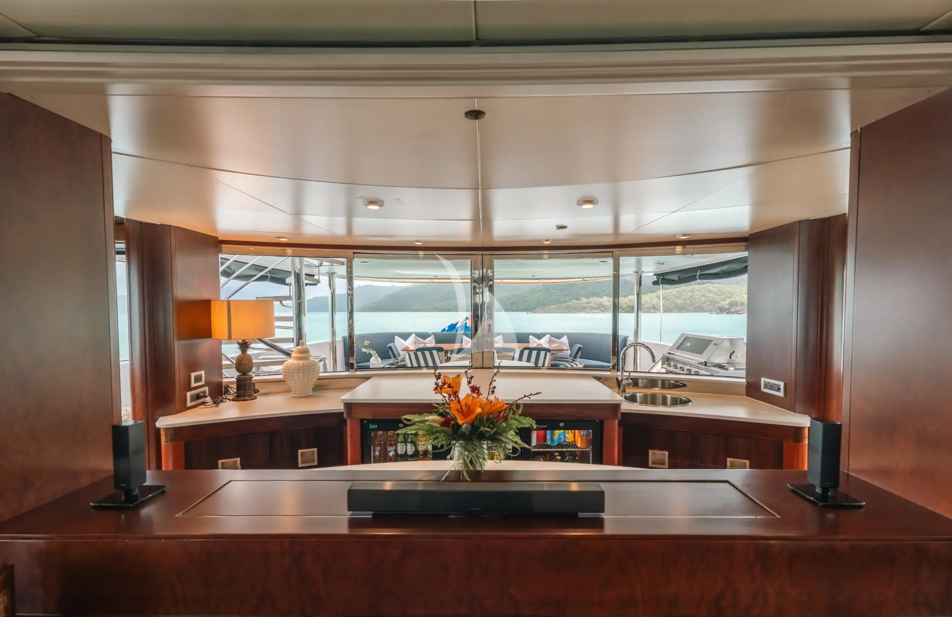 With unparalleled space and stability, this popular charter superyacht is ideal for alfresco entertaining, offering ample exterior living areas. On the main deck, is a spacious aft deck complete with comfortable seating and a dining table. Further aft, the transom lowers to create a magnificent teak platform. The upper deck offers a central wet bar with barstools, shade and dining table. Her top deck offers stunning views while cruising around the stunning destinations, and also features an outdoor jacuzzi spa and seating area.