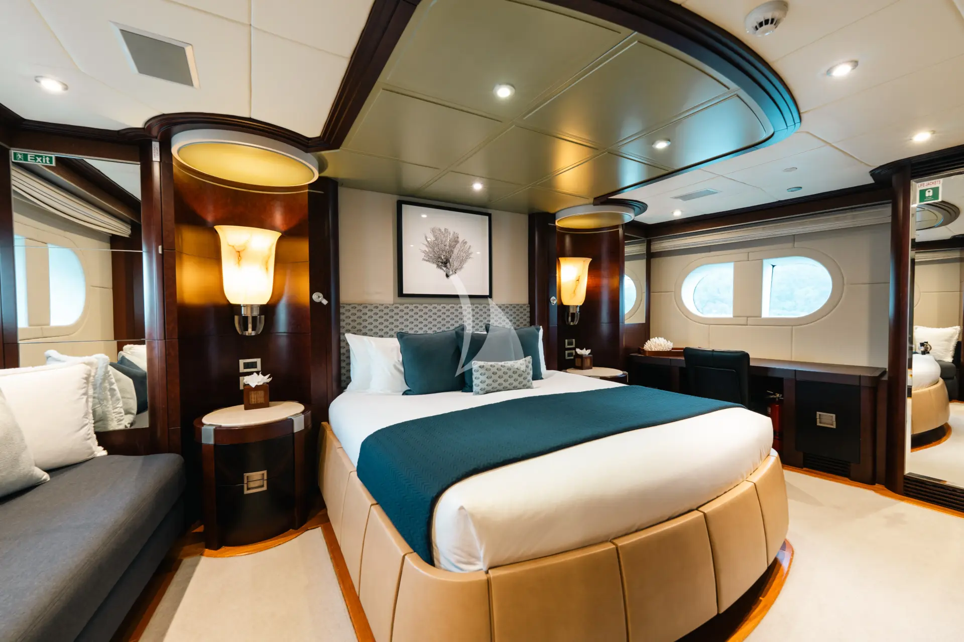 Refitted in 2024, no expense has been spared with quality finishes and the greatest technology fitted throughout the ship. She accommodates 11 guests in 5 opulent staterooms, consisting of a Master, VIP, 2 Double Cabins (one with Pullman), and 1 Twin.