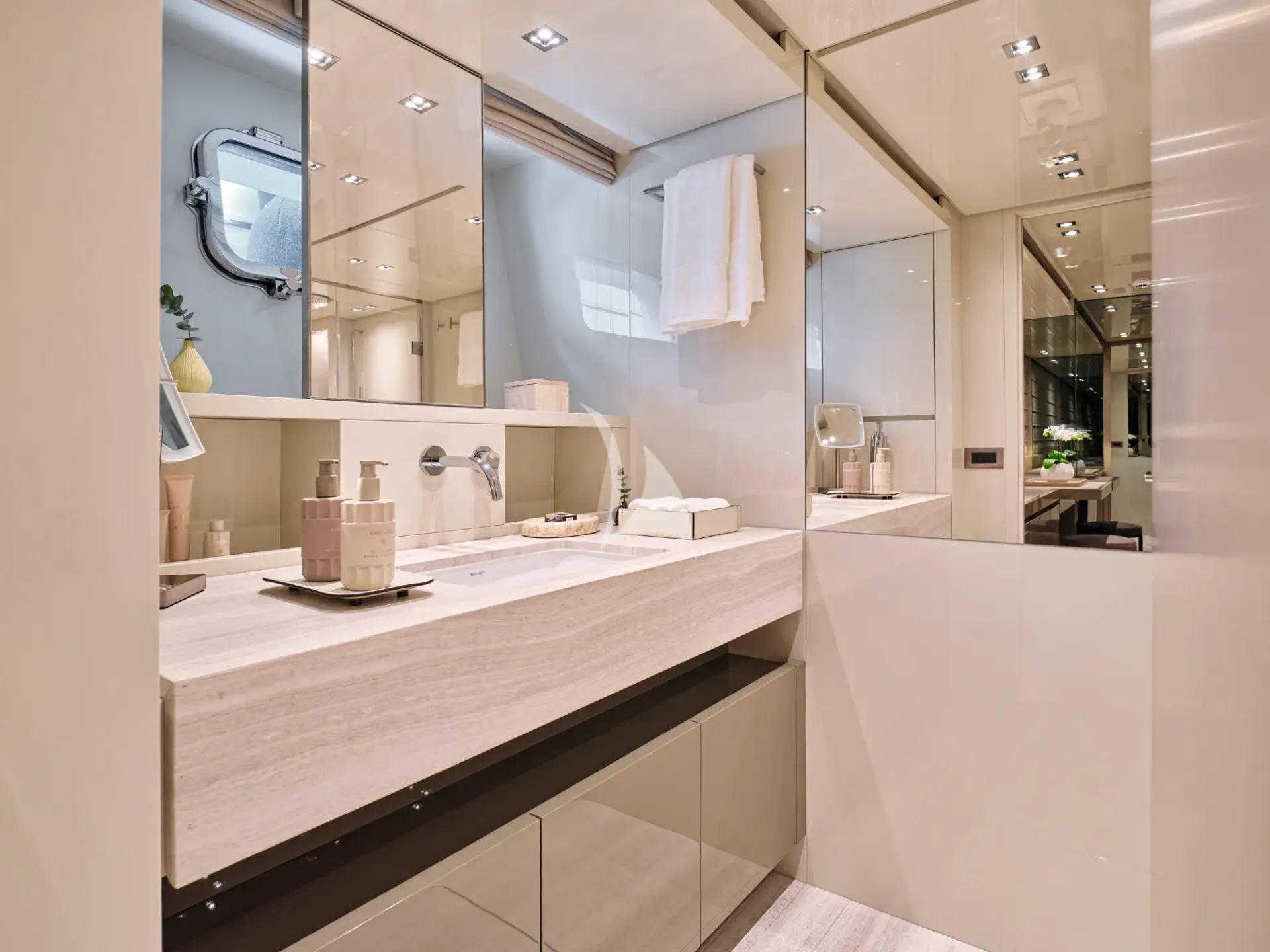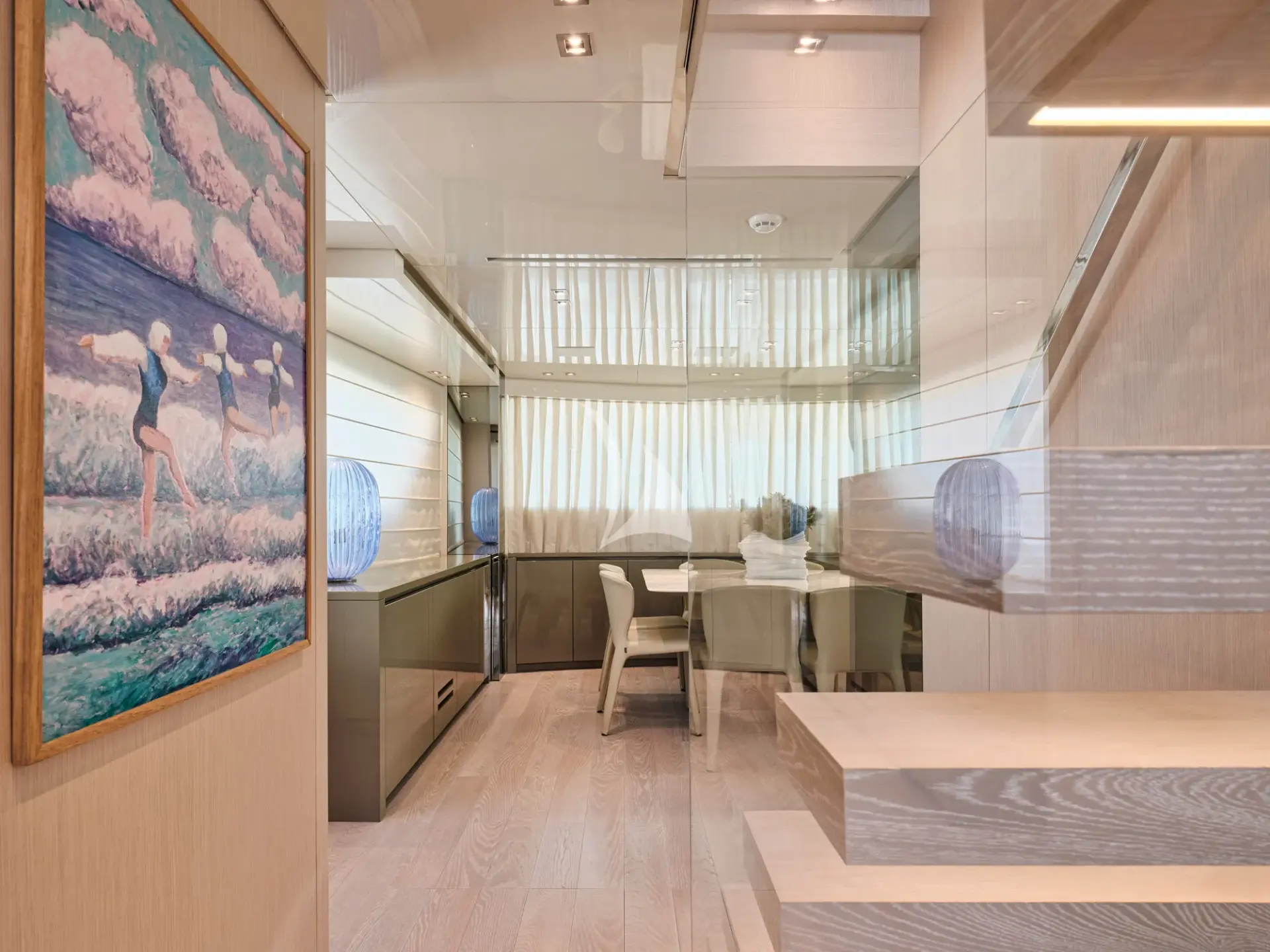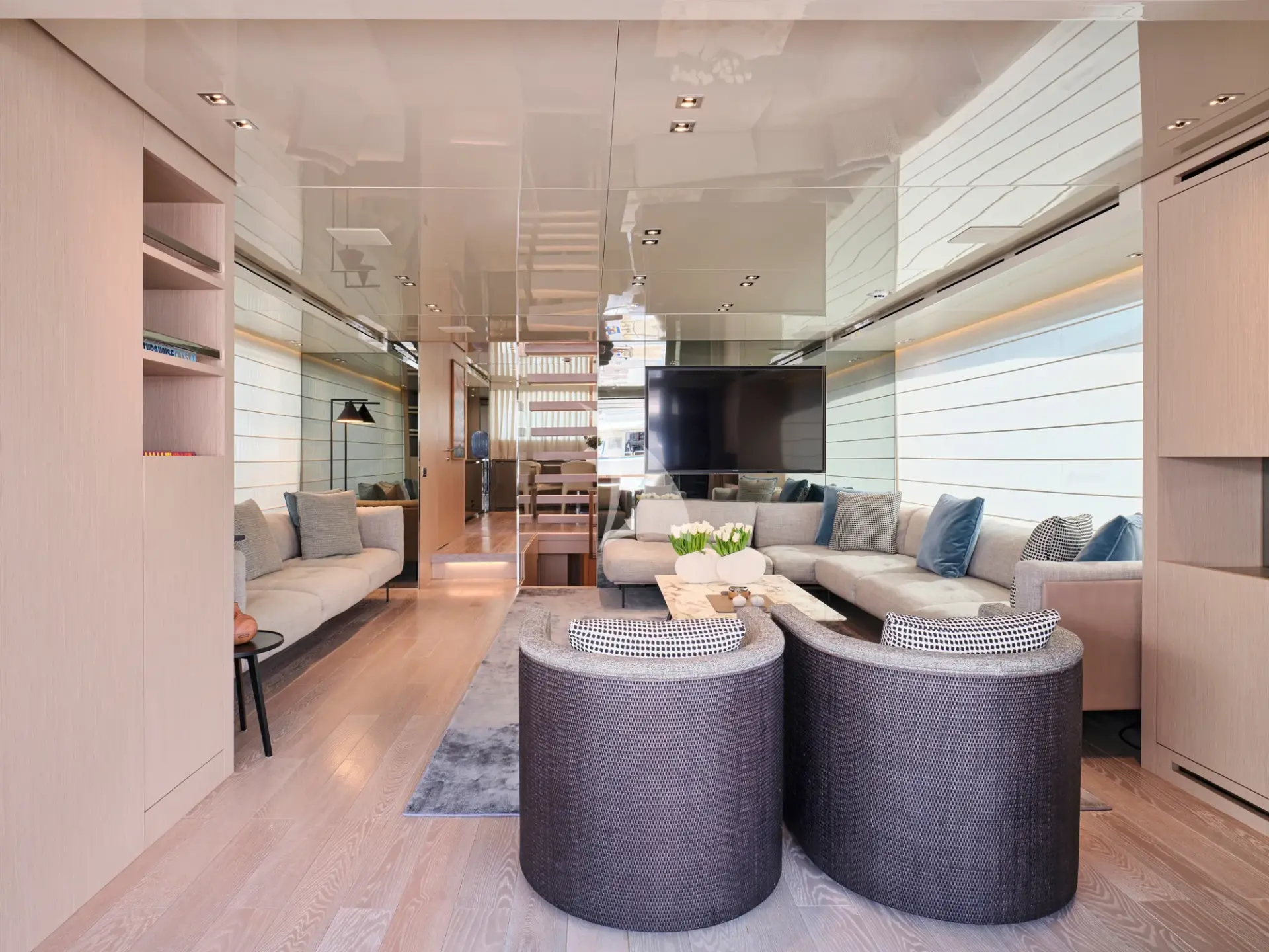 As the only Sanlorenzo SX88 available for charter in Greek waters, she stands apart with her distinctive crossover design — combining the comfort of a motor yacht with the openness and lifestyle of an explorer. Expansive deck spaces, seamless indoor-outdoor living and refined Italian design create the perfect setting for effortless cruising through the Aegean and Ionian Seas.
