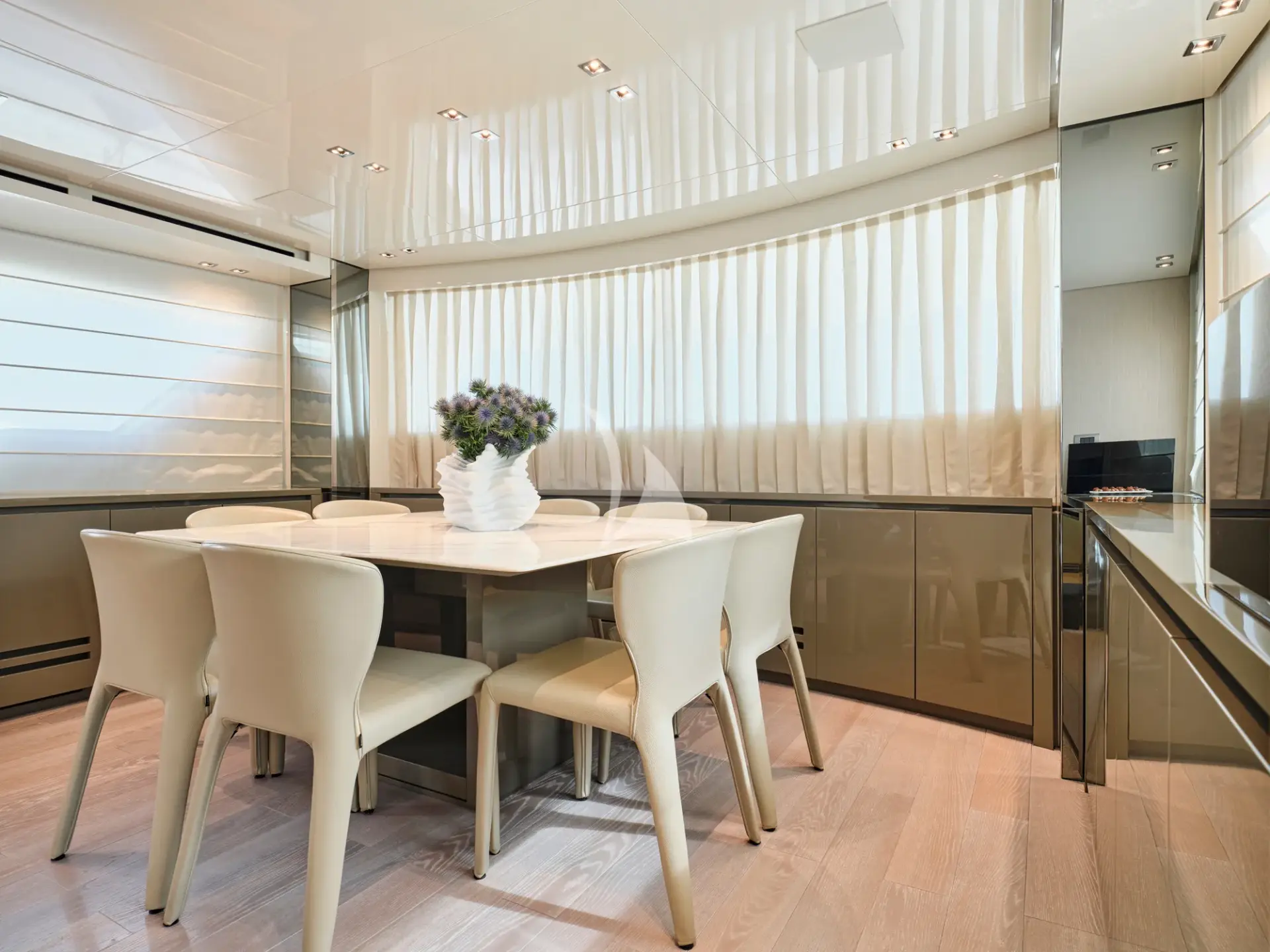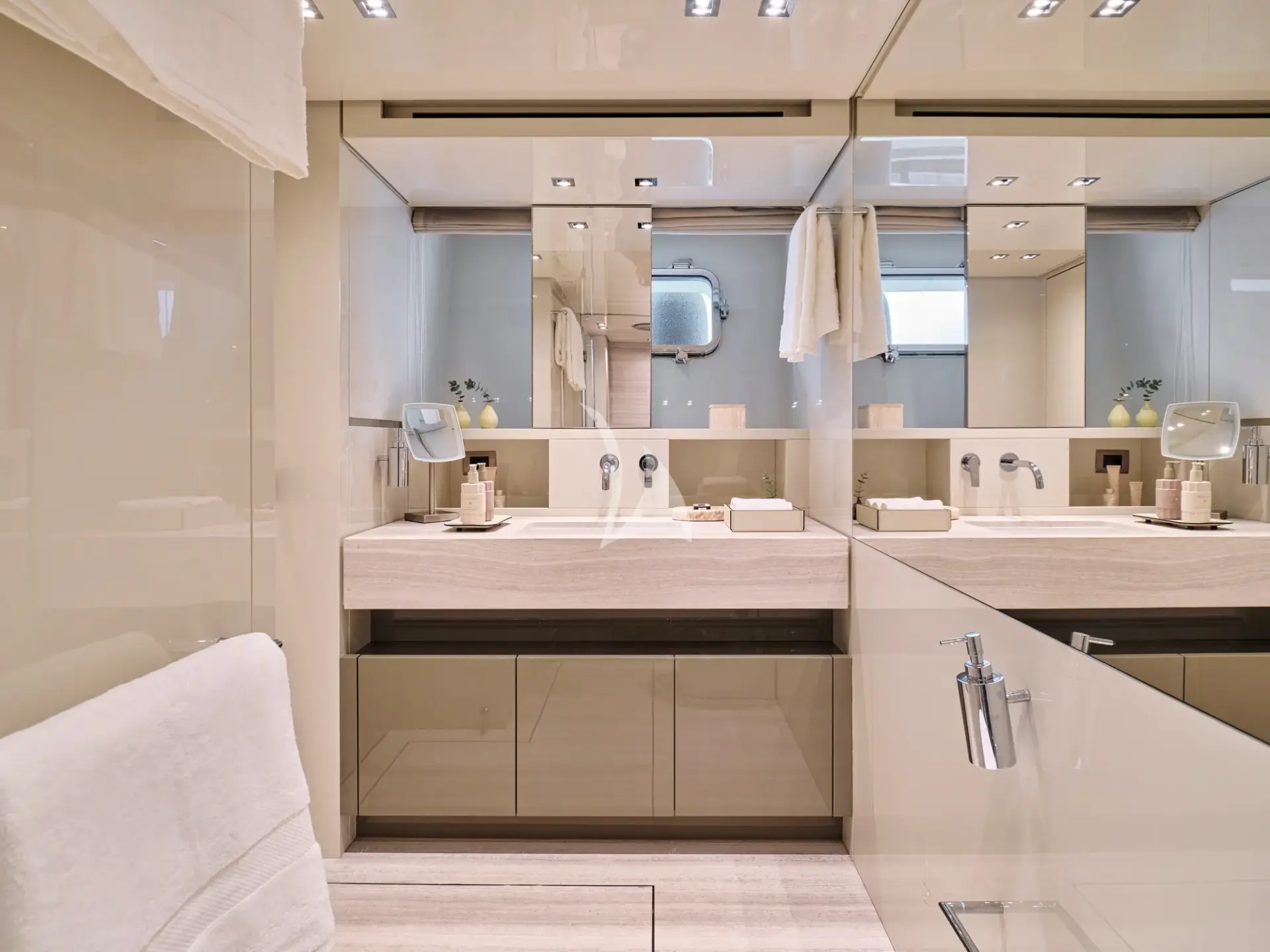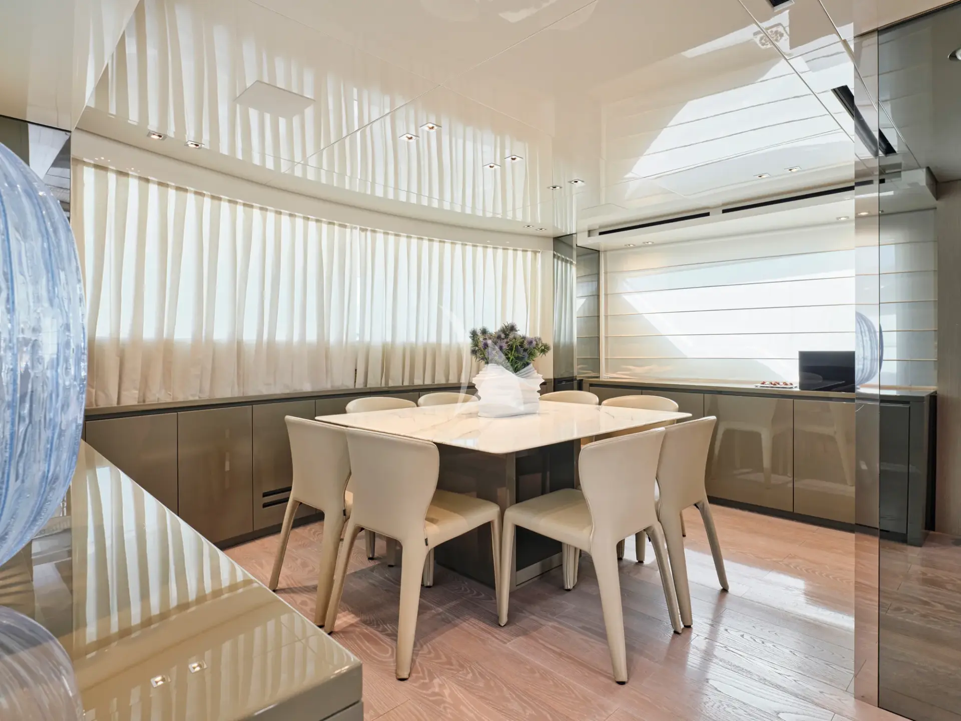 As the only Sanlorenzo SX88 available for charter in Greek waters, she stands apart with her distinctive crossover design — combining the comfort of a motor yacht with the openness and lifestyle of an explorer. Expansive deck spaces, seamless indoor-outdoor living and refined Italian design create the perfect setting for effortless cruising through the Aegean and Ionian Seas.