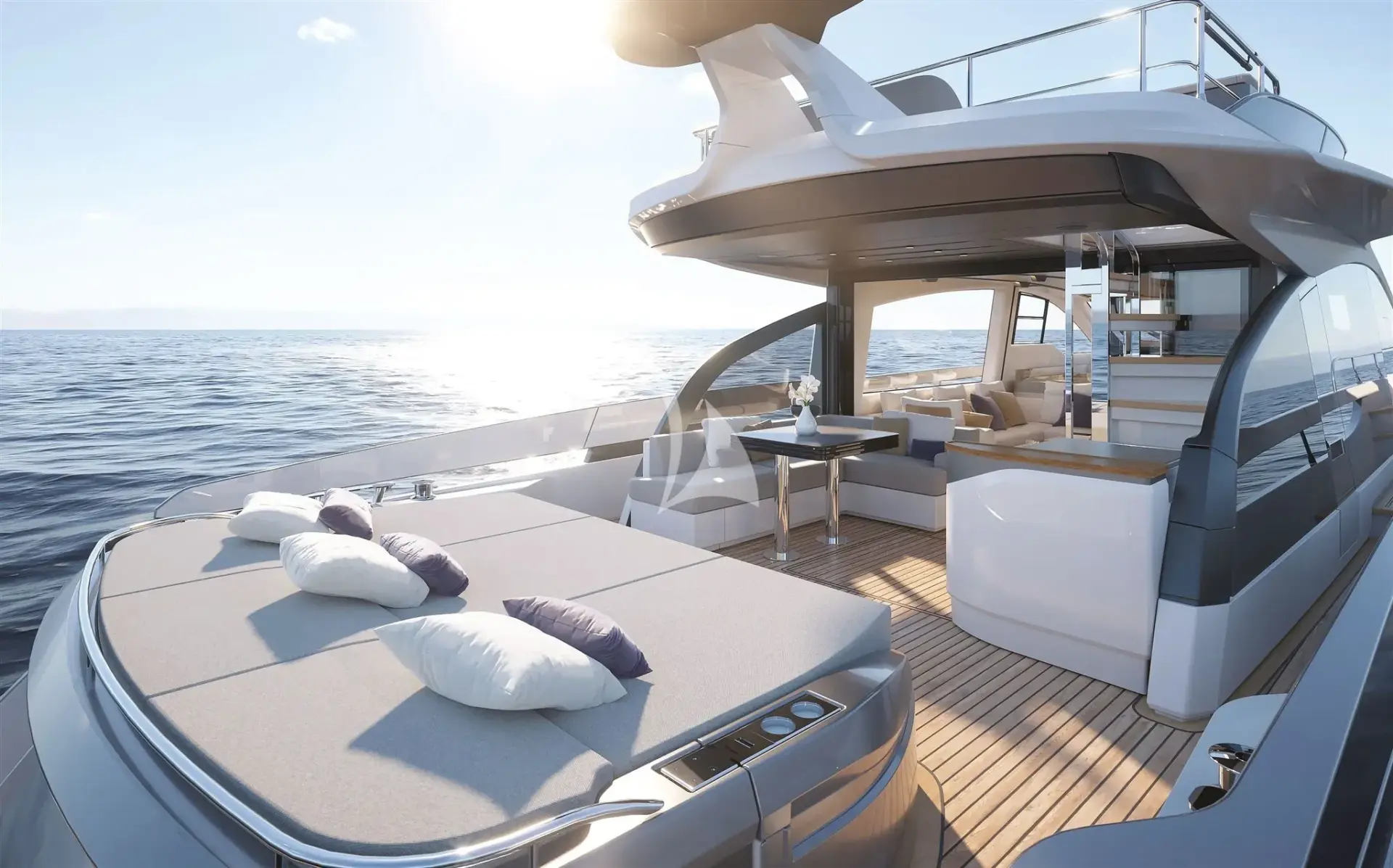 Aft deck – spacious and shaded, ideal for laid-back lunches or sunset dinners.