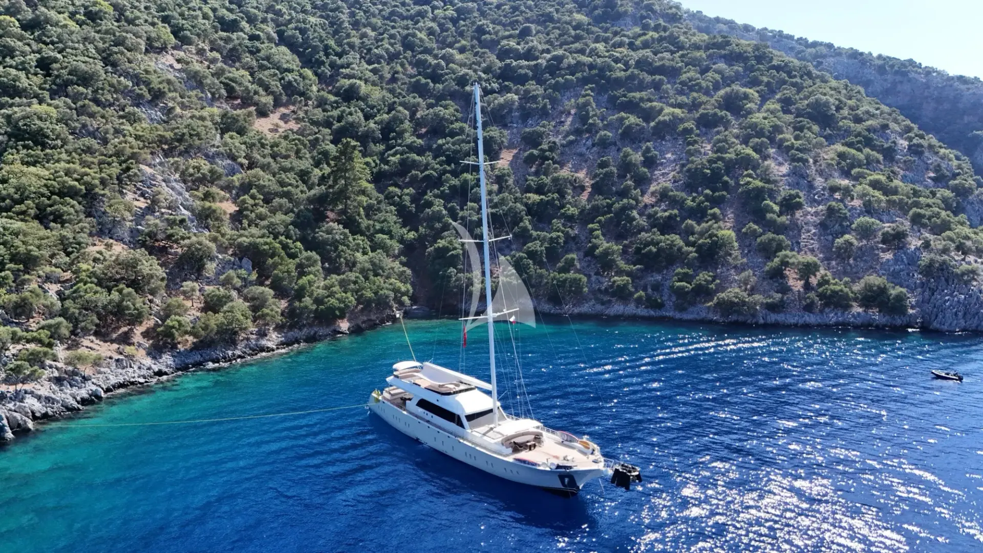 DODO is a 141ft (43m) sailing yacht built in 2005 and refitted in 2025. She accommodates up to 12 guests in 6 cabins comprising 4 double and 2 twin, with a professional crew of 6 ensuring an exceptional charter experience. Available for charter in All East Med.