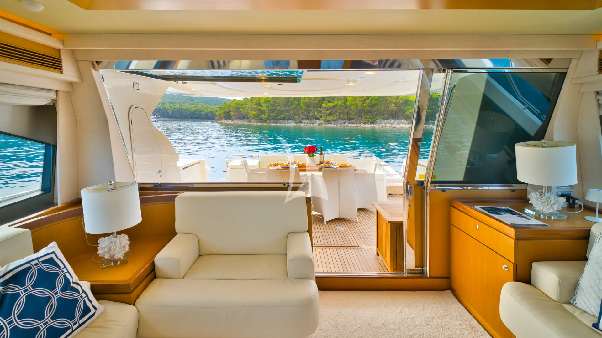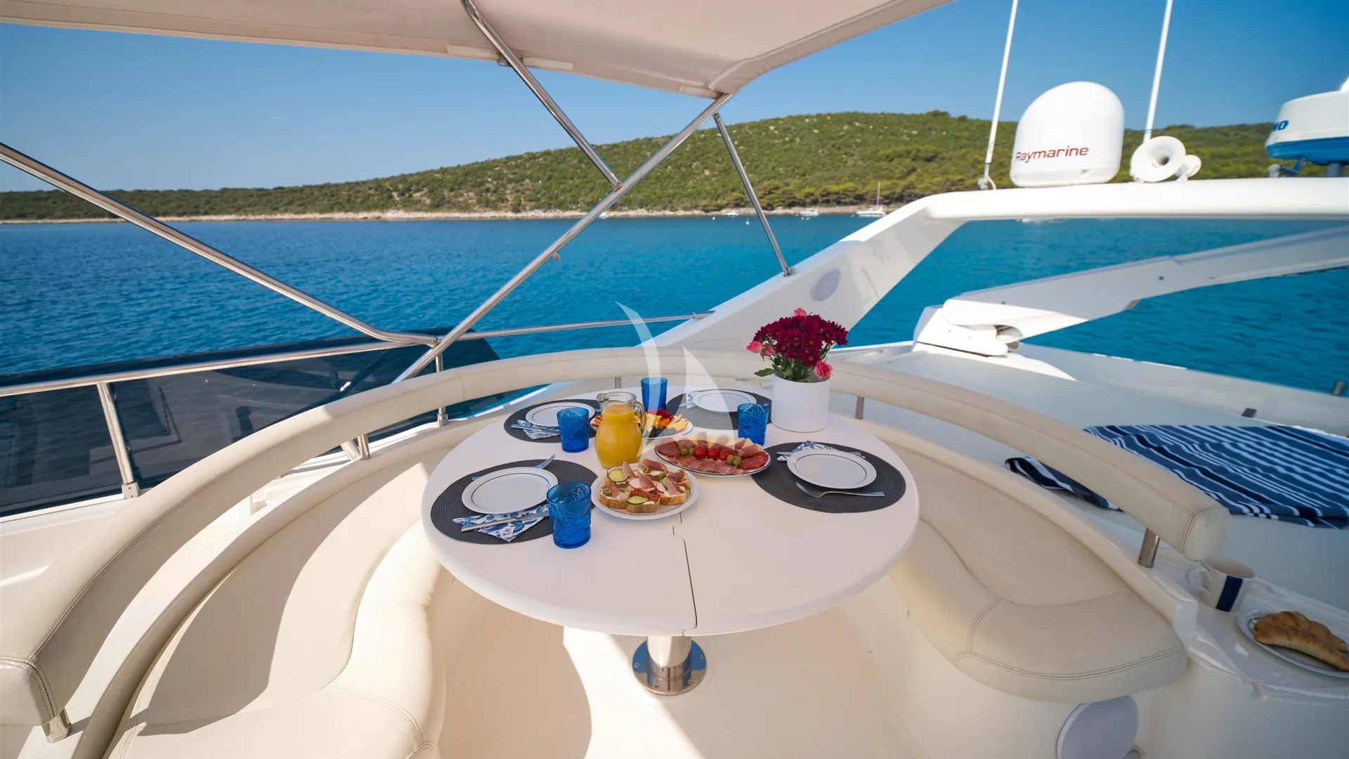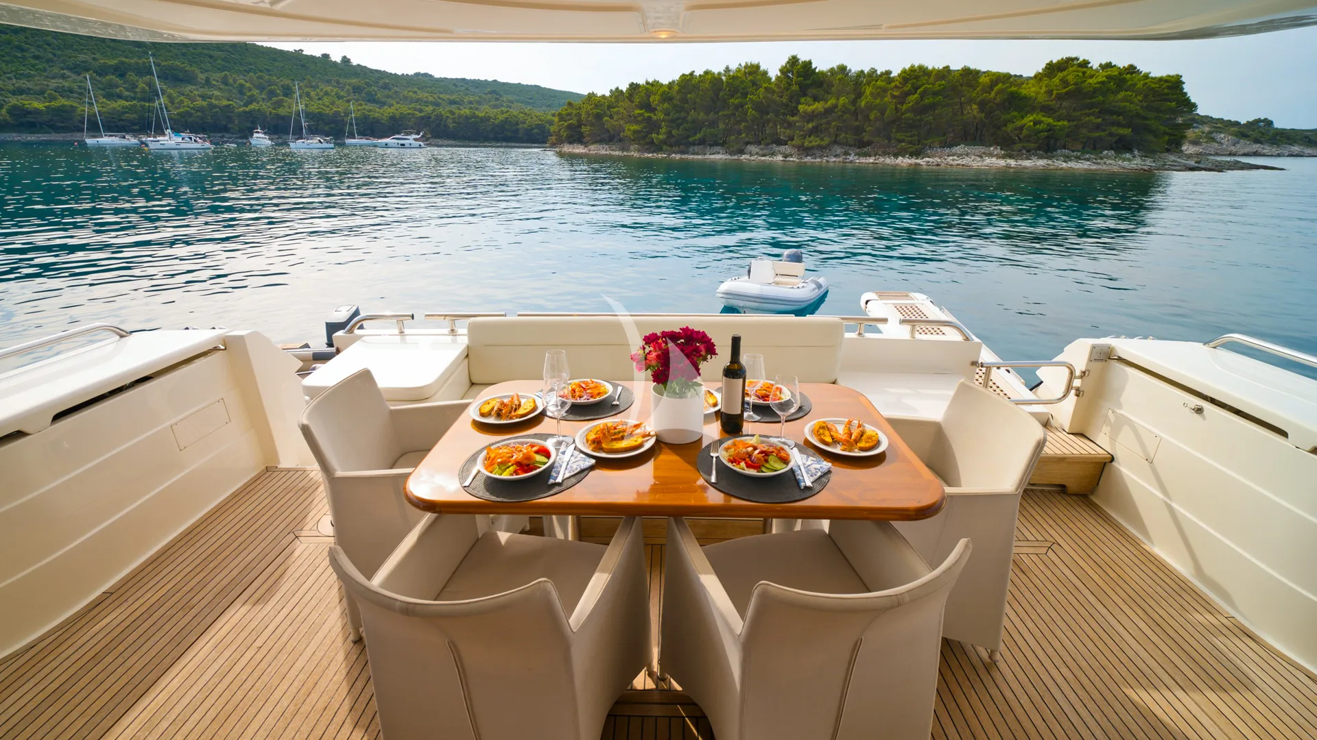 Dominique, a 20.63-metre Ferretti 681 by the renowned Italian shipyard Ferretti Yachts, is an ideal charter for up to 8 guests. Combining timeless Italian style with impressive performance, she cruises comfortably at 28 knots and reaches 34 knots, making island hopping along the Croatian coast quick and enjoyable. Her shallow draft allows access to secluded bays and coastal towns.