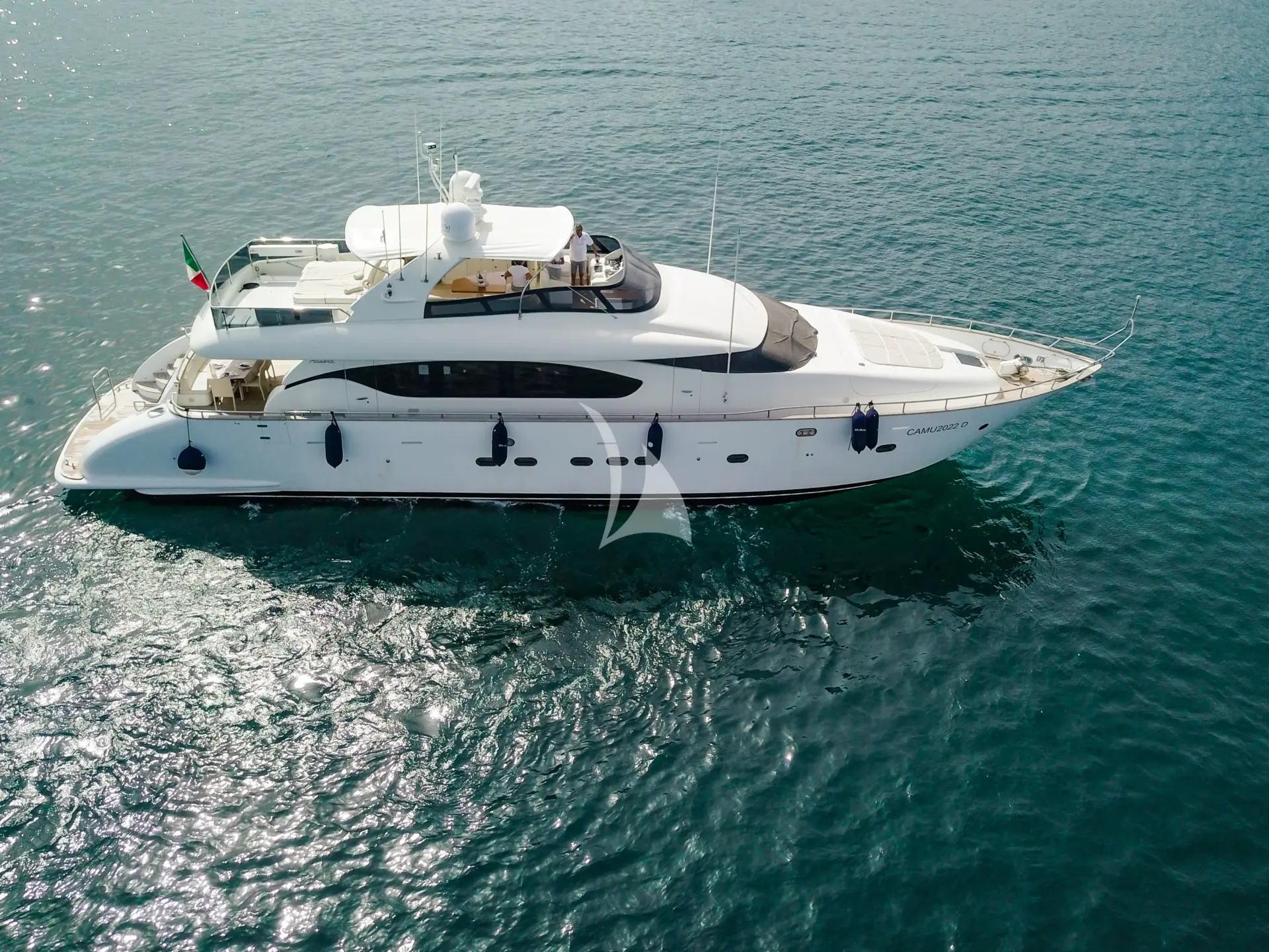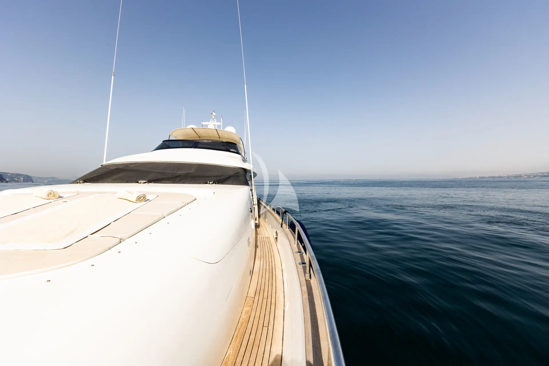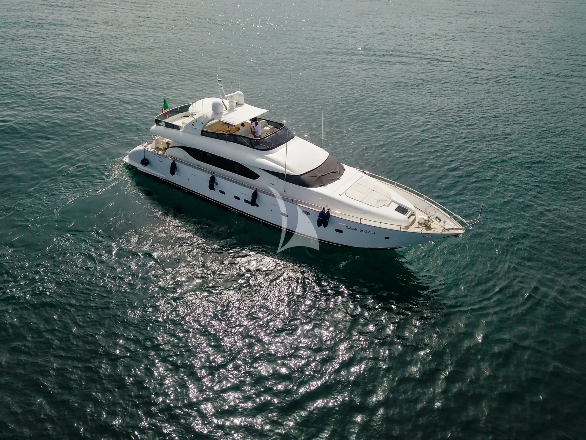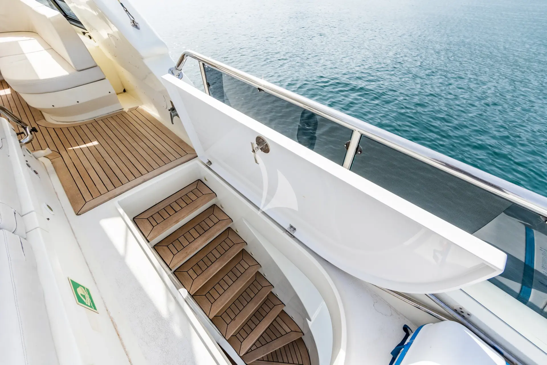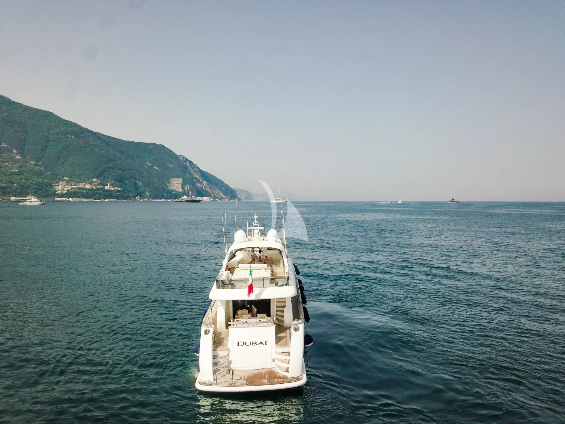 DUBAI can accommodate up to 9 guests in 4 en-suite cabins. The Master stateroom is full beam of the yacht amidships, offering a queen size center-lined bed, sofa, walk-in wardrobe and en-suite. The VIP cabin is of the yacht forward with a double bed. The first Twin cabin features 2 side-by-side single beds and can be convertible into double cabin. The second Twin cabin features 2 side-by-side single beds and 1 Pullman bed. All 4 cabins have a light and clean ambiance, the neutral décor and spacious feel are inviting and serene. For indoor entertainment, all 4 cabins offer Sat TV/DVD/CD electronics. Tenders & Toys onboard yacht DUBAI include a tender Zodiac, 1 Seabob F5S, 2 SUP, inflatable Bananone onboard, snorkeling equipment. E-mail + Internet connection. Audio Visual Equipment and Deck Facilities include LCD screens linked to SAT with DVD, CD and Radio in each cabin, 42” TV SAT with DVD/VHS player and Bose Surround in the saloon. The salon features a new parquet wood floor, crisp white soft furnishings and state-of-the-art entertainment with Bose surround sound and a 42’’ flat screen TV. Forward of the salon, in an open plan, is the stylish clear glass formal dining table. Large panoramic windows supply ample natural light, while Venetian blinds offer optimum privacy. M/Y DUBAI has plenty of outdoor space to enjoy. The aft deck is adjacent to the salon and boasts an alfresco dining option and partial shade. Guests can walk easily around the yacht's main deck, thanks to the 360° teak decks. Above the main deck, the flybridge is perfect for entertaining, offering a further alfresco dining option, a sun pad, additional seating and a removable Bimini cover. For water enthusiasts, DUBAI has an extended swim platform ensuring effortless access. In 2026, DUBAI was upgraded with a Seakeeper gyrostabilizer, providing enhanced comfort and reduced roll both at anchor and underway.