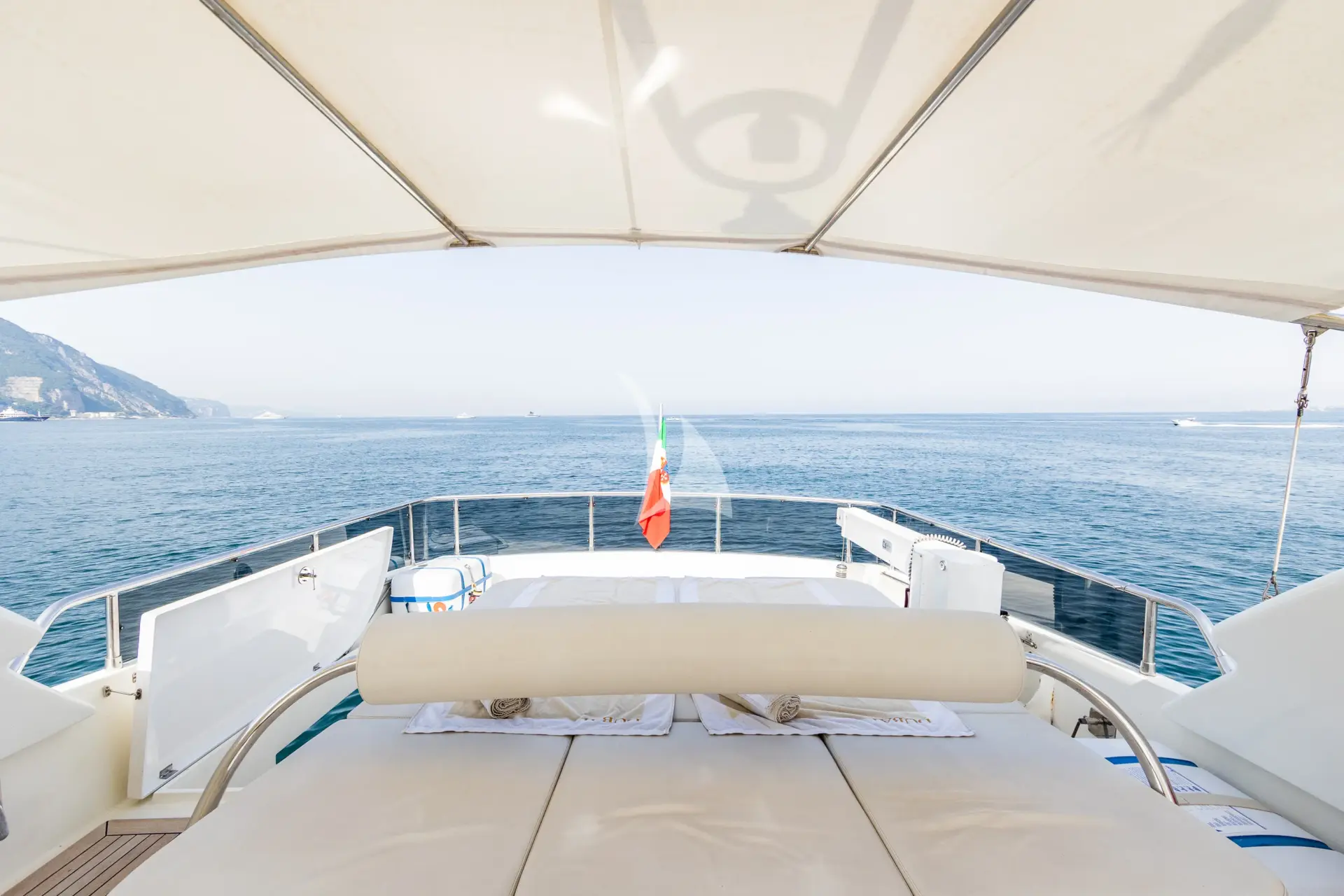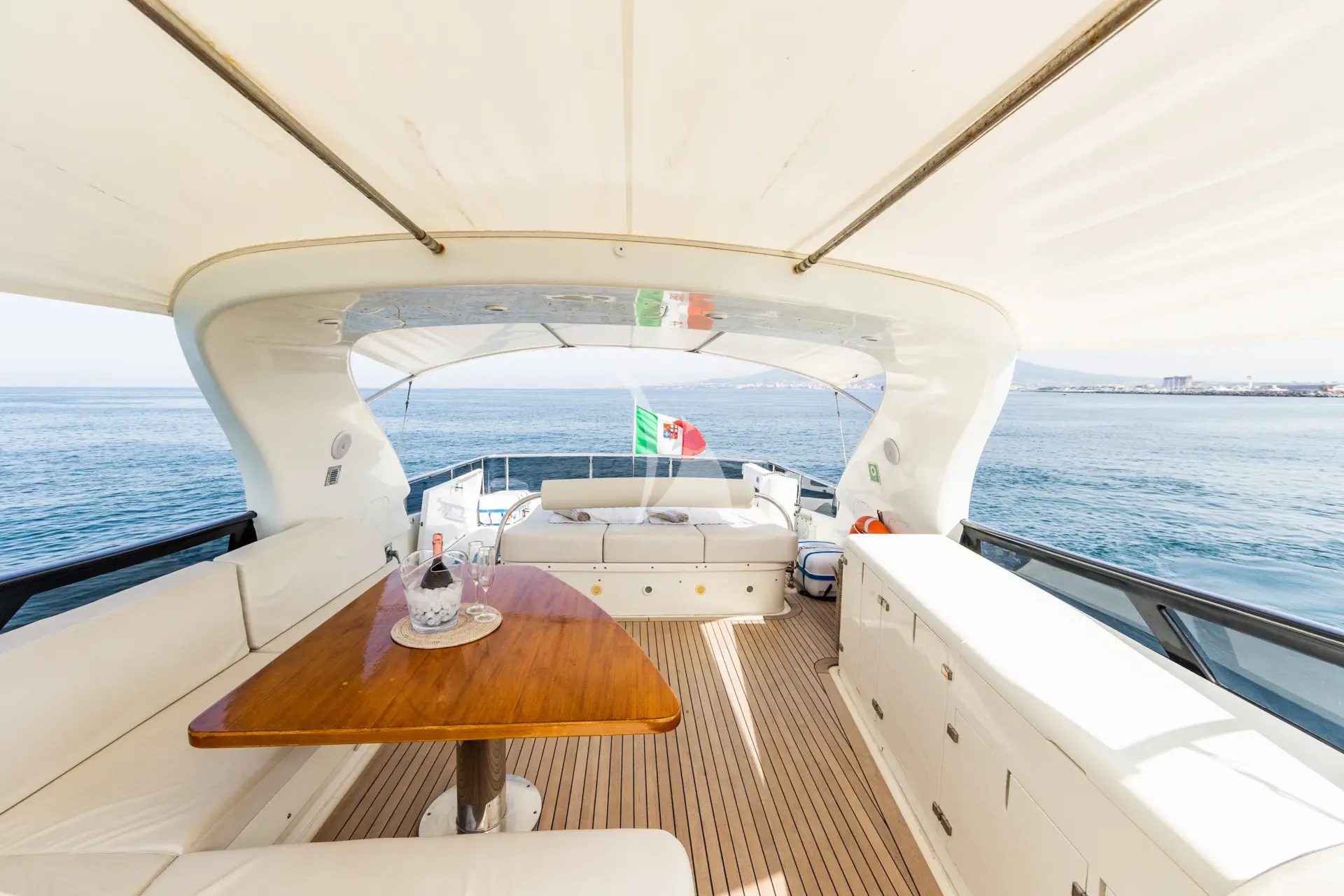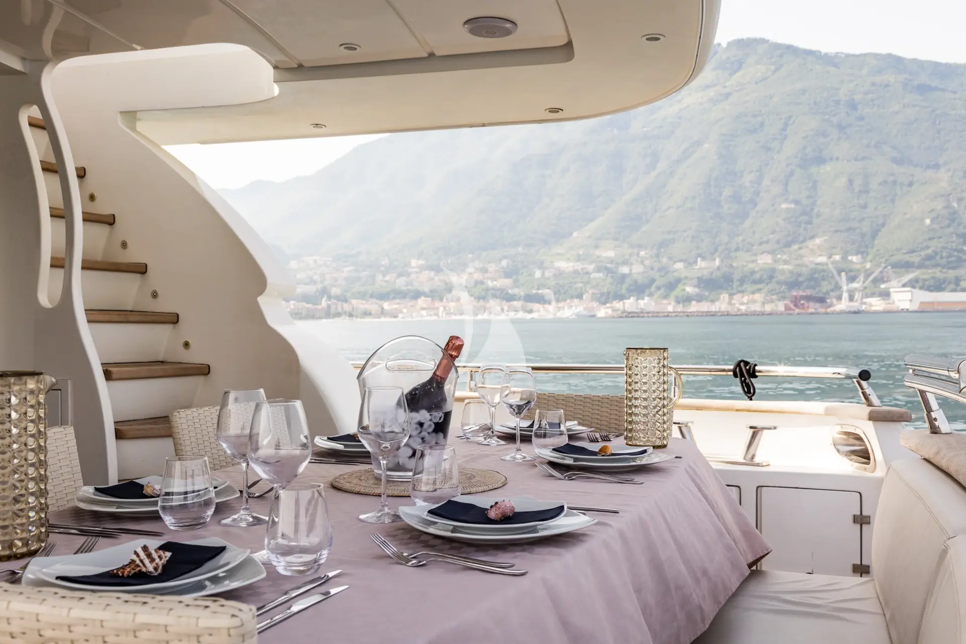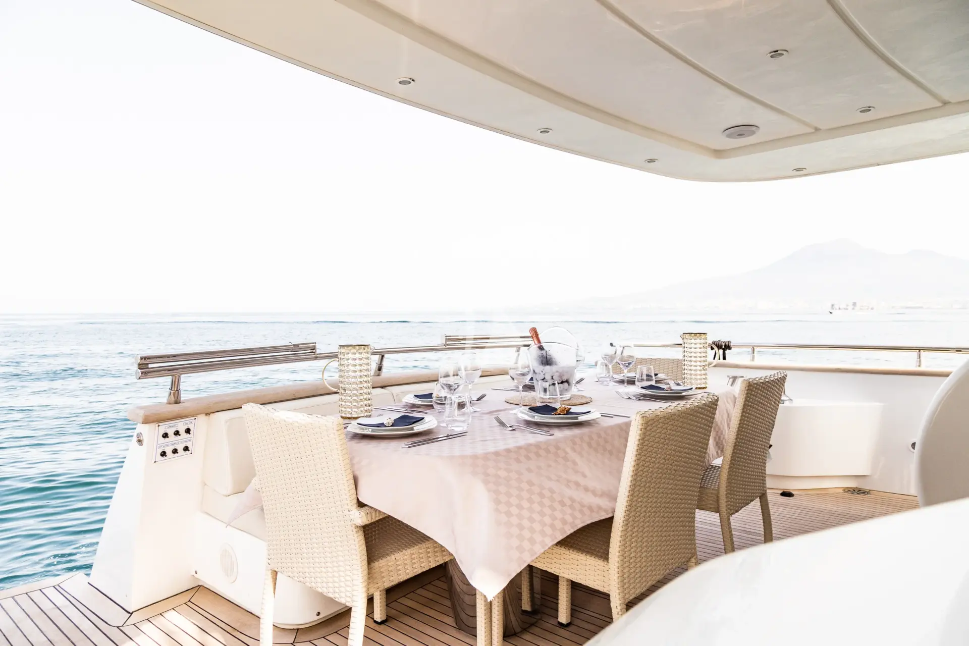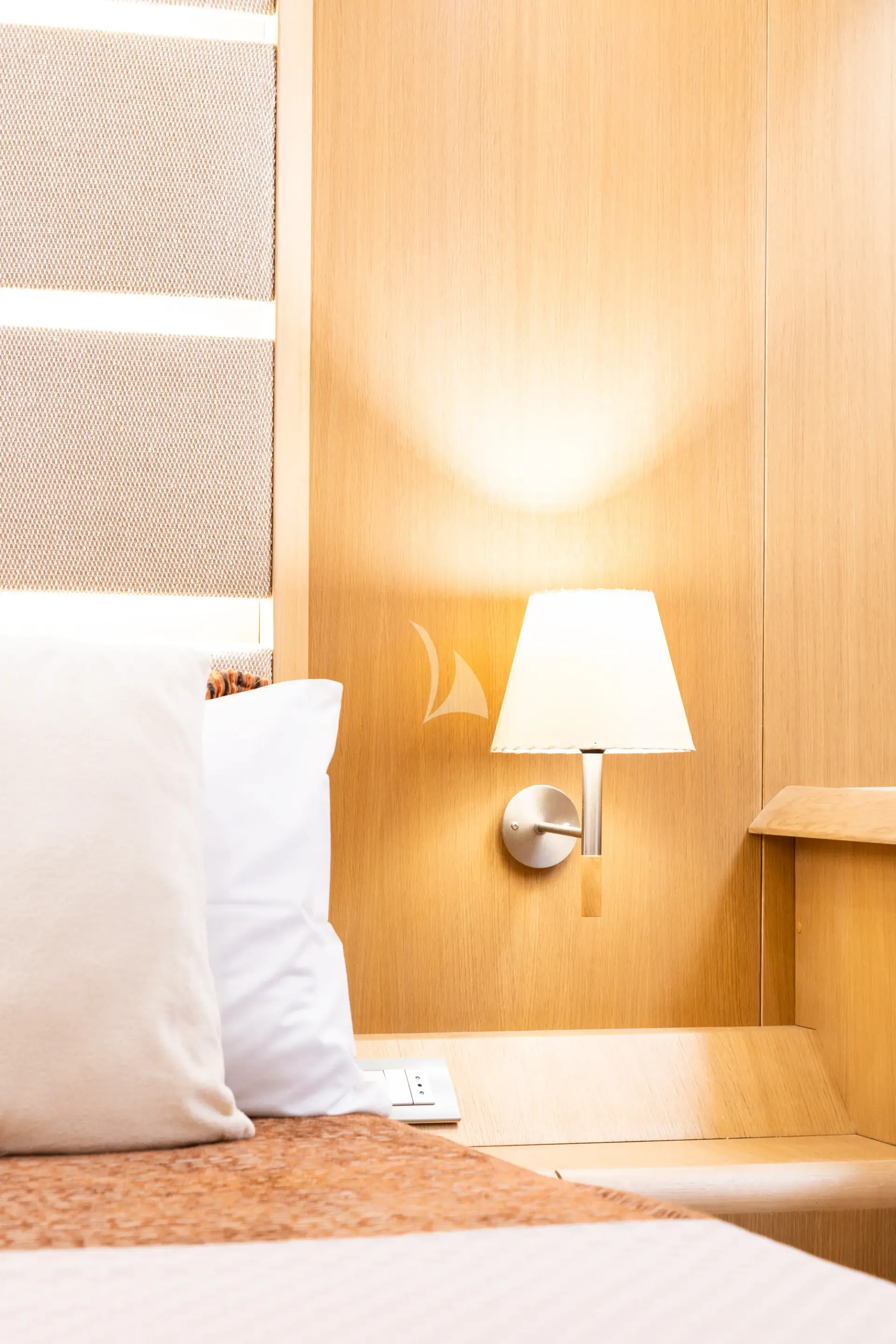 DUBAI can accommodate up to 9 guests in 4 en-suite cabins. The Master stateroom is full beam of the yacht amidships, offering a queen size center-lined bed, sofa, walk-in wardrobe and en-suite. The VIP cabin is of the yacht forward with a double bed. The first Twin cabin features 2 side-by-side single beds and can be convertible into double cabin. The second Twin cabin features 2 side-by-side single beds and 1 Pullman bed. All 4 cabins have a light and clean ambiance, the neutral décor and spacious feel are inviting and serene. For indoor entertainment, all 4 cabins offer Sat TV/DVD/CD electronics. Tenders & Toys onboard yacht DUBAI include a tender Zodiac, 1 Seabob F5S, 2 SUP, inflatable Bananone onboard, snorkeling equipment. E-mail + Internet connection. Audio Visual Equipment and Deck Facilities include LCD screens linked to SAT with DVD, CD and Radio in each cabin, 42” TV SAT with DVD/VHS player and Bose Surround in the saloon. The salon features a new parquet wood floor, crisp white soft furnishings and state-of-the-art entertainment with Bose surround sound and a 42’’ flat screen TV. Forward of the salon, in an open plan, is the stylish clear glass formal dining table. Large panoramic windows supply ample natural light, while Venetian blinds offer optimum privacy. M/Y DUBAI has plenty of outdoor space to enjoy. The aft deck is adjacent to the salon and boasts an alfresco dining option and partial shade. Guests can walk easily around the yacht's main deck, thanks to the 360° teak decks. Above the main deck, the flybridge is perfect for entertaining, offering a further alfresco dining option, a sun pad, additional seating and a removable Bimini cover. For water enthusiasts, DUBAI has an extended swim platform ensuring effortless access. In 2026, DUBAI was upgraded with a Seakeeper gyrostabilizer, providing enhanced comfort and reduced roll both at anchor and underway.