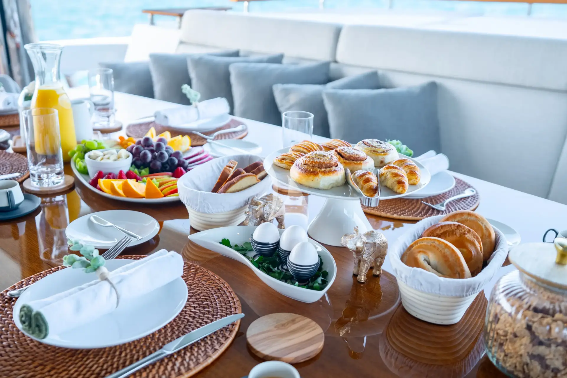 Onboard, guests can enjoy a variety of amenities designed for relaxation and entertainment. Unwind in the beach club, soak in the deck jacuzzi, or host an intimate gathering in the main salon, complete with a 100-inch Smart TV. The sky lounge boasts a fully stocked bar, a lounge area, and office space for added convenience. Equipped with high-speed Wi-Fi and air conditioning throughout, EAU LA LA ensures a seamless and comfortable stay.