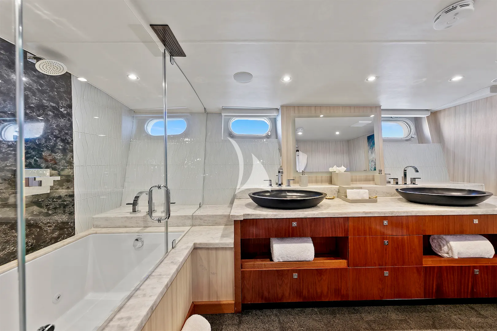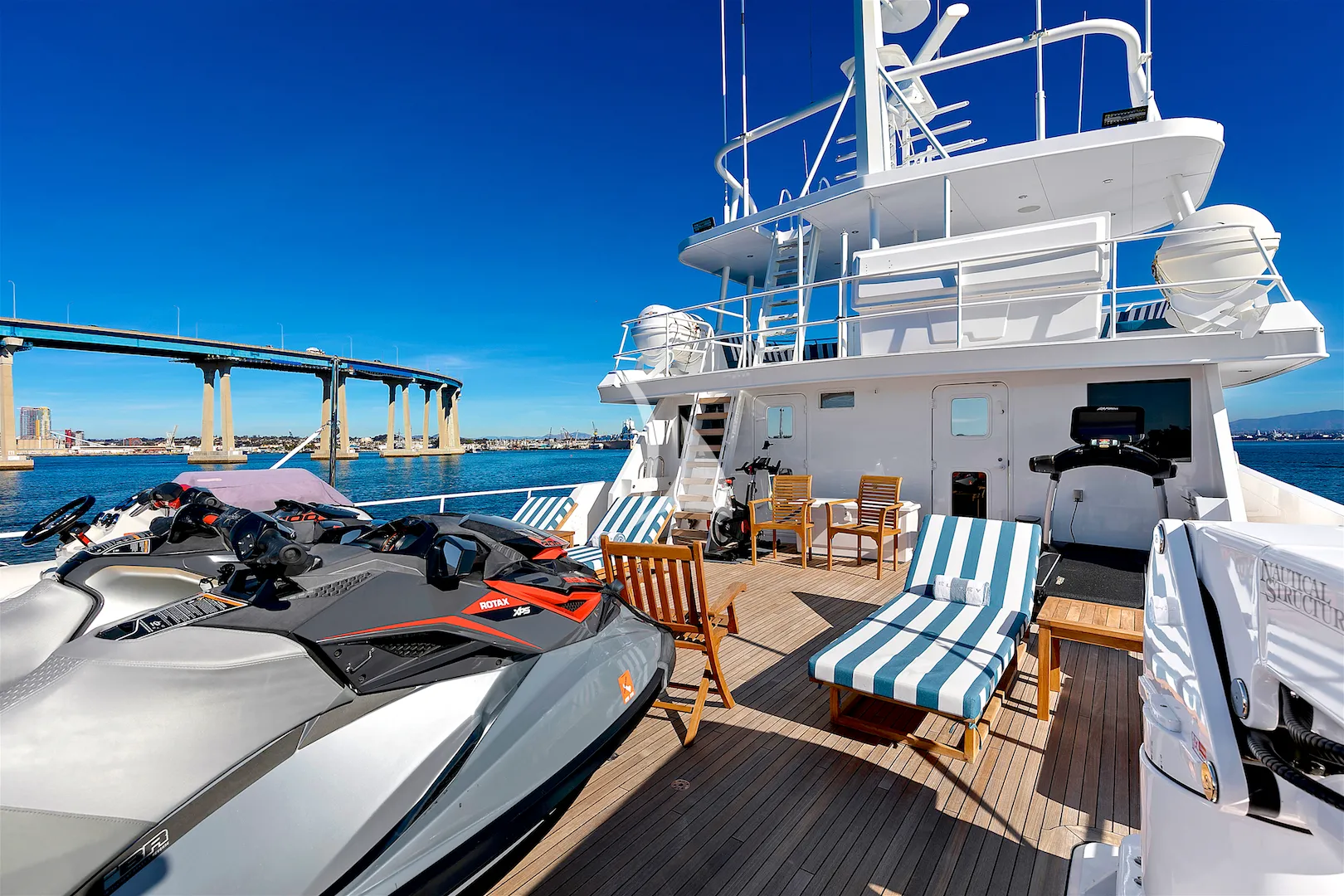 A Veem Gyro Stabilizer ensures smooth cruising in varied conditions. With dedicated features for sportfishing and extended cruising, EL REY is well suited to guests seeking a capable, well-balanced yacht designed for longer journeys and easy time on the water.