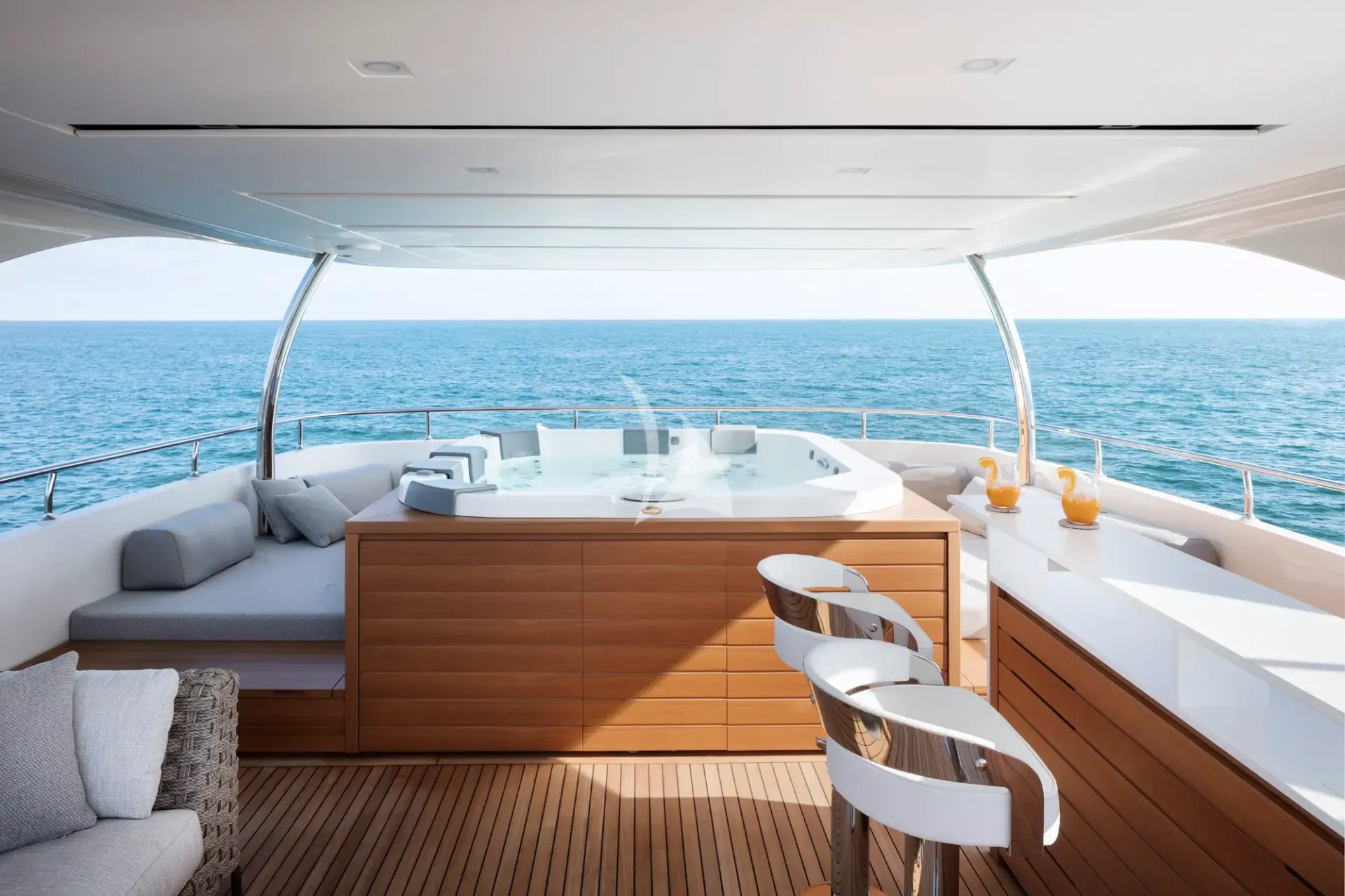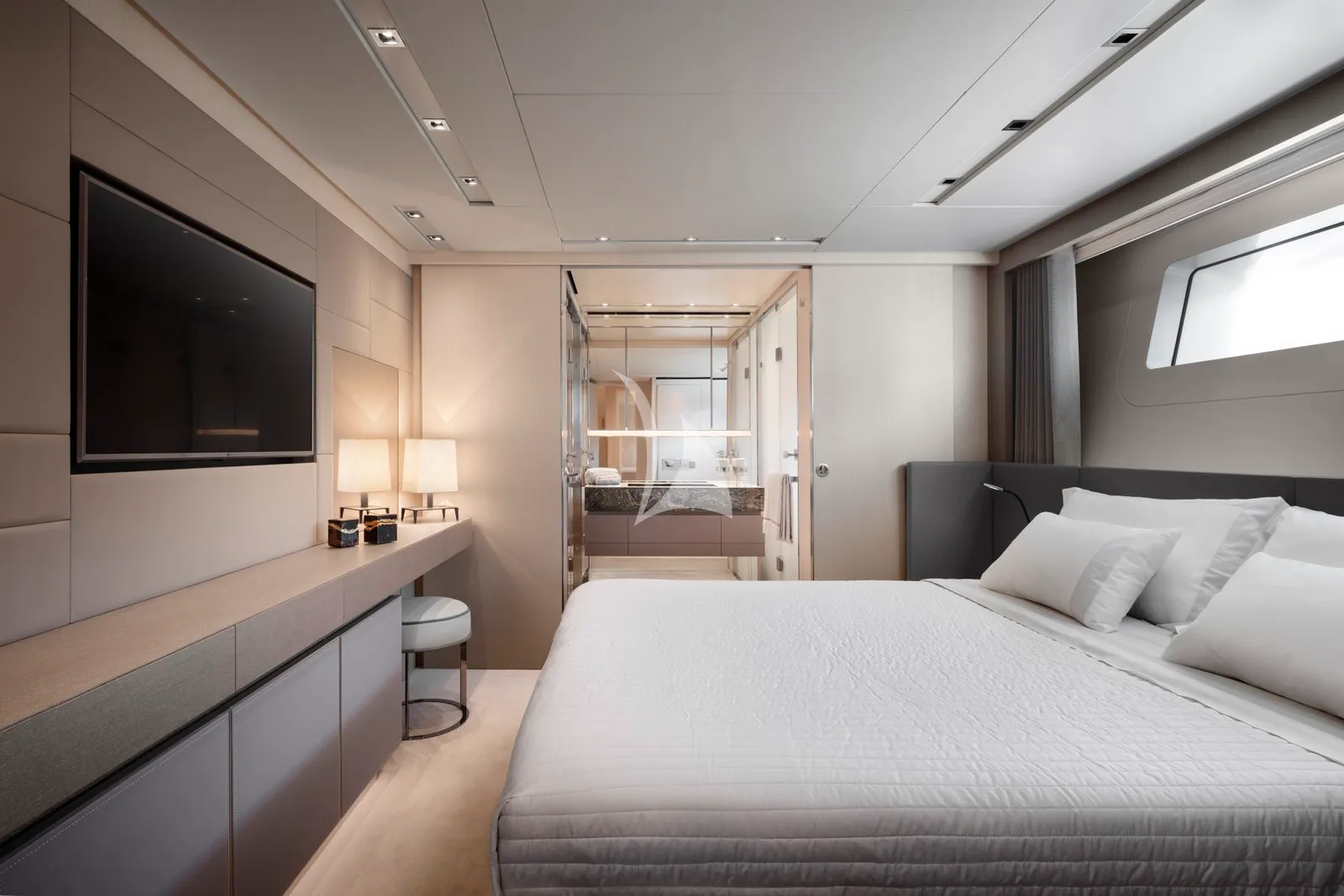 M/Y Fatsa is a sleek and sophisticated motor yacht offering a refined blend of contemporary design and understated luxury. Her stylish interior features rich woods, leather and marble finishes, and she accommodates up to 10 guests in five beautifully appointed staterooms. The full-beam master suite on the main deck includes a private study, his-and-hers wardrobes and an open-style en suite with dual sinks and steam bath. Four additional guest staterooms are located on the lower deck, comprising two VIP suites and two convertible double/twin staterooms. Designed for effortless enjoyment, M/Y Fatsa offers exceptional indoor and outdoor living spaces, including a welcoming sky lounge with TV and bar, elegant al fresco dining on the bridge deck aft, and a spacious sun deck with bar, BBQ, jacuzzi and generous lounging areas. Zero-speed stabilizers ensure exceptional comfort both underway and at anchor, while a selection of brand-new water toys, Sea bobs and towables, promise endless fun on the water. A professional crew of seven deliver attentive service and an outstanding charter experience.