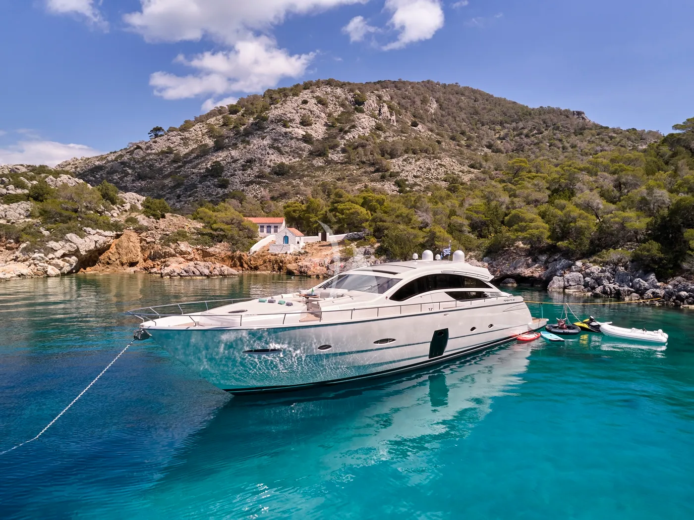 M/Y FOR EVER is an exquisite Pershing 80 Open, where striking Italian design meets exhilarating performance. Originally launched in 2008 and refitted in 2023, enhanced by a full exterior repaint in a luminous pearl-white finish that turns heads in every harbor.