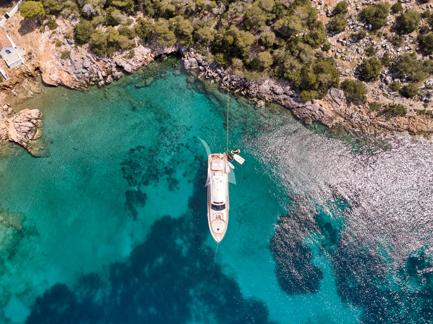 With her shallow draft of just 1.40 meters (4’8”), FOR EVER grants privileged access to secluded coves, turquoise shallows, and pristine anchorages beyond the reach of deeper-draft yachts.