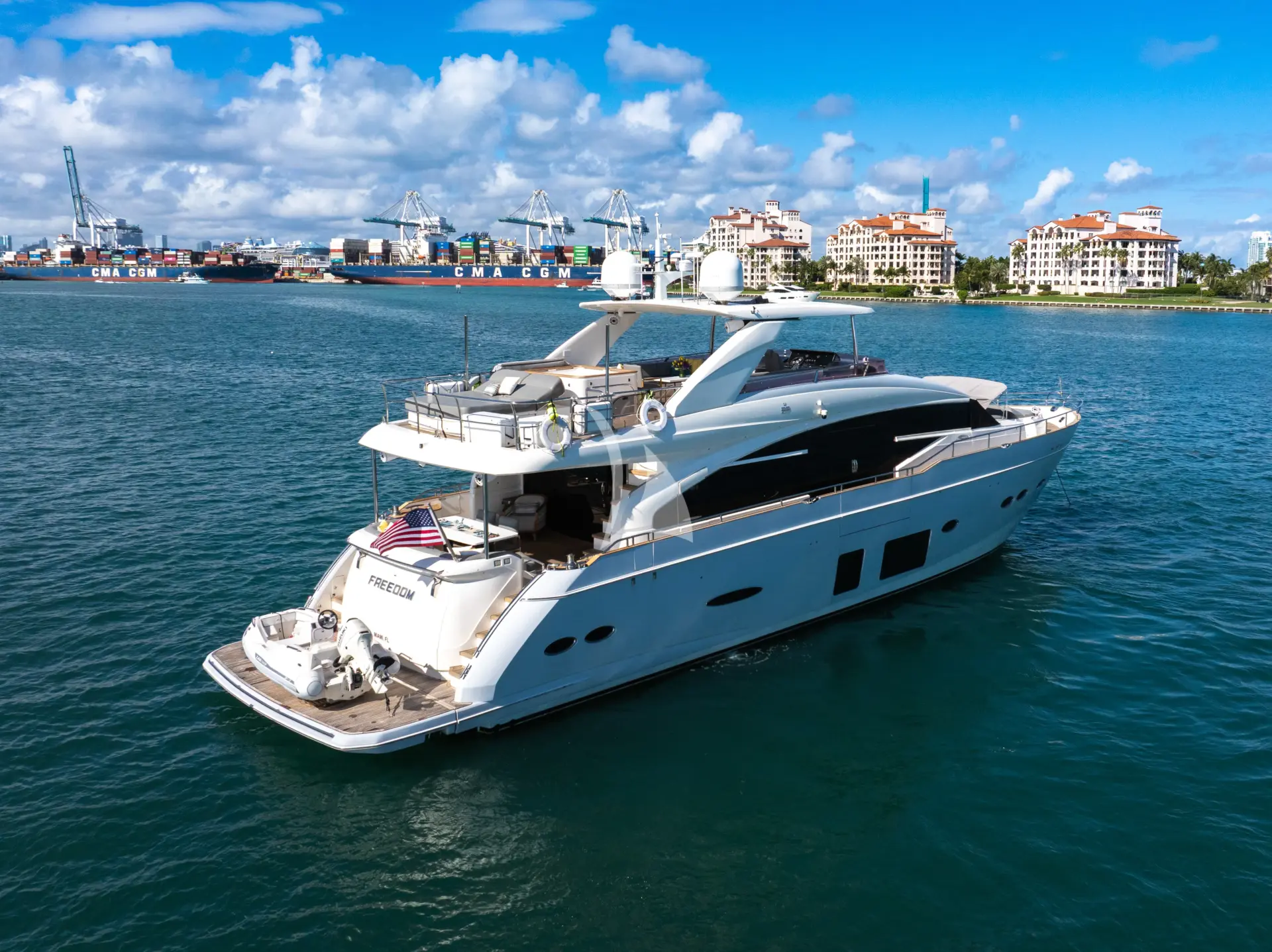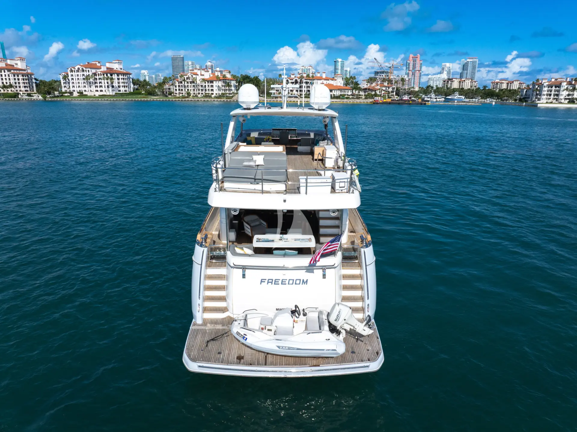 FREEDOM is a 88ft (27m) motor yacht built by Princess in 2015 and refitted in 2025. She accommodates up to 8 guests in 4 cabins comprising 3 double and 1 twin, with a professional crew of 4 ensuring an exceptional charter experience. Available for charter in North America, The Caribbean and the Bahamas.