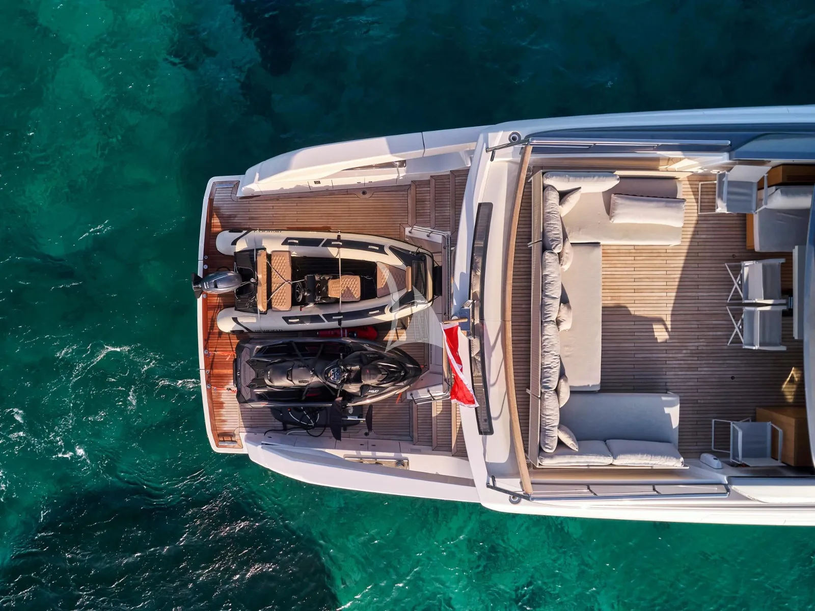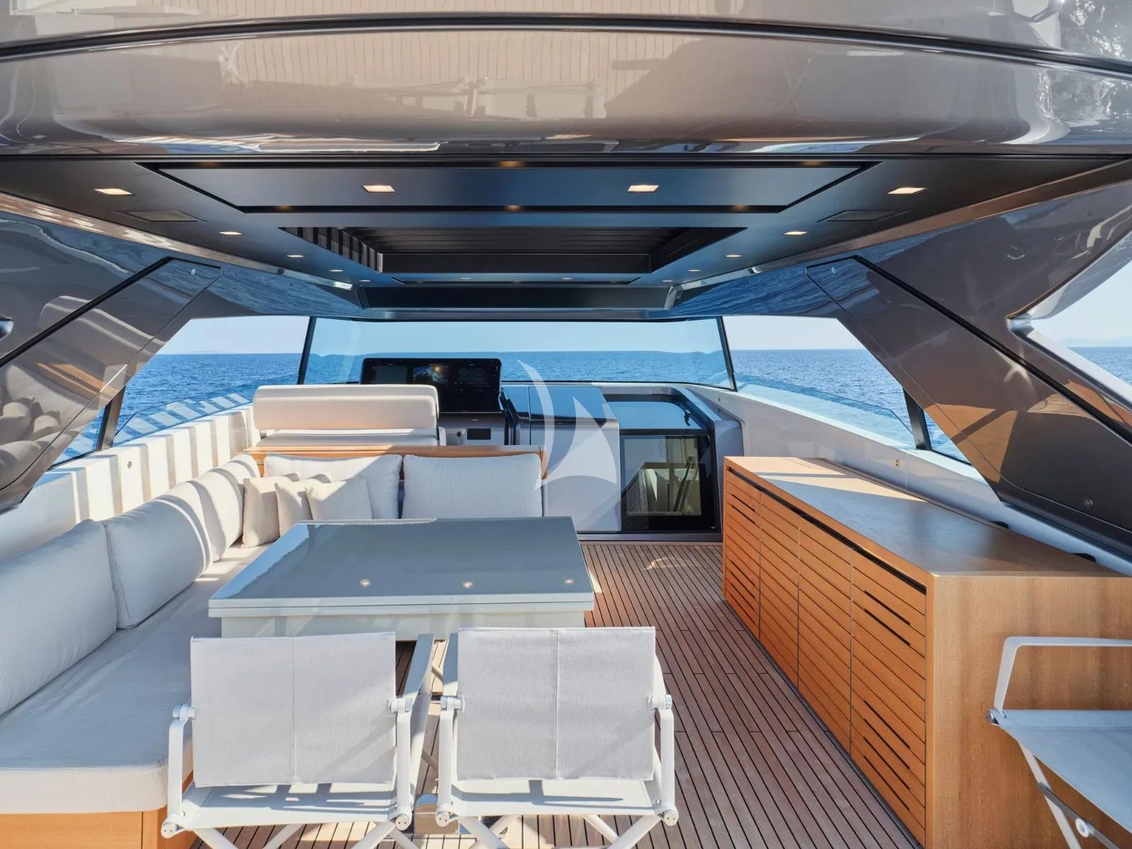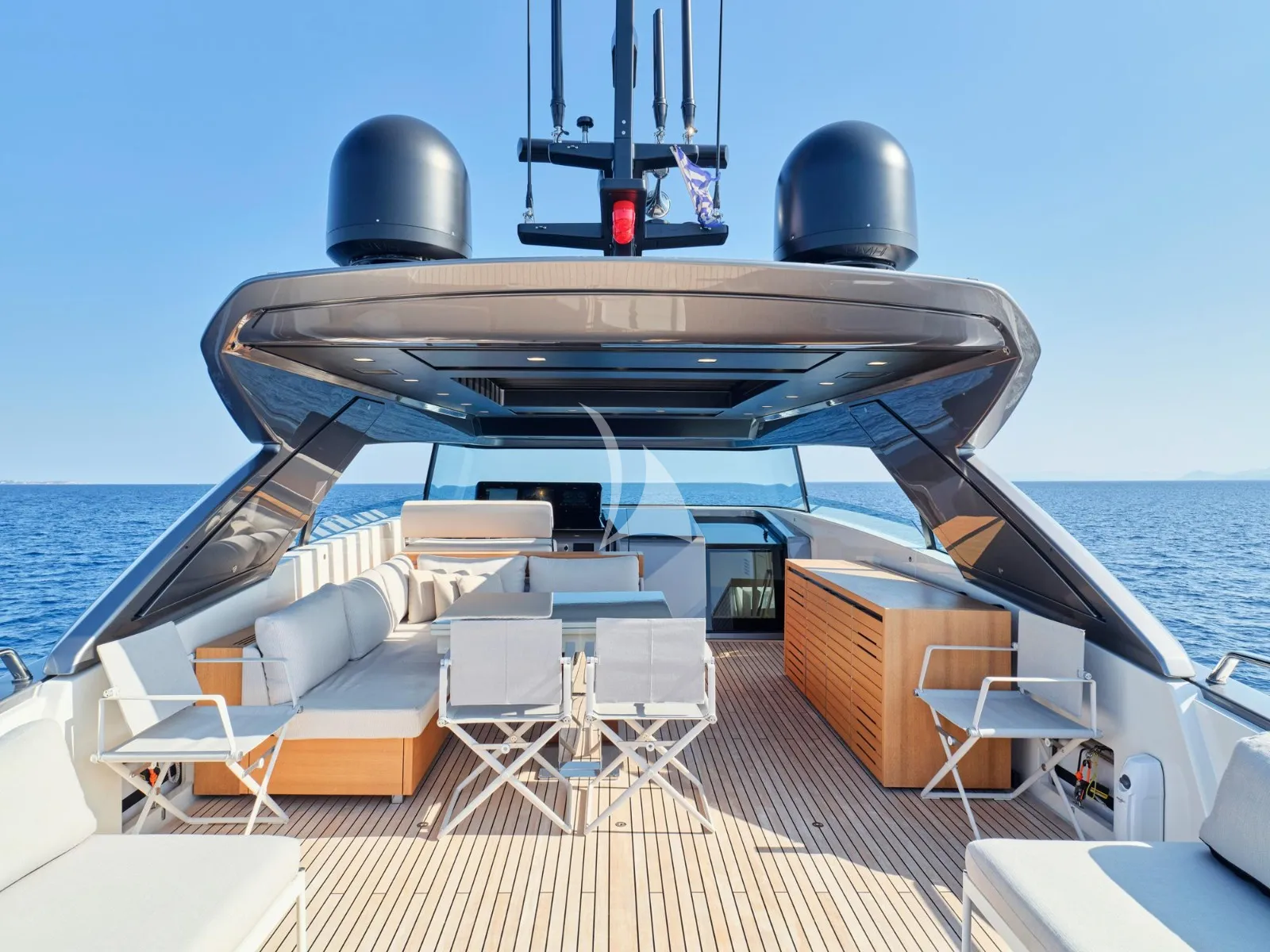 Her generous exterior areas are designed for relaxation and entertainment, featuring a panoramic flybridge, a comfortable bow lounge, and a stylish beach club with direct access to the sea—ideal for enjoying the Mediterranean lifestyle.