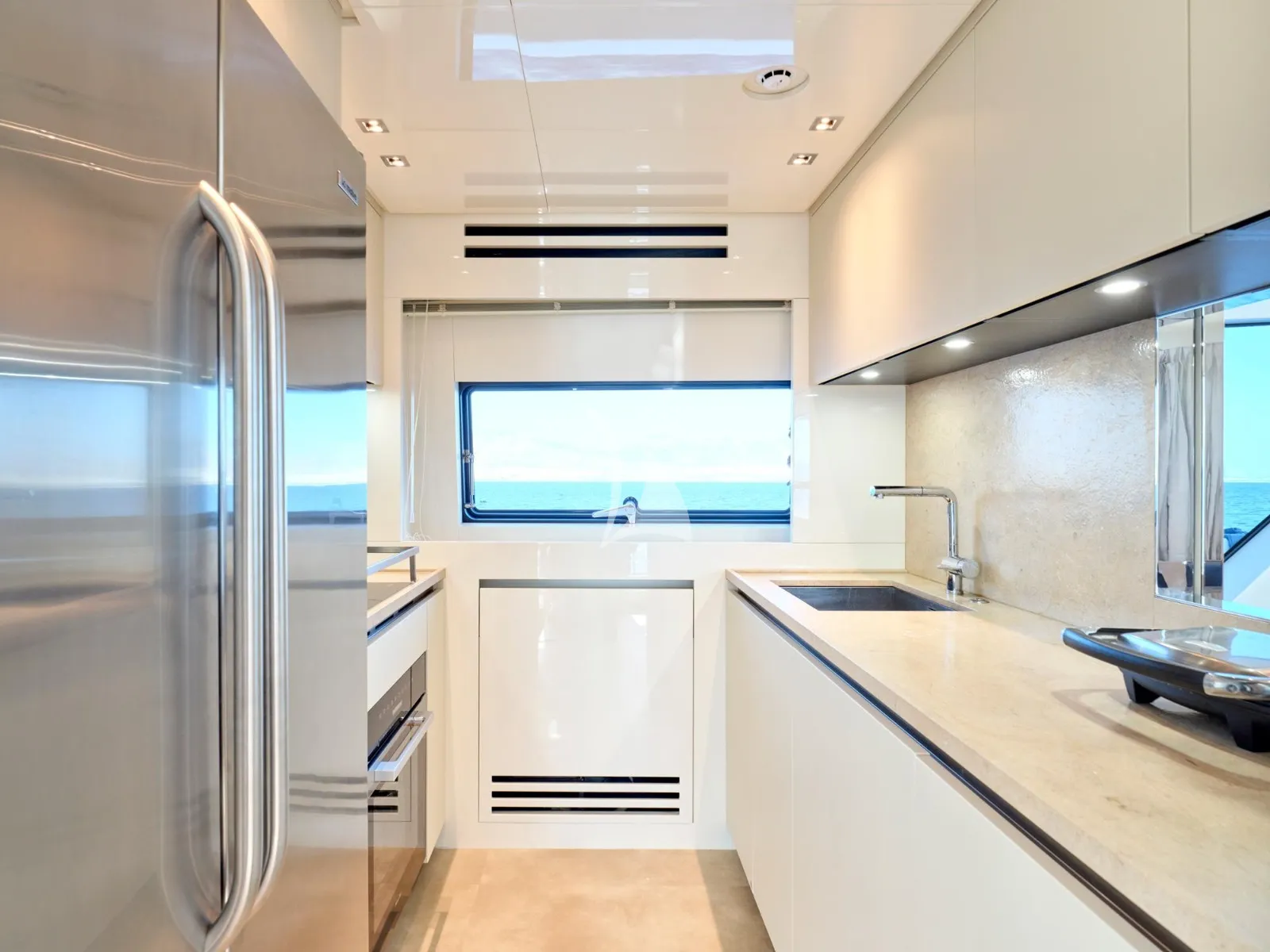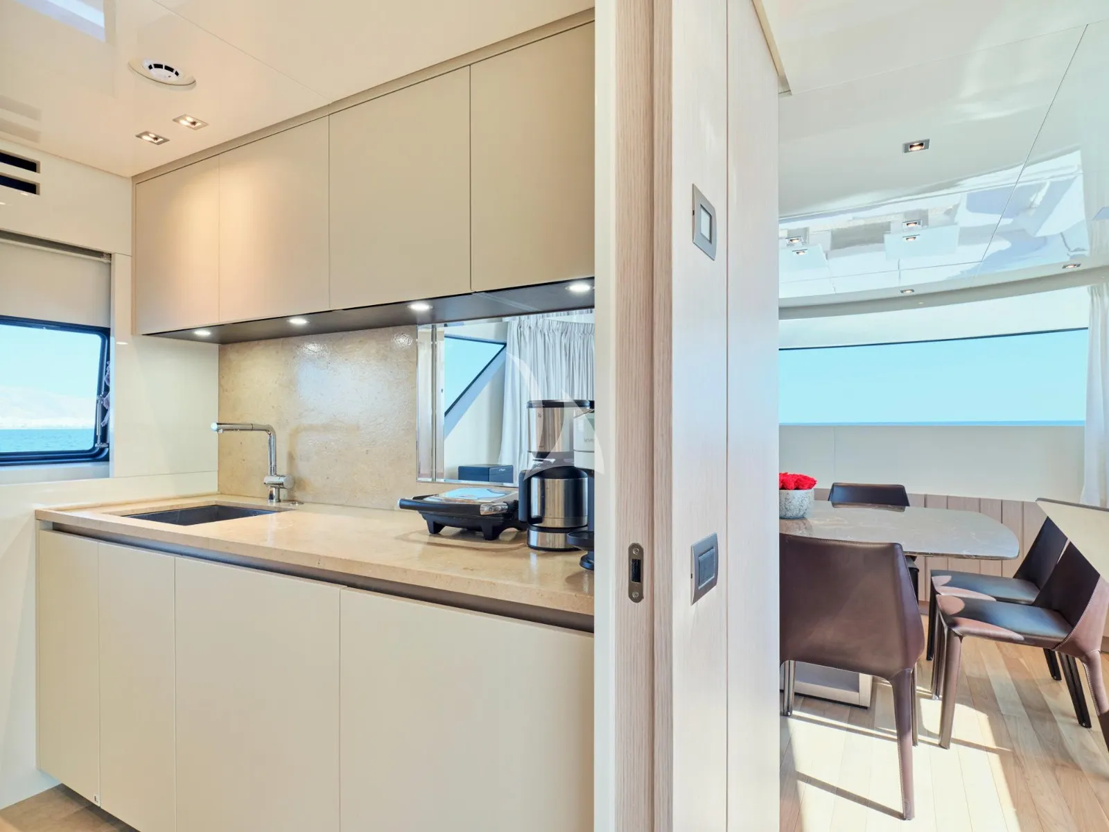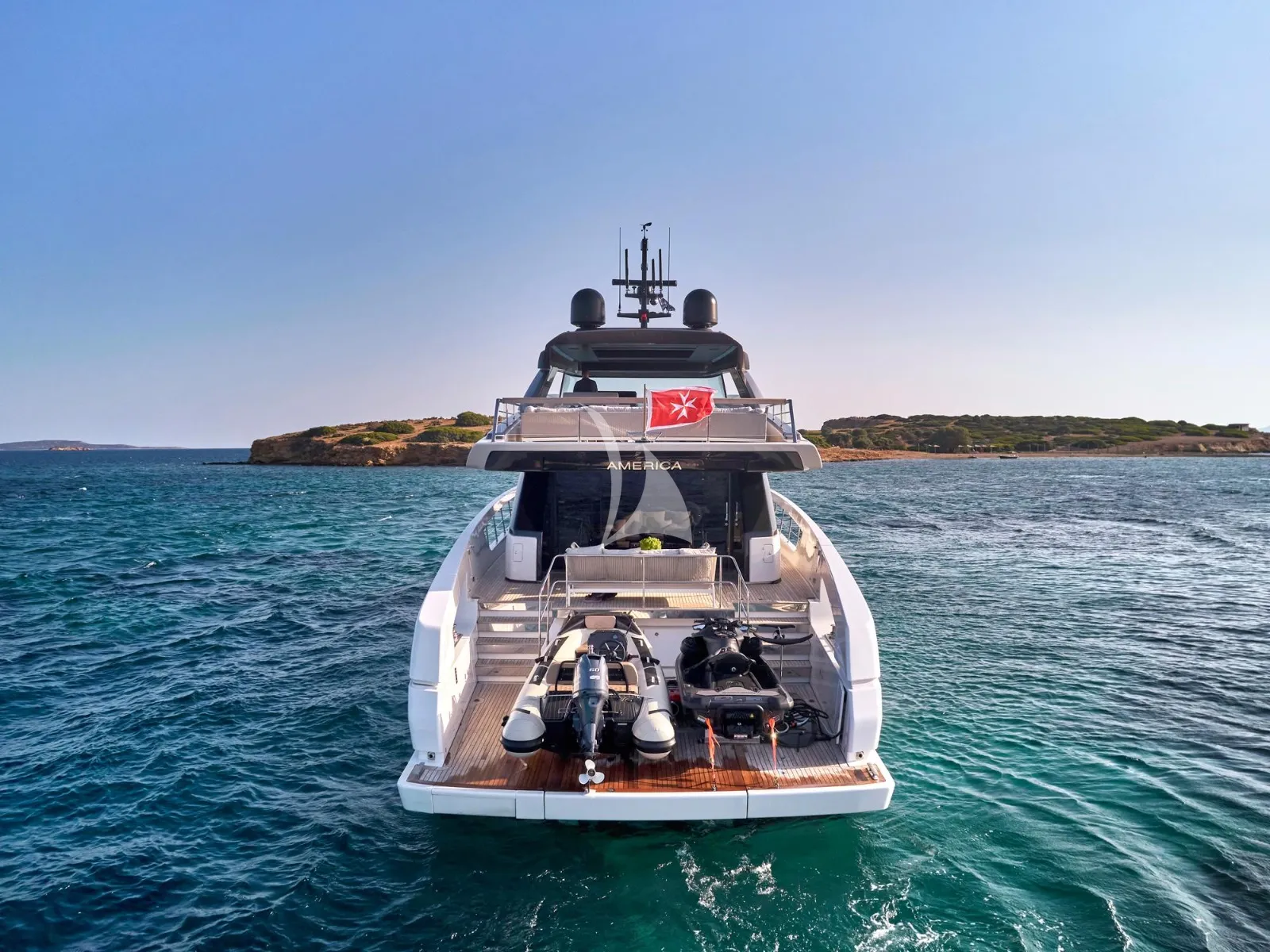Her generous exterior areas are designed for relaxation and entertainment, featuring a panoramic flybridge, a comfortable bow lounge, and a stylish beach club with direct access to the sea—ideal for enjoying the Mediterranean lifestyle.