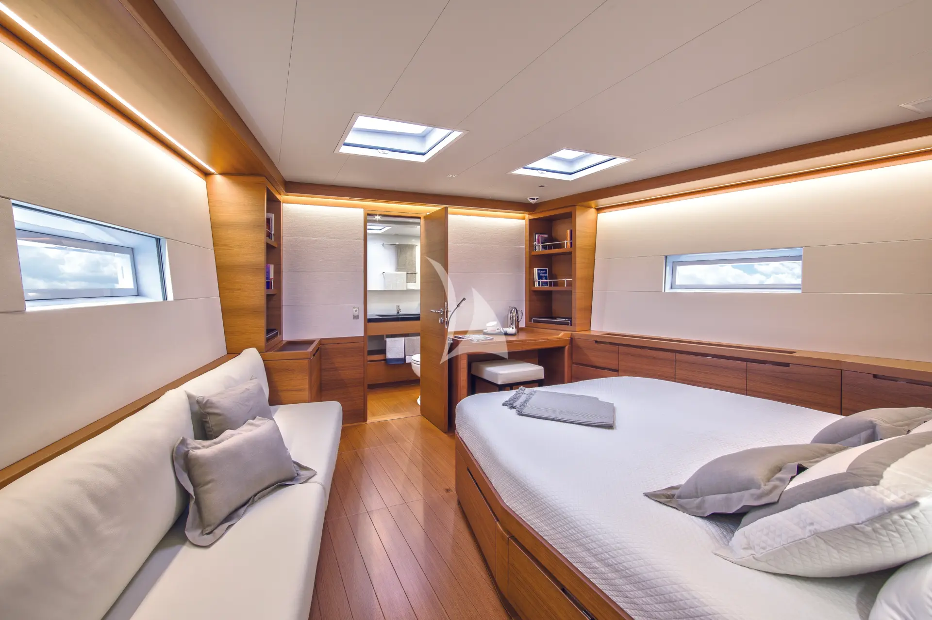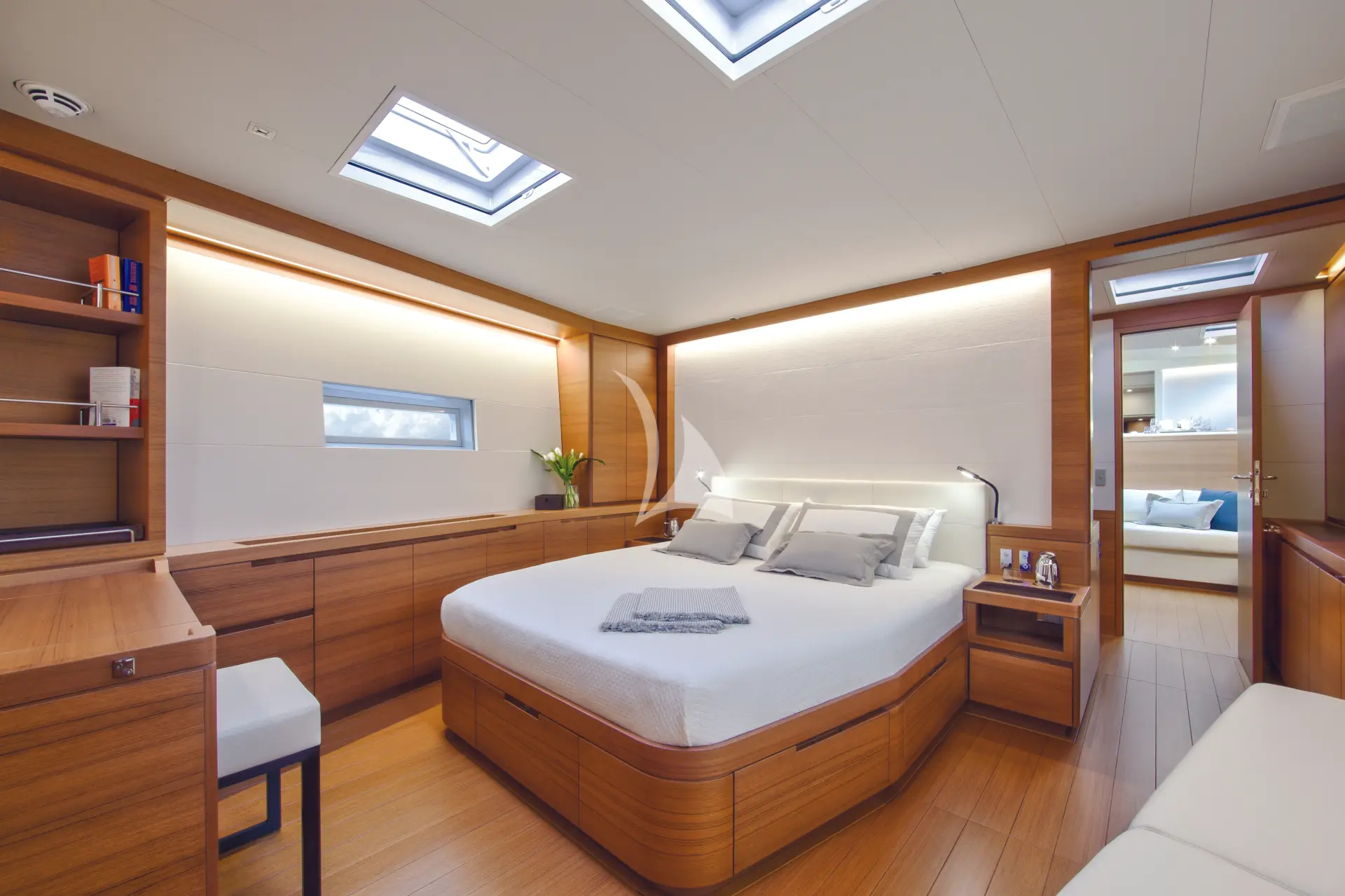 A standout feature is the spacious midship studio, a flexible private lounge or relaxation area that separates the main saloon from the owner’s quarters: ideal for guests seeking both shared social spaces and quiet retreats during their charter.
