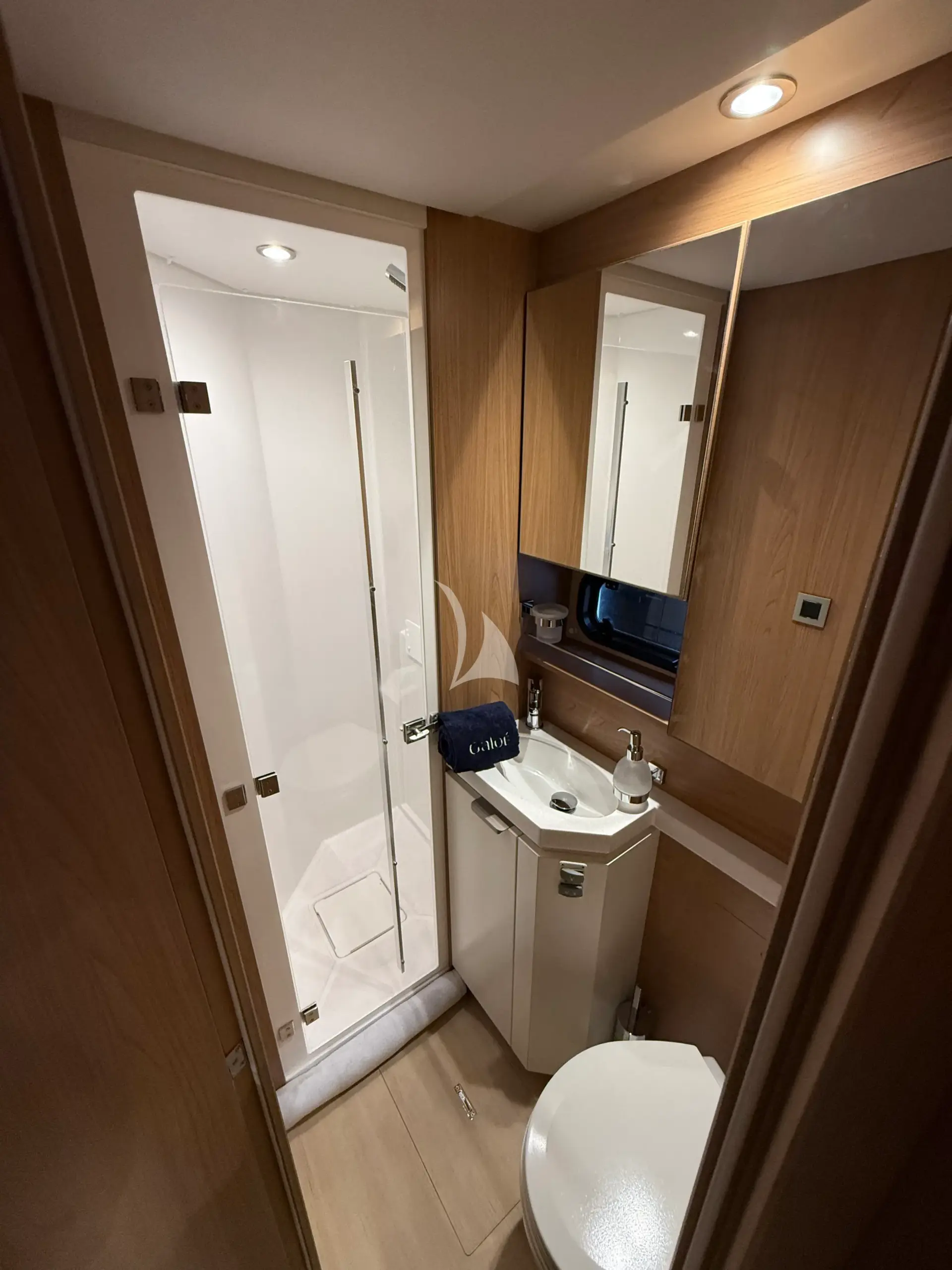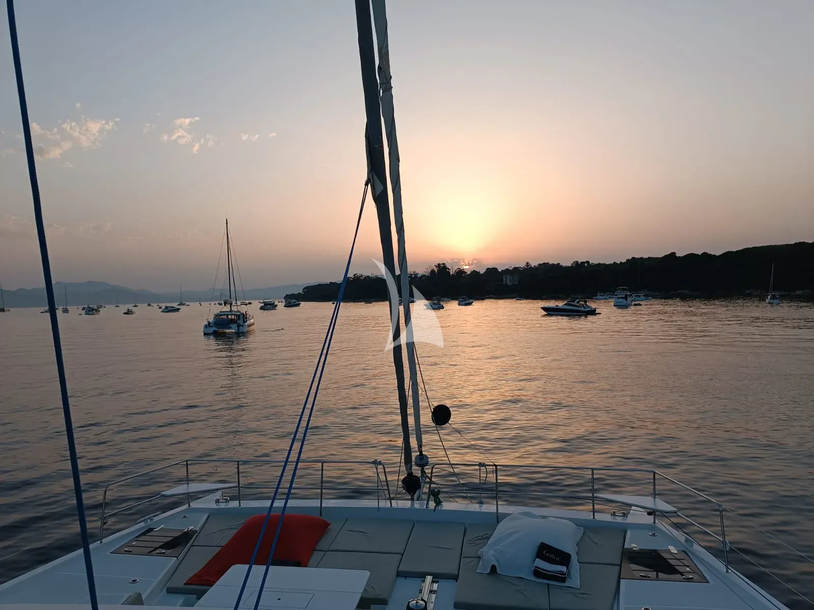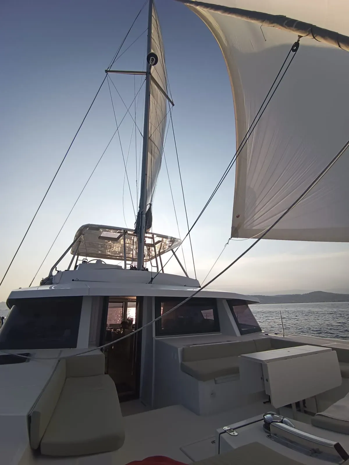 GALOE is a 53ft (16m) sailing yacht built by Bali Catamarans in 2023. She accommodates up to 10 guests in 5 cabins comprising 4 double and 1 twin, with a professional crew of 2 ensuring an exceptional charter experience. Available for charter in France, Italy. Notable features include over 128m2 of living space, 360 degrees view flybridge, solid fore deck suitable for diverse activities, while staying dry in navigation, automated aft tilting door integrating indoors / outdoors, and american fridge (615l).