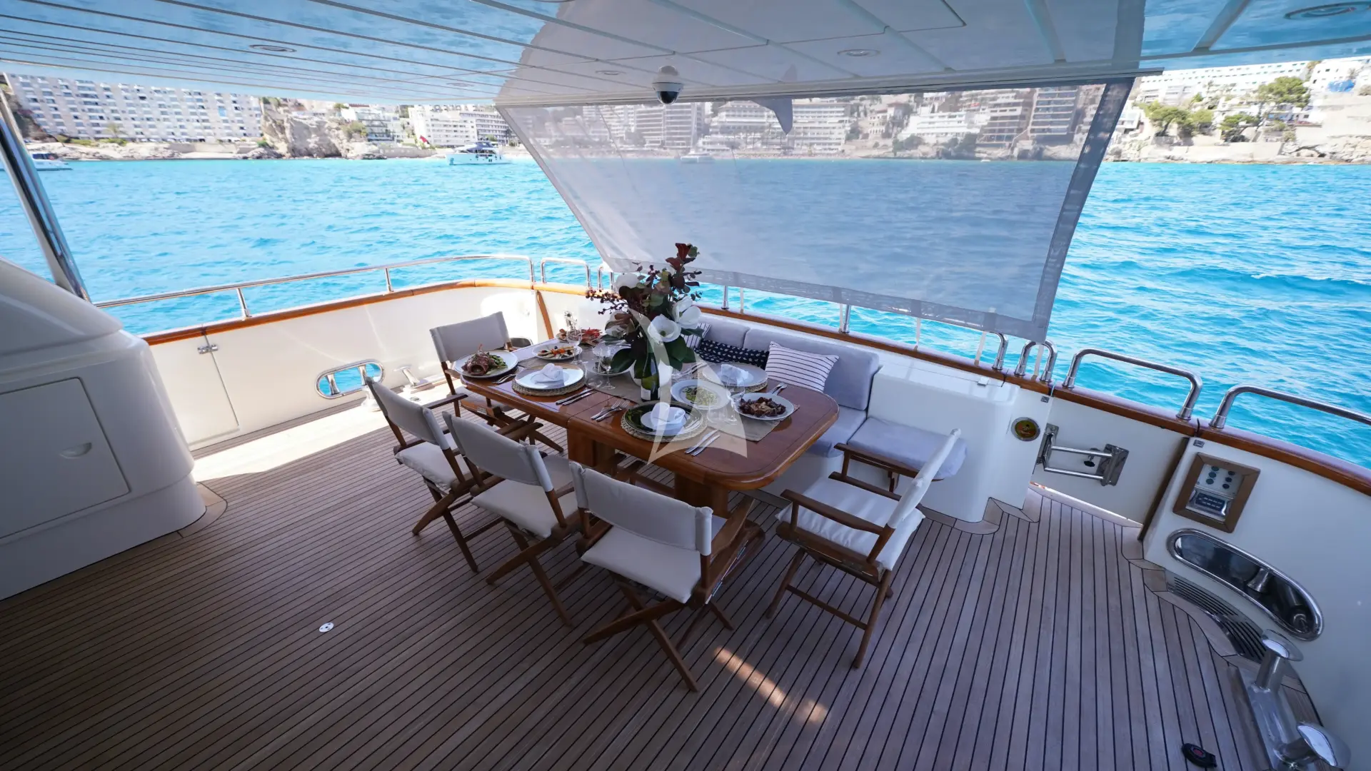 GEORG I is a 85ft (26m) motor yacht built by Falcon in 2002. She accommodates up to 10 guests in 4 cabins comprising 2 double and 2 twin, with a professional crew of 4 ensuring an exceptional charter experience. Available for charter in Spain.