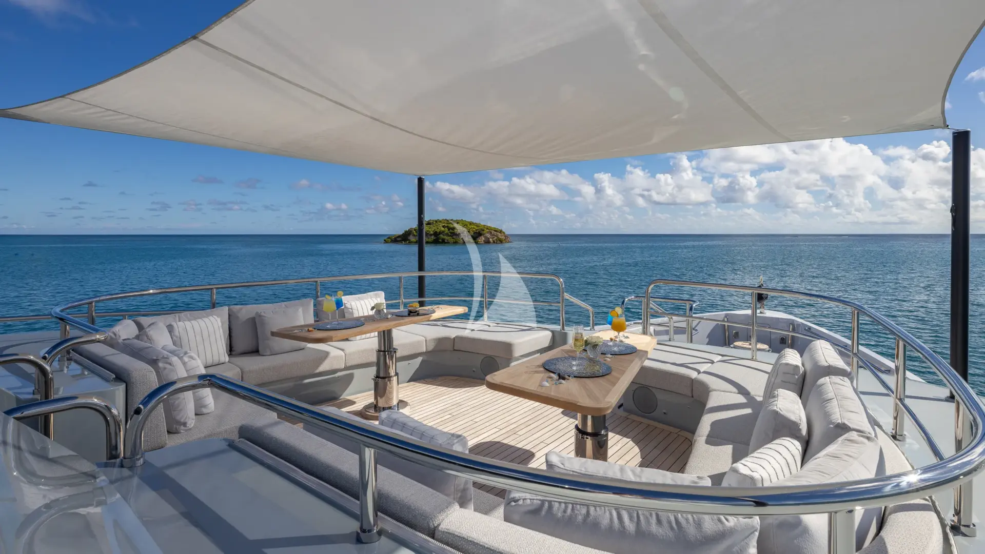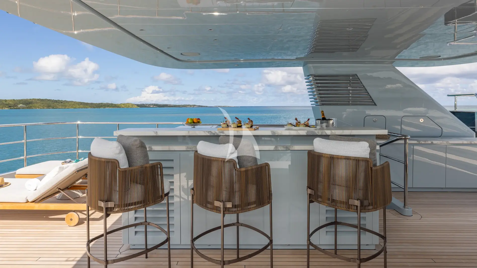 Across three decks, GIOIA is made for both togetherness and tranquility. On the sun deck, soak in the raised jacuzzi as the horizon stretches ahead, then dry off on the surrounding sun pads with a cocktail in hand. A few steps down there’s a shaded lounge for lazy afternoons, while the sit-up bar plays host to some creative mixology. By evening, the upper aft deck transforms into a stage for long dinners under the stars, followed by relaxed conversations in deep, inviting sofas.