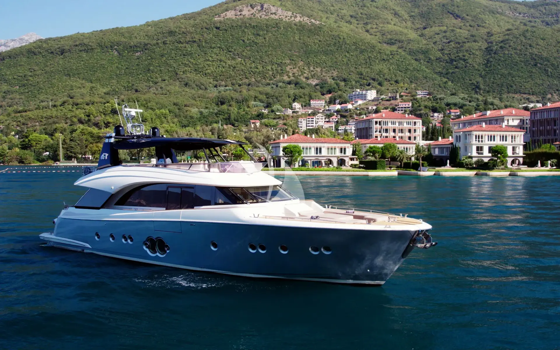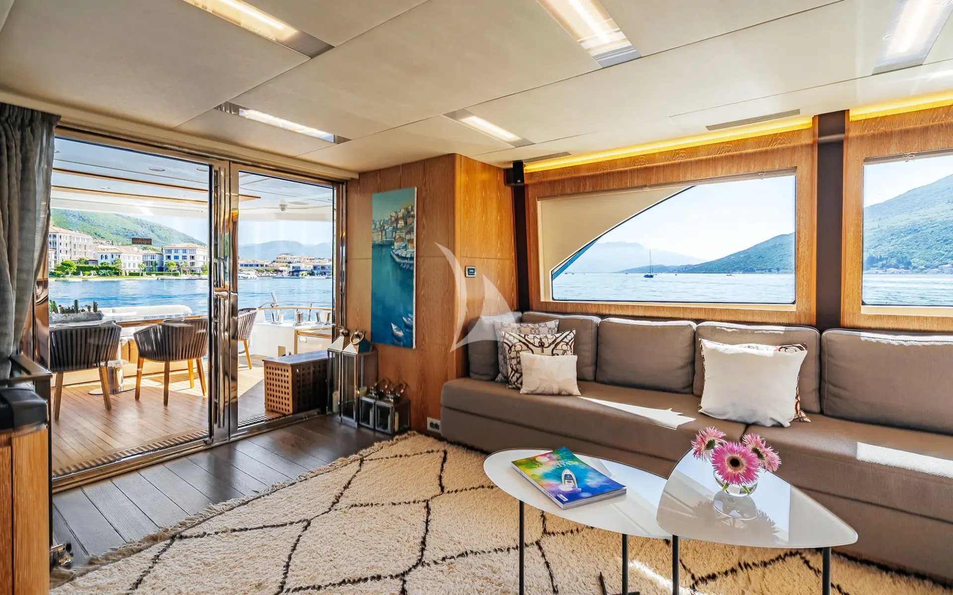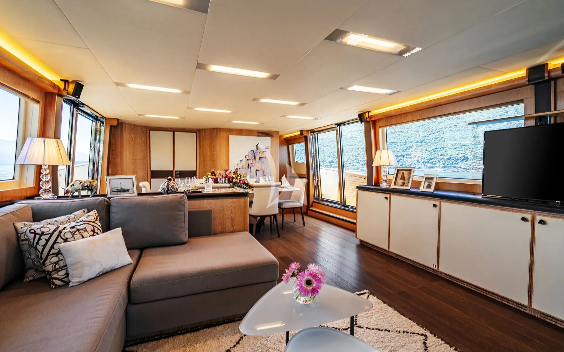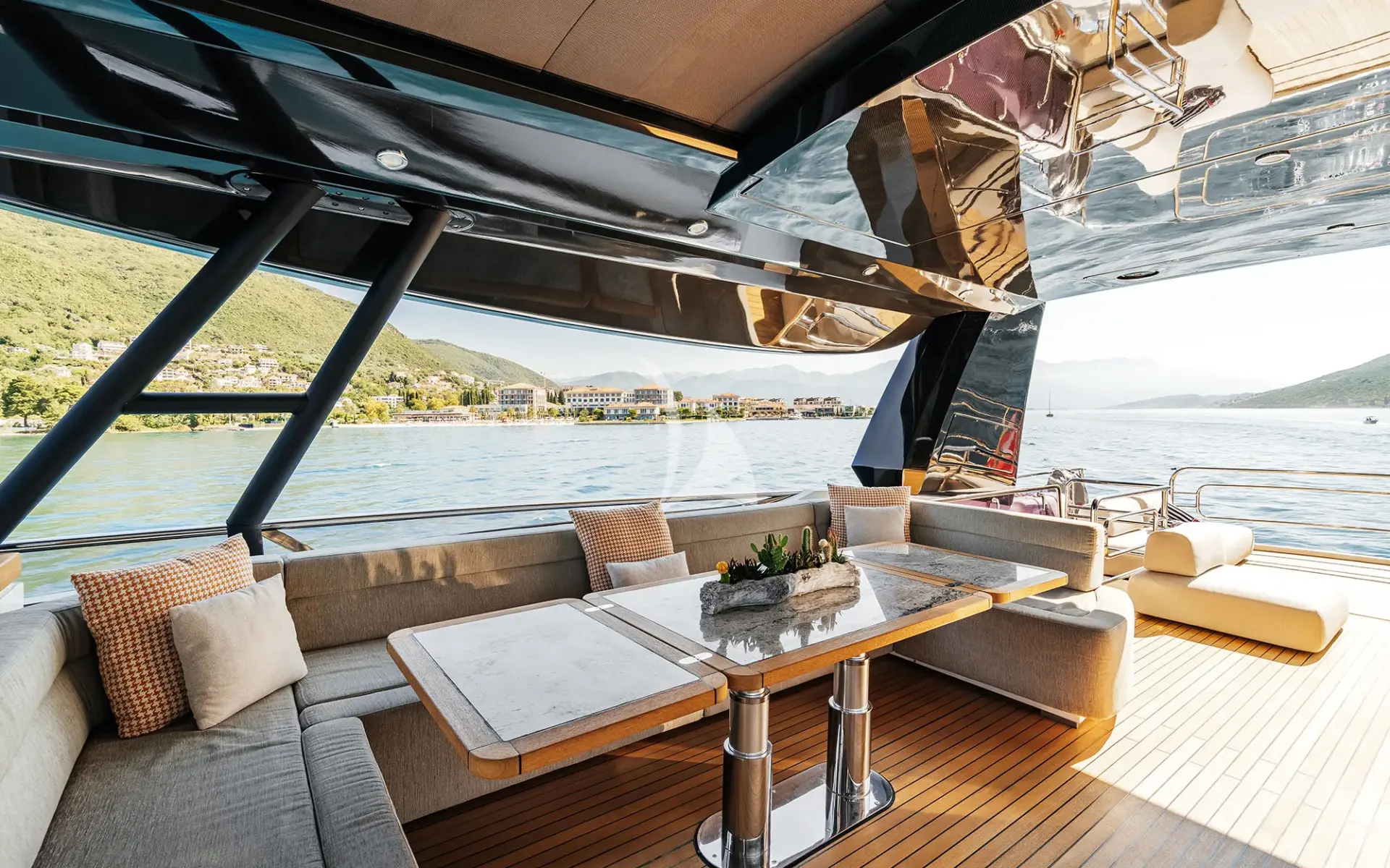GIORGIO is an excellent choice of 26m charter motor yacht. Built by Monte Carlo Yachts this 86 model has a perfect layout to spend a great time at the sea. Her tastefully decorated interiors offer accommodation in 4 spacious and stylish staterooms all located on the lower deck. Outdoor areas perfect for a sunbathing, alfresco dining or to enjoy the sea view. Her spacious 40-foot fly bridge includes multiple lounging areas, sofas, a bar, and a built-in LYNX professional gas grill. The team of dedicated 4 crew members will guarantee excellent service. Giorgio is a compact super yacht with the spirit of a much larger vessel and built for those who appreciate the pleasure of life at sea.