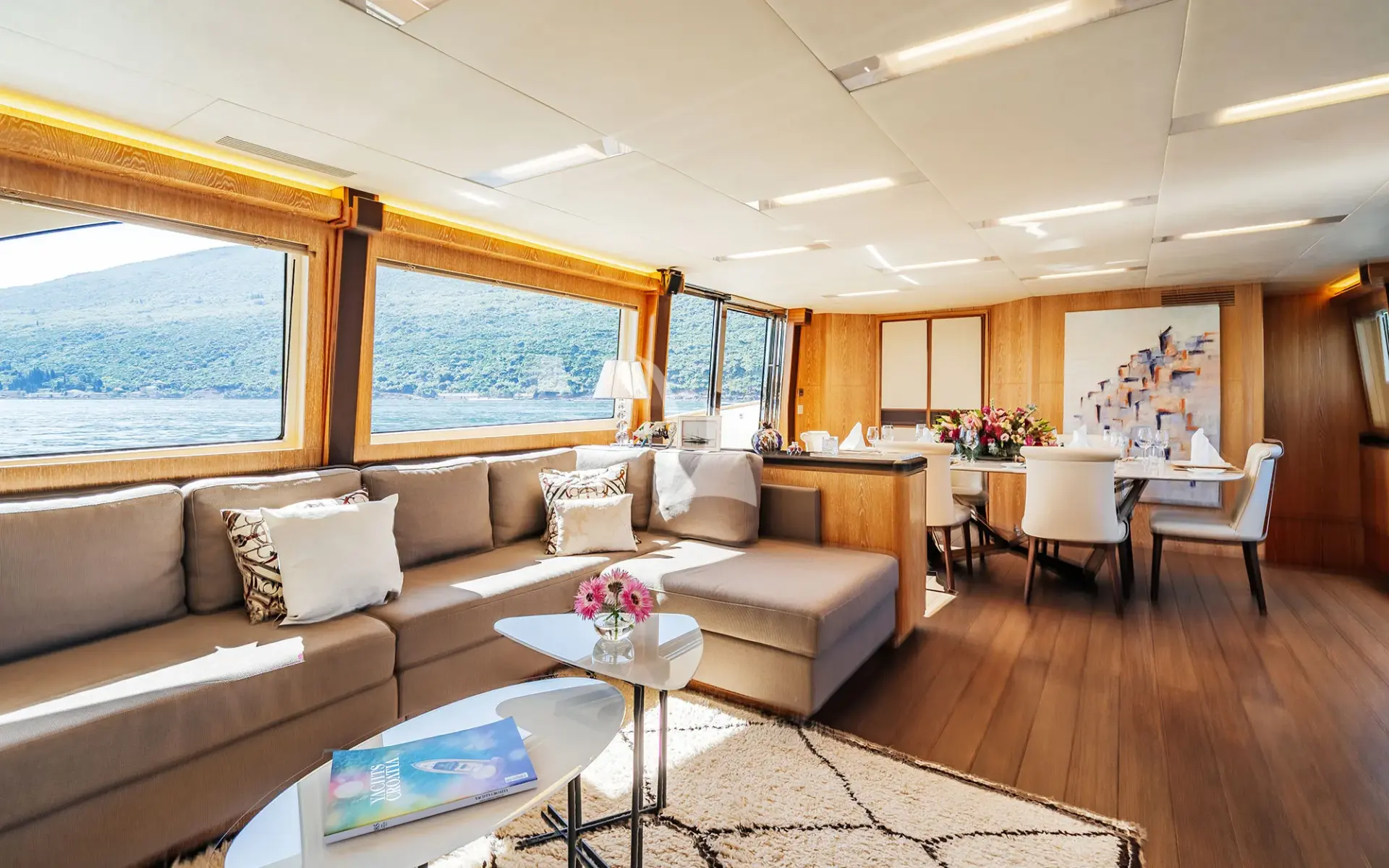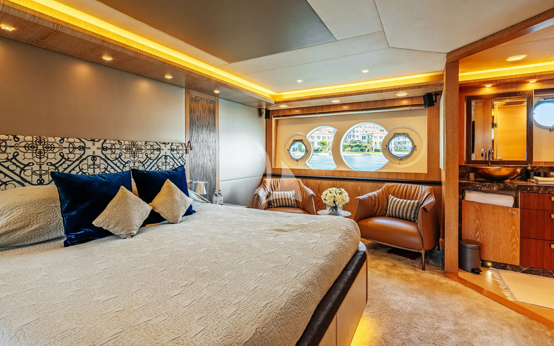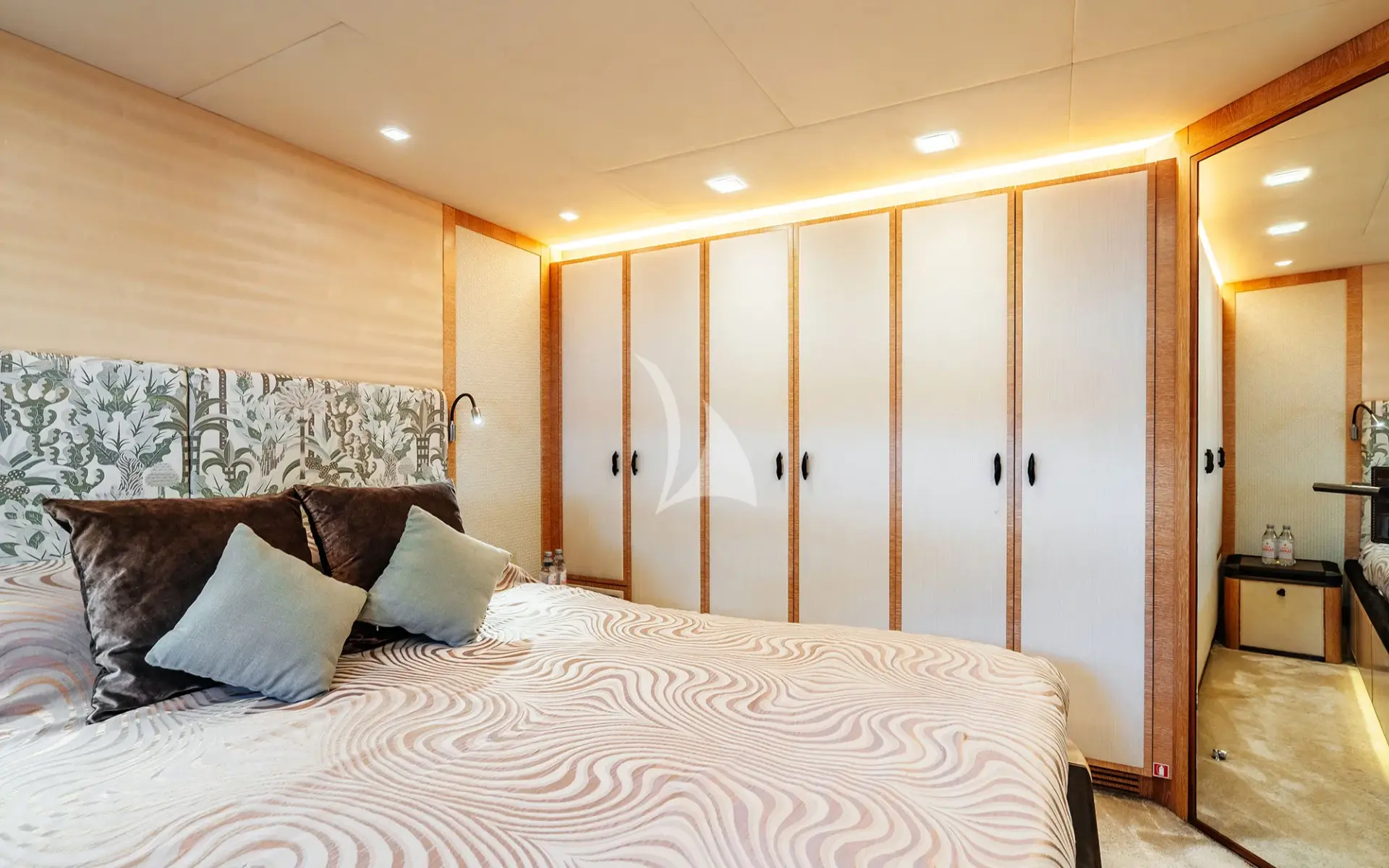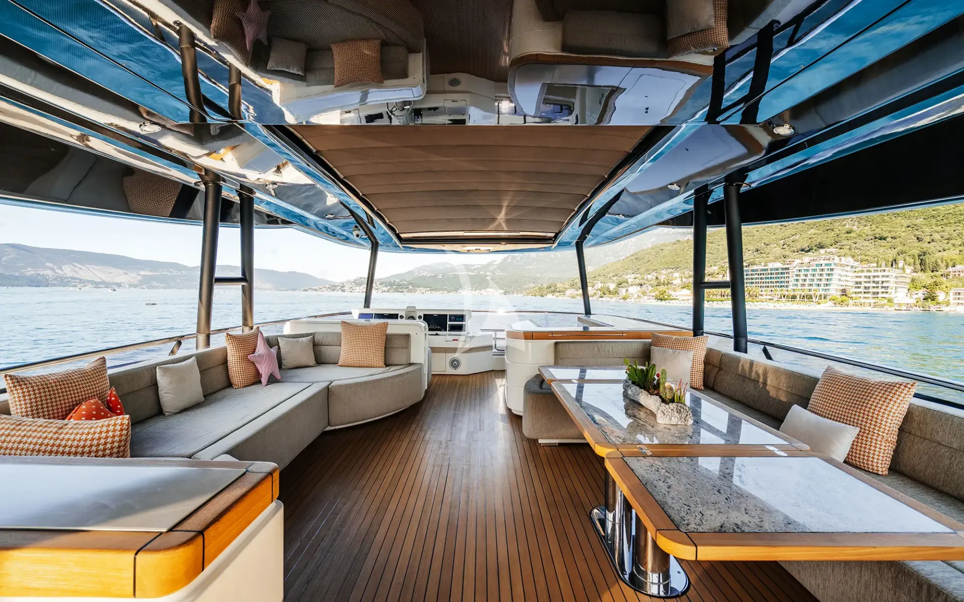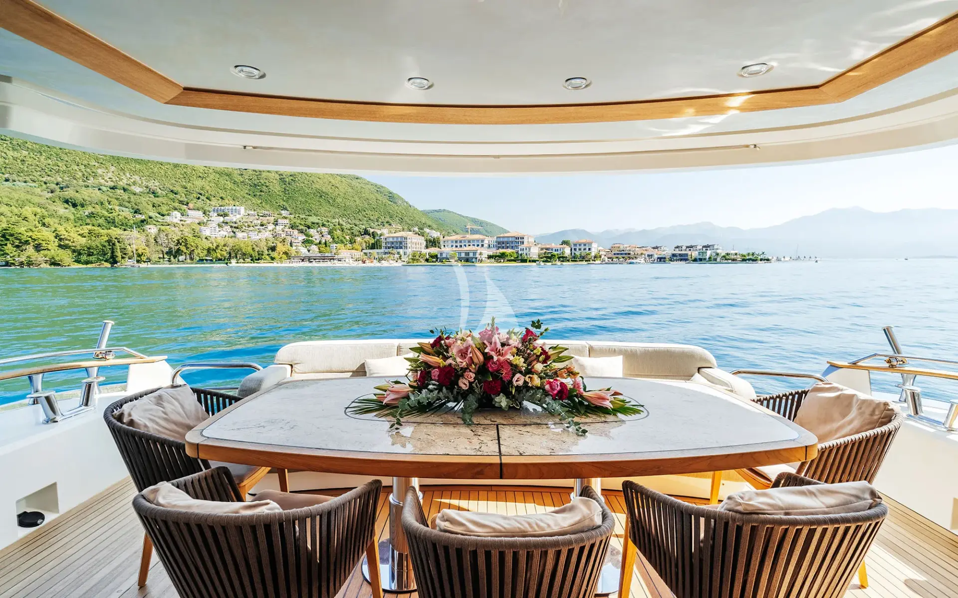 GIORGIO is an excellent choice of 26m charter motor yacht. Built by Monte Carlo Yachts this 86 model has a perfect layout to spend a great time at the sea. Her tastefully decorated interiors offer accommodation in 4 spacious and stylish staterooms all located on the lower deck. Outdoor areas perfect for a sunbathing, alfresco dining or to enjoy the sea view. Her spacious 40-foot fly bridge includes multiple lounging areas, sofas, a bar, and a built-in LYNX professional gas grill. The team of dedicated 4 crew members will guarantee excellent service. Giorgio is a compact super yacht with the spirit of a much larger vessel and built for those who appreciate the pleasure of life at sea.