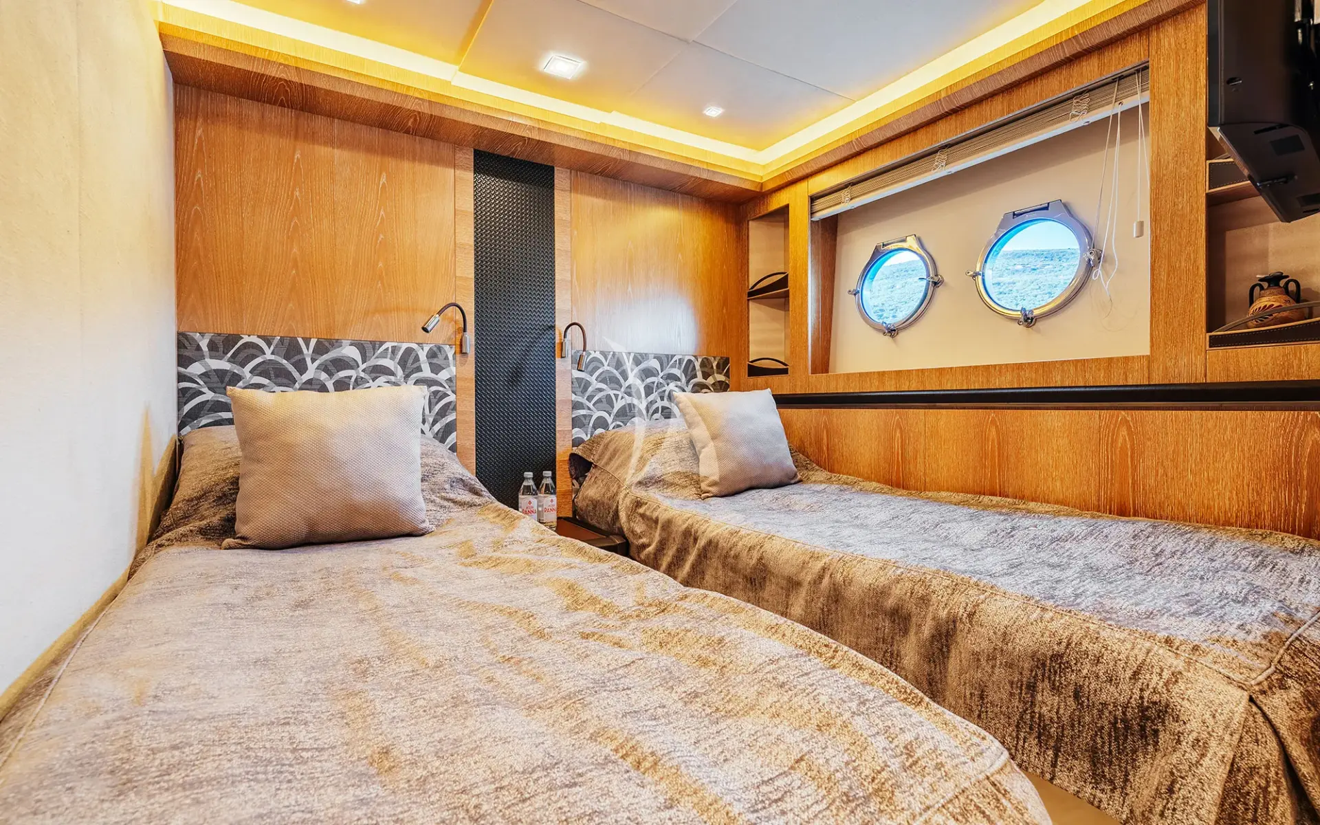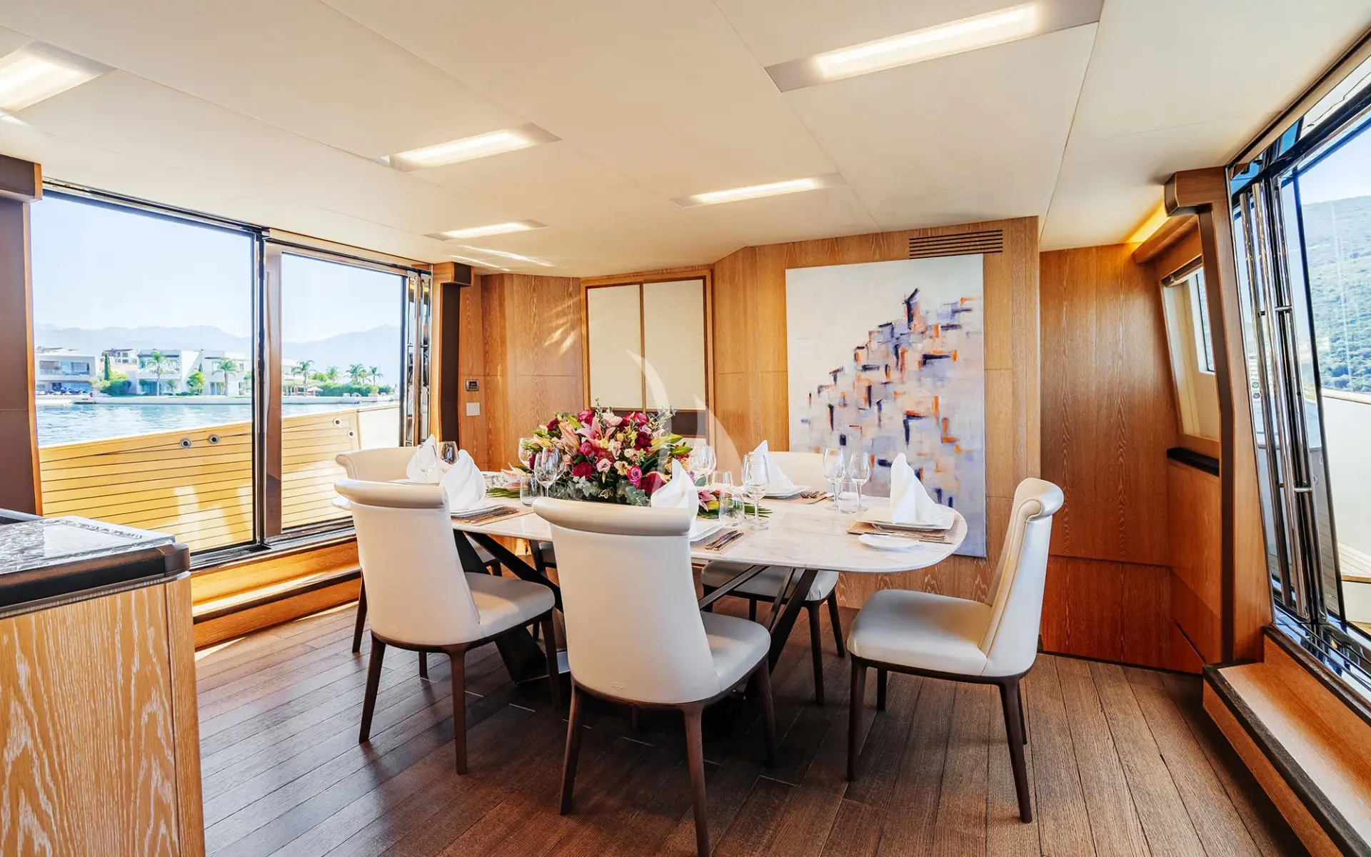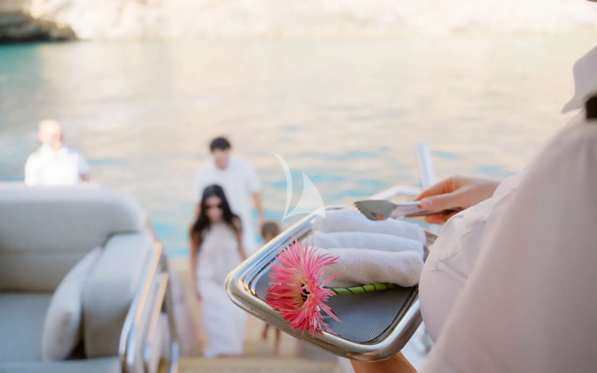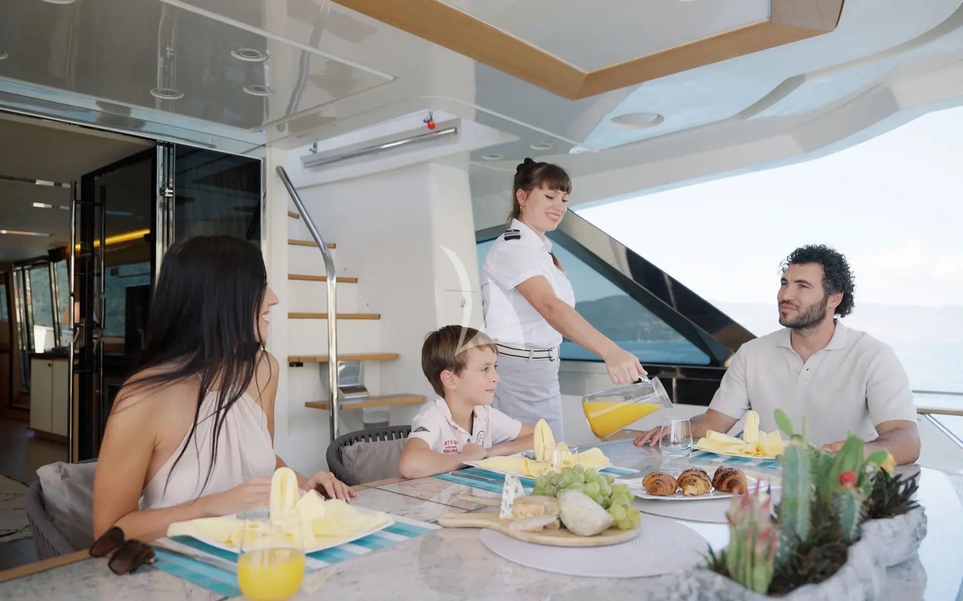 GIORGIO is an excellent choice of 26m charter motor yacht. Built by Monte Carlo Yachts this 86 model has a perfect layout to spend a great time at the sea. Her tastefully decorated interiors offer accommodation in 4 spacious and stylish staterooms all located on the lower deck. Outdoor areas perfect for a sunbathing, alfresco dining or to enjoy the sea view. Her spacious 40-foot fly bridge includes multiple lounging areas, sofas, a bar, and a built-in LYNX professional gas grill. The team of dedicated 4 crew members will guarantee excellent service. Giorgio is a compact super yacht with the spirit of a much larger vessel and built for those who appreciate the pleasure of life at sea.