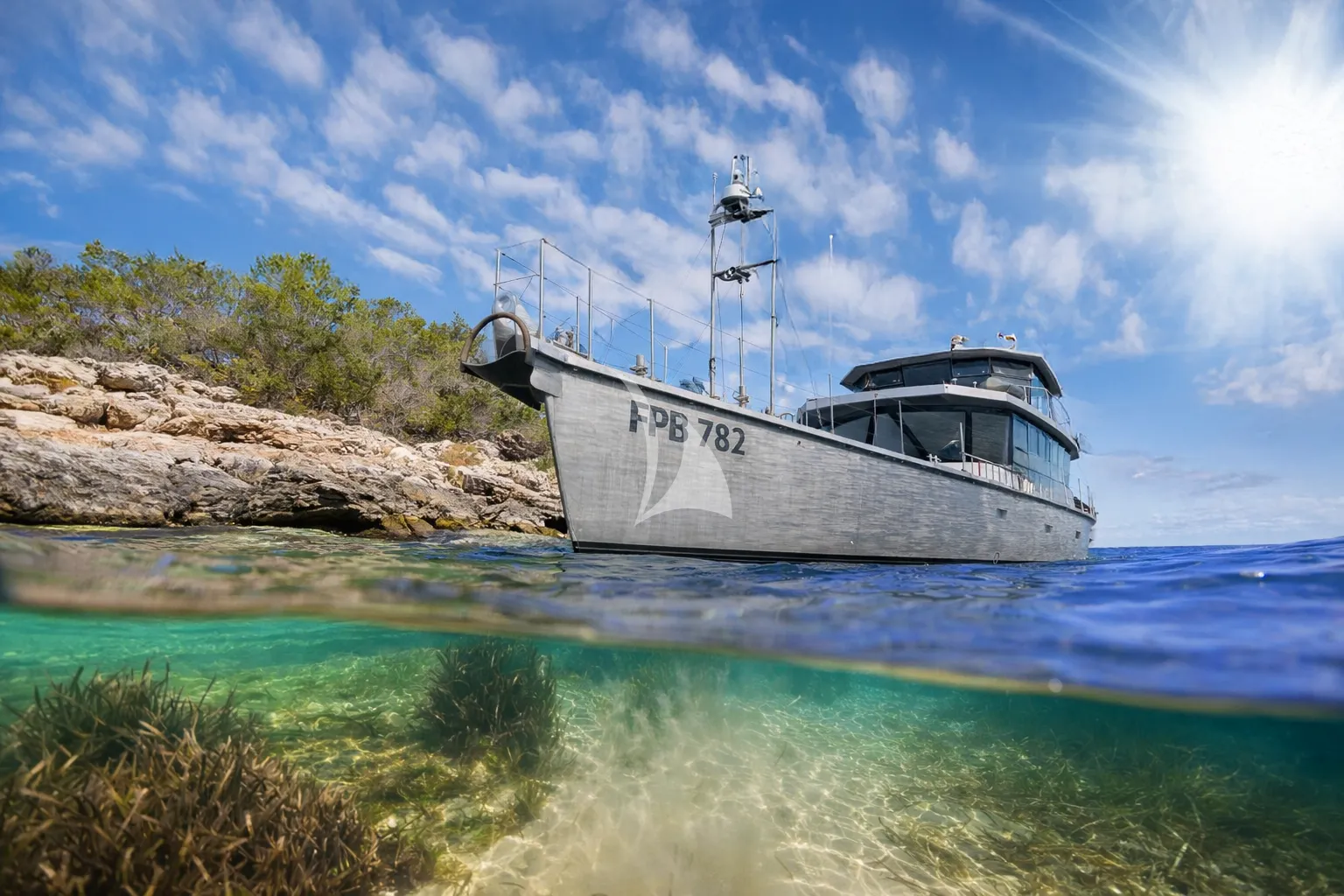 Her shallow draft and compact profile open the door to secluded bays, rugged coastlines and quieter corners of the Mediterranean that larger yachts simply can’t reach. Onboard equipment supports an active lifestyle, from water sports and fishing to photography, wildlife watching and SCUBA diving, while her military grade tenders ensure no cove remains out of reach.