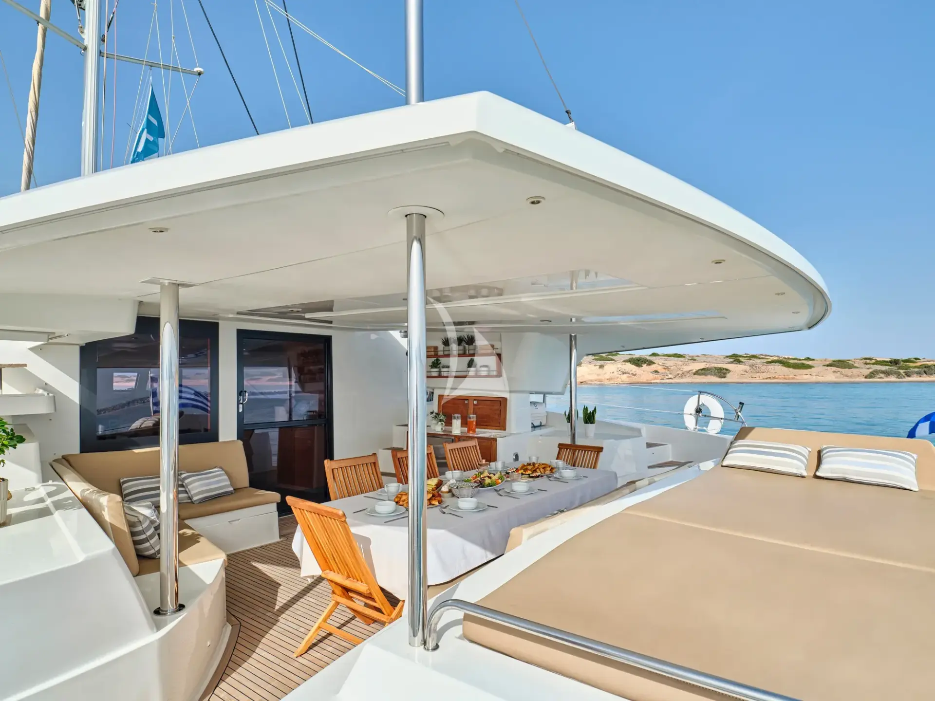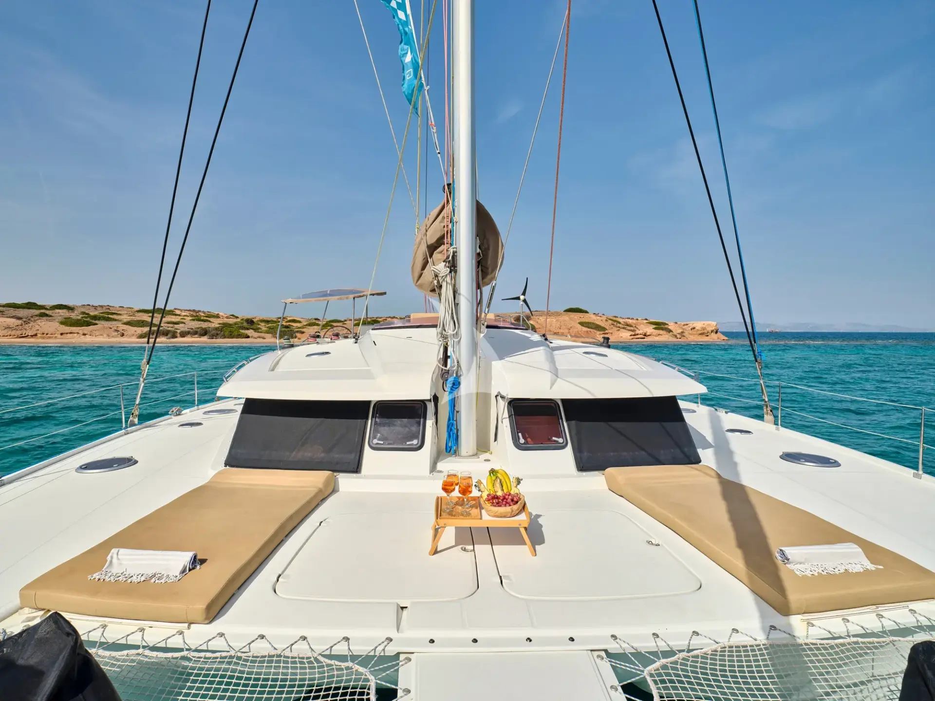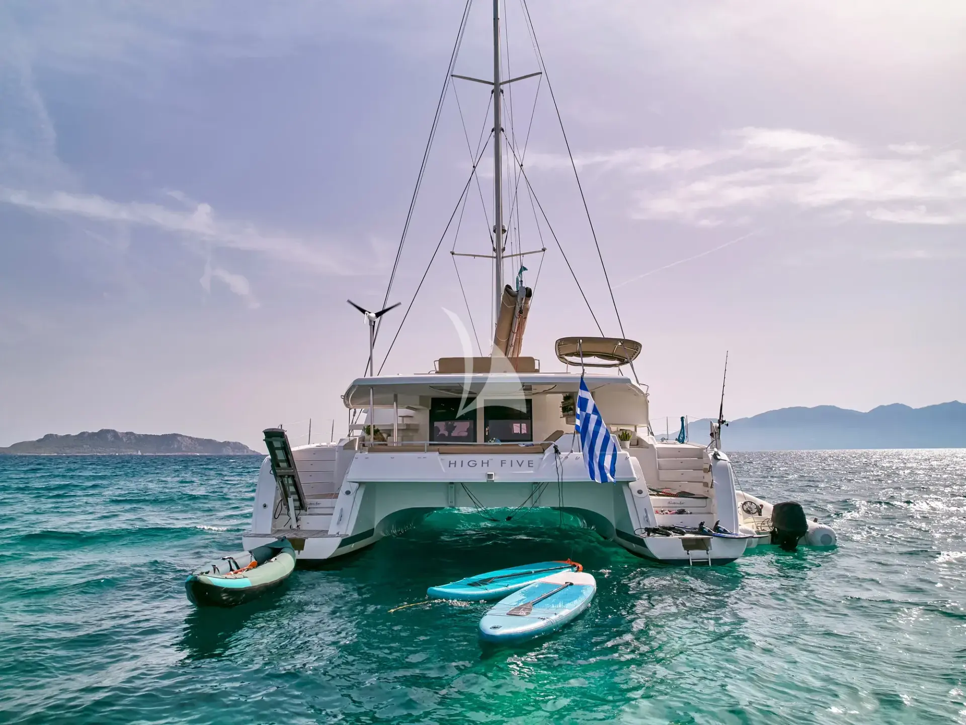 What do you envision for your dream vacation? If it’s a journey that combines adventure, relaxation, and the timeless beauty of the Greek islands, S/Y HIGH FIVE is the perfect choice. This impressive and luxurious FOUNTAINE PAJOT Sanya 57 is an elegant, contemporary sailing catamaran designed to deliver unforgettable moments as you glide through the crystal-clear waters of the Aegean or Ionian Sea.