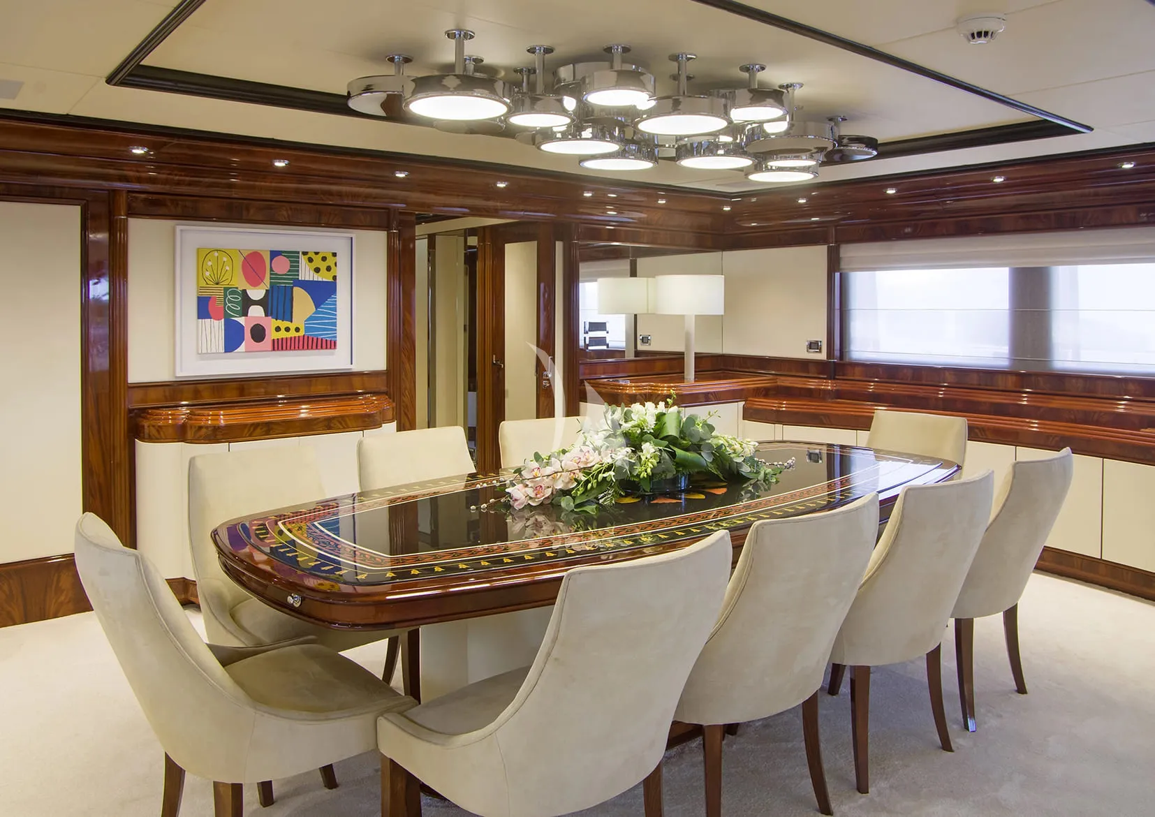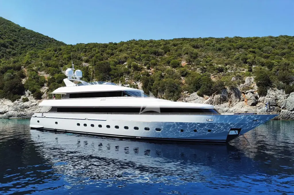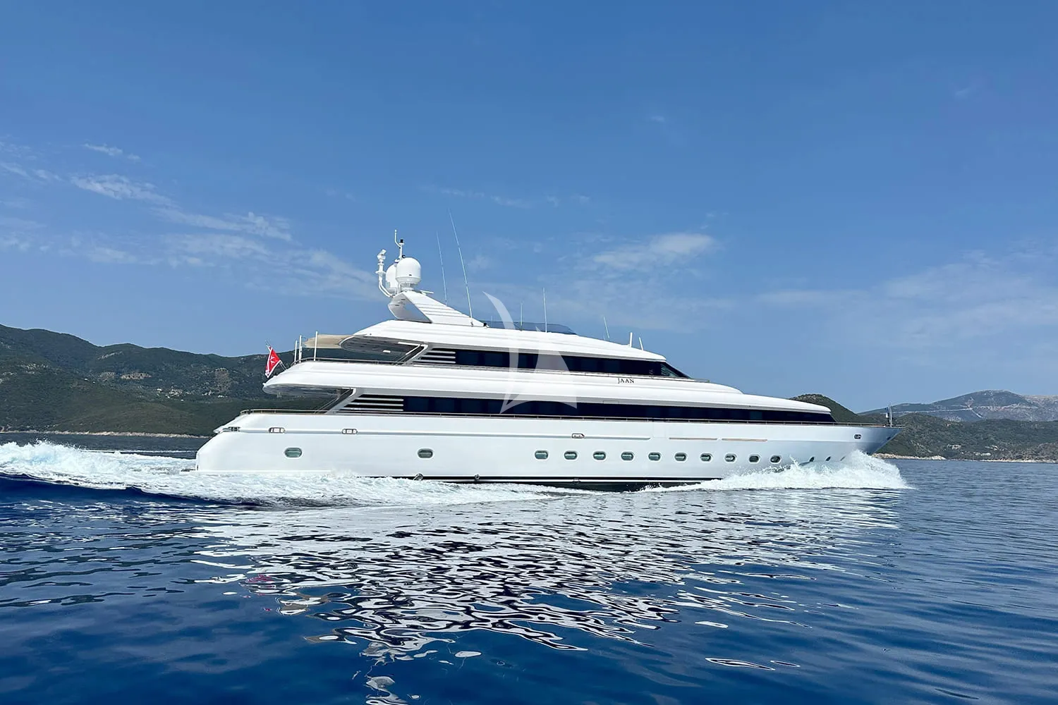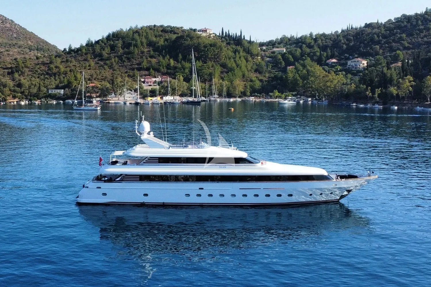 JAAN is a 138ft (42m) motor yacht built by Intermarine in 1997 and refitted in 2024, with design by Intermarine Spa. She accommodates up to 12 guests in 6 cabins comprising 4 double and 2 twin, with a professional crew of 9 ensuring an exceptional charter experience. Available for charter in All Adriatic, All East Med.
