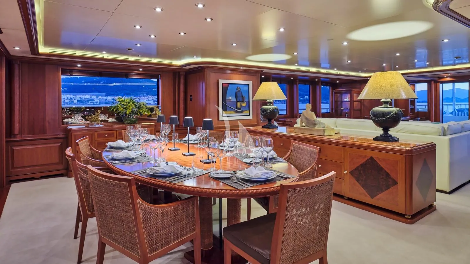 Accommodating up to 12 guests in six beautifully appointed cabins, JO I offers exceptional comfort and privacy. The master suite is positioned on the main deck, while a spacious VIP suite enjoys a prime location on the upper deck, ideal for multigenerational families or couples. Warm, contemporary décor flows throughout, creating a sophisticated yet welcoming ambiance perfect for unwinding after a day at sea.
