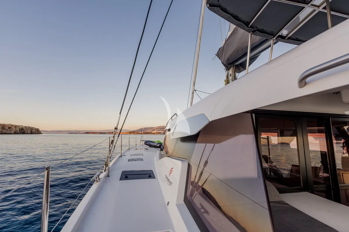KEBISIKS is a 51ft (16m) sailing yacht built by Fountaine Pajot in 2025. She accommodates up to 8 guests in 4 cabins comprising 4 double, with a professional crew of 3 ensuring an exceptional charter experience. Available for charter in All East Med.