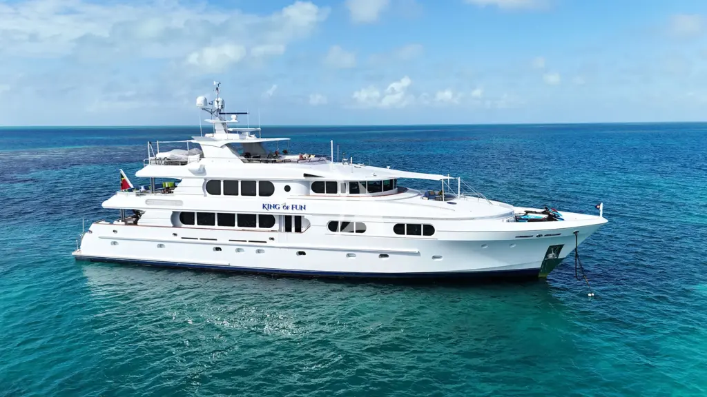 KING OF FUN is a 130ft (40m) motor yacht built by Northern Marine in 2005 and refitted in 2022, with design by Setzer Design Group. She accommodates up to 10 guests in 5 cabins comprising 4 double and 1 twin, with a professional crew of 8 ensuring an exceptional charter experience. Available for charter in North America, The Caribbean and the Bahamas. Notable features include top notch, charter savvy crew, $1M special electronics and lighting refit in 2024, many interior softgood updates in 2024, loaded with toys to live up to the namesake!, and interior volume feels much larger than a 130' yacht.