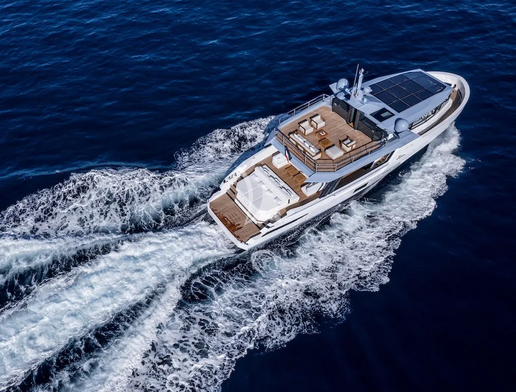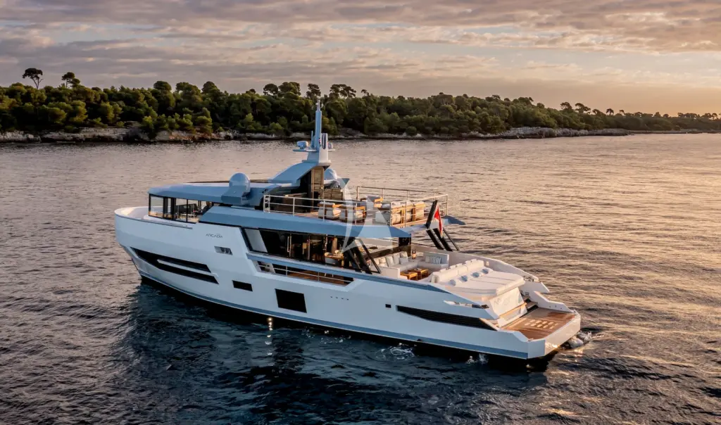 Arcadia Sherpa 80 XL “La FOLYE” is a masterpiece of functionality, contemporary design, and sustainability, created by one of the most innovative shipyards in Italian yachting. With a beam of nearly 7 meters and over 200 m² of combined interior and exterior spaces, it offers exceptional livability, enhanced by Arcadia’s stylistic and architectural philosophy and by the fully customized configuration chosen by the owner.