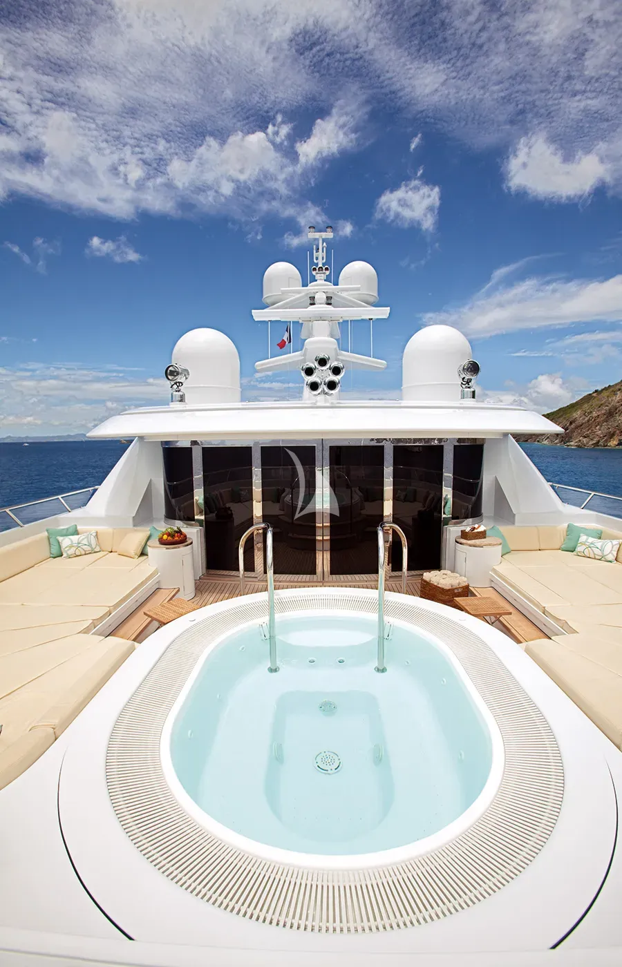Charterers will also enjoy the spacious beach club and the top deck gym, while DJ equipment creates an instant party. LADY BRITT’s now famous Elemis spa is another superb feature, her trained therapist ready to offer guests a range of relaxing wellness techniques including massage and healing stones. Her many exciting features also include a cinema that can be enjoyed either indoors or outdoors.