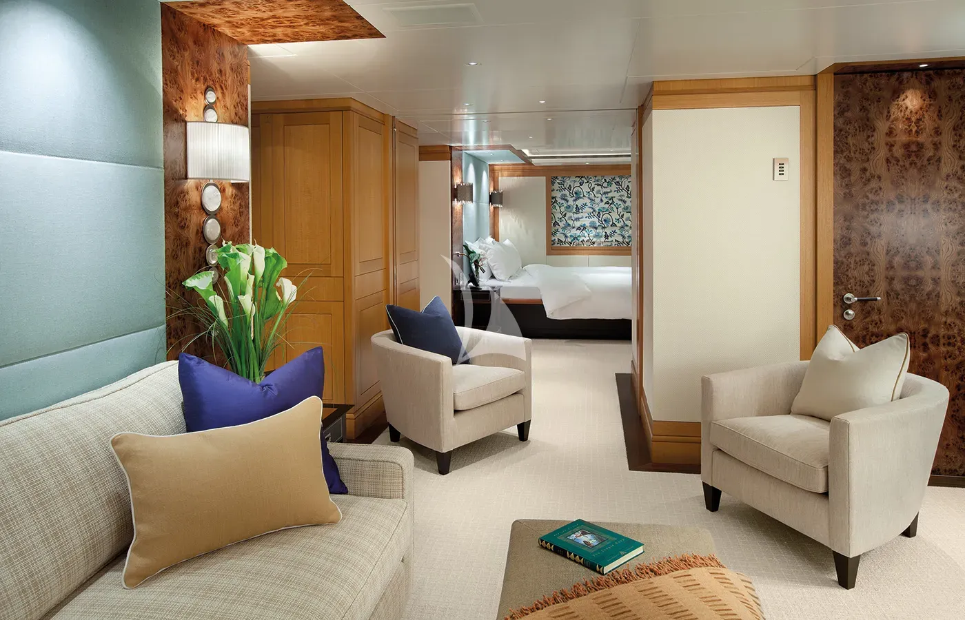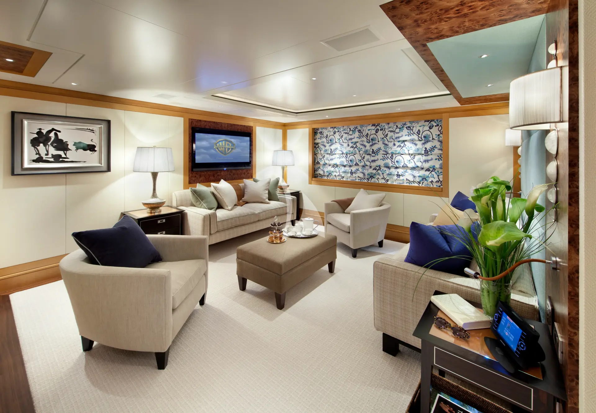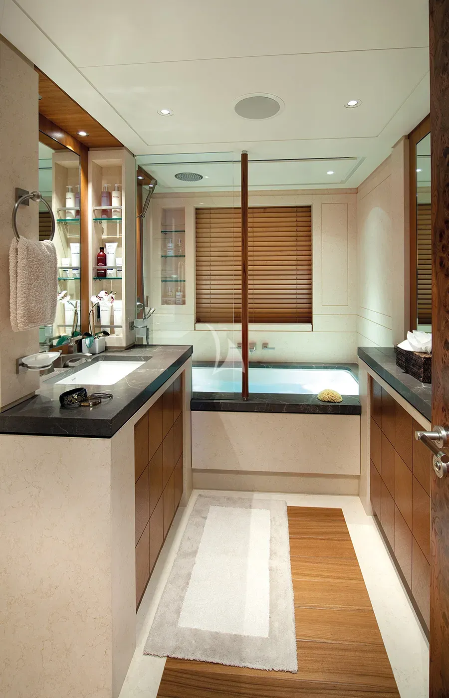 A main-deck master is complemented by six large lower-deck guest suites, two of which can transform into a full-width VIP suite as fine as the master.