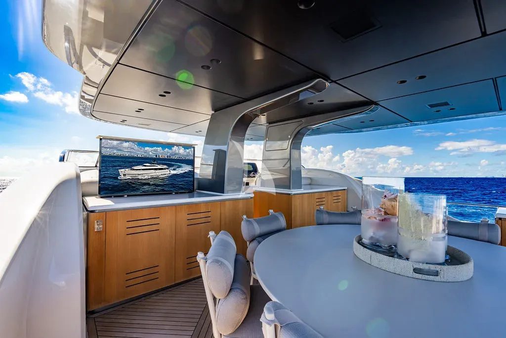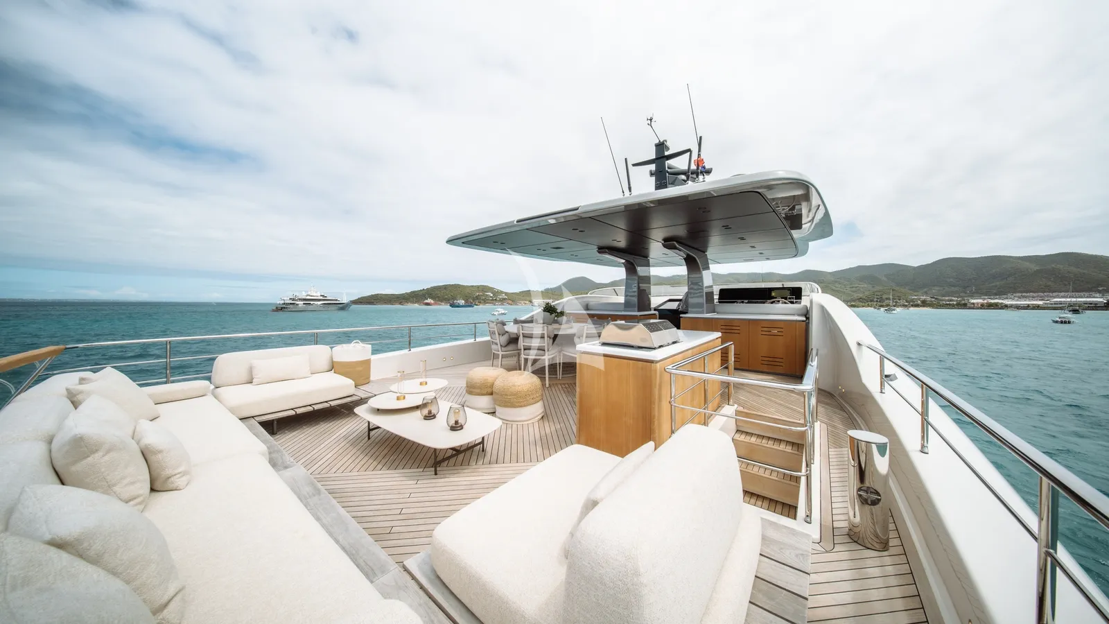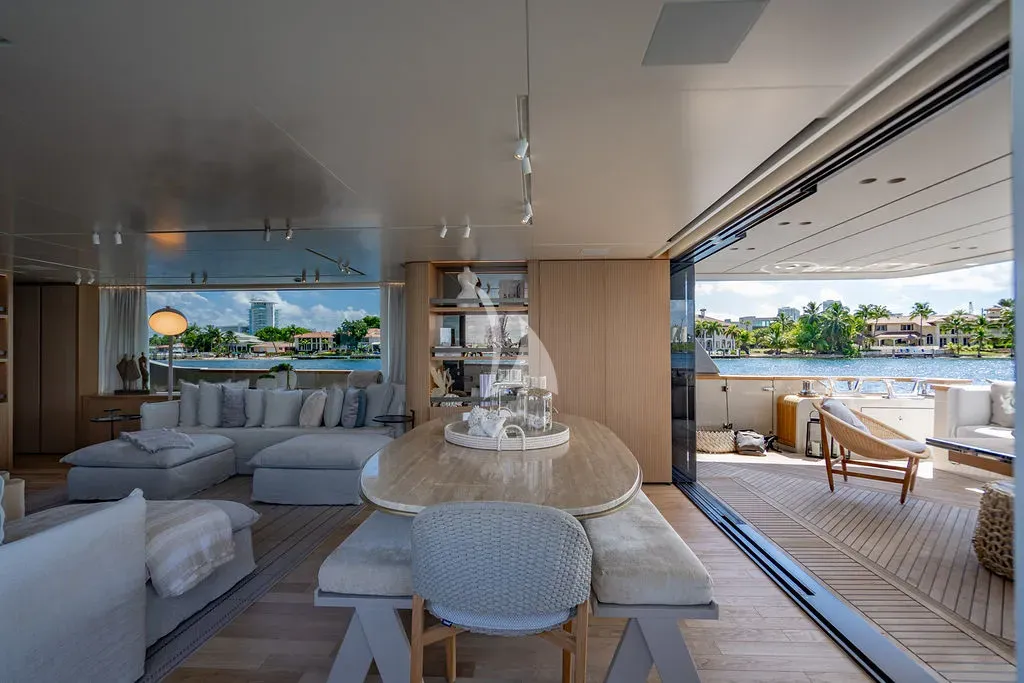 From her sleek profile to her thoughtful interior proportions, LAILA offers the volume and comfort of a much larger yacht while maintaining the agility and intimacy of a 90-footer. Her semi-displacement hull and twin MAN engines ensure a quiet, stable, and fuel-efficient cruise, perfect for exploring the Bahamas, Caribbean, or U.S. East Coast.