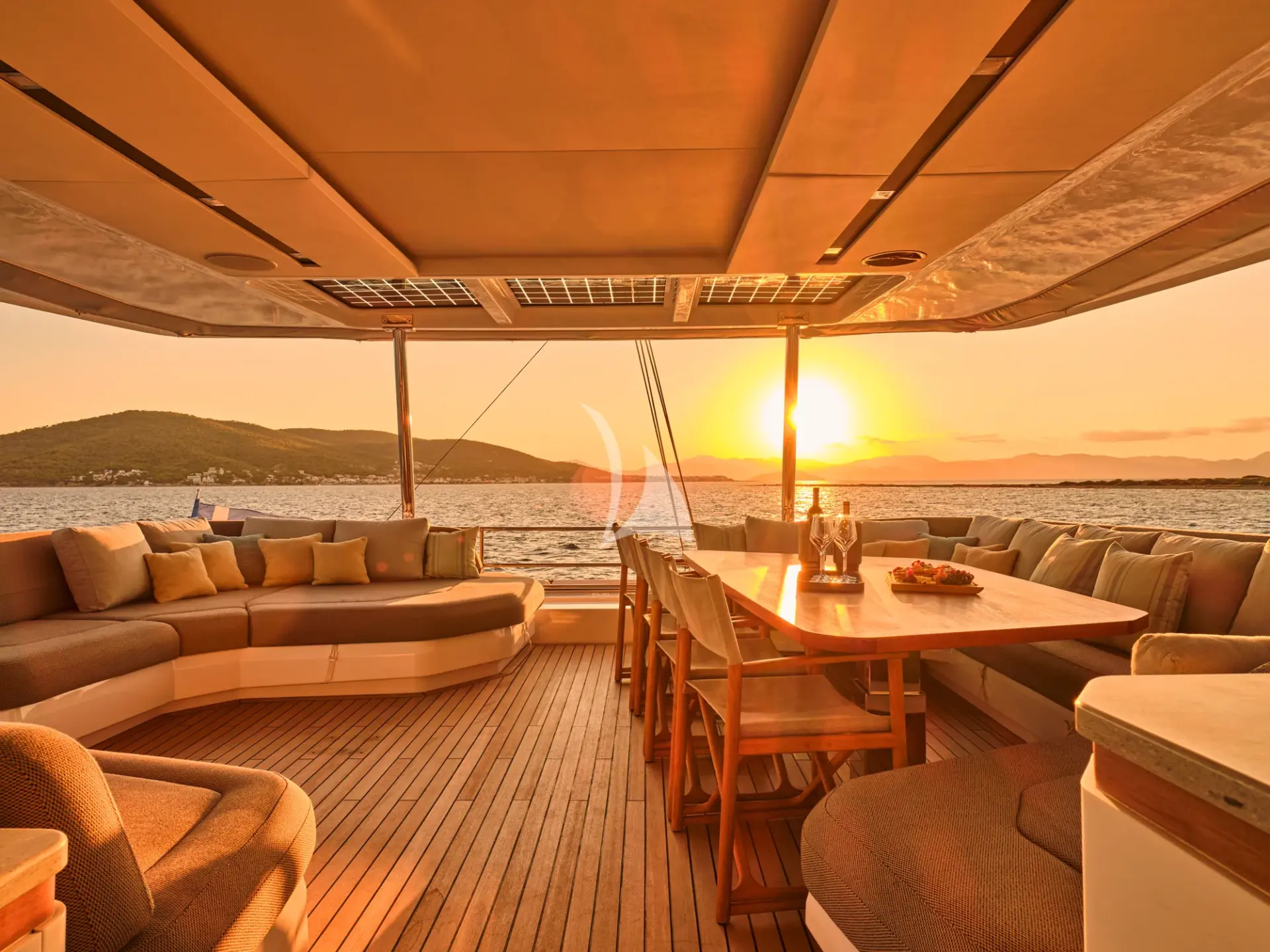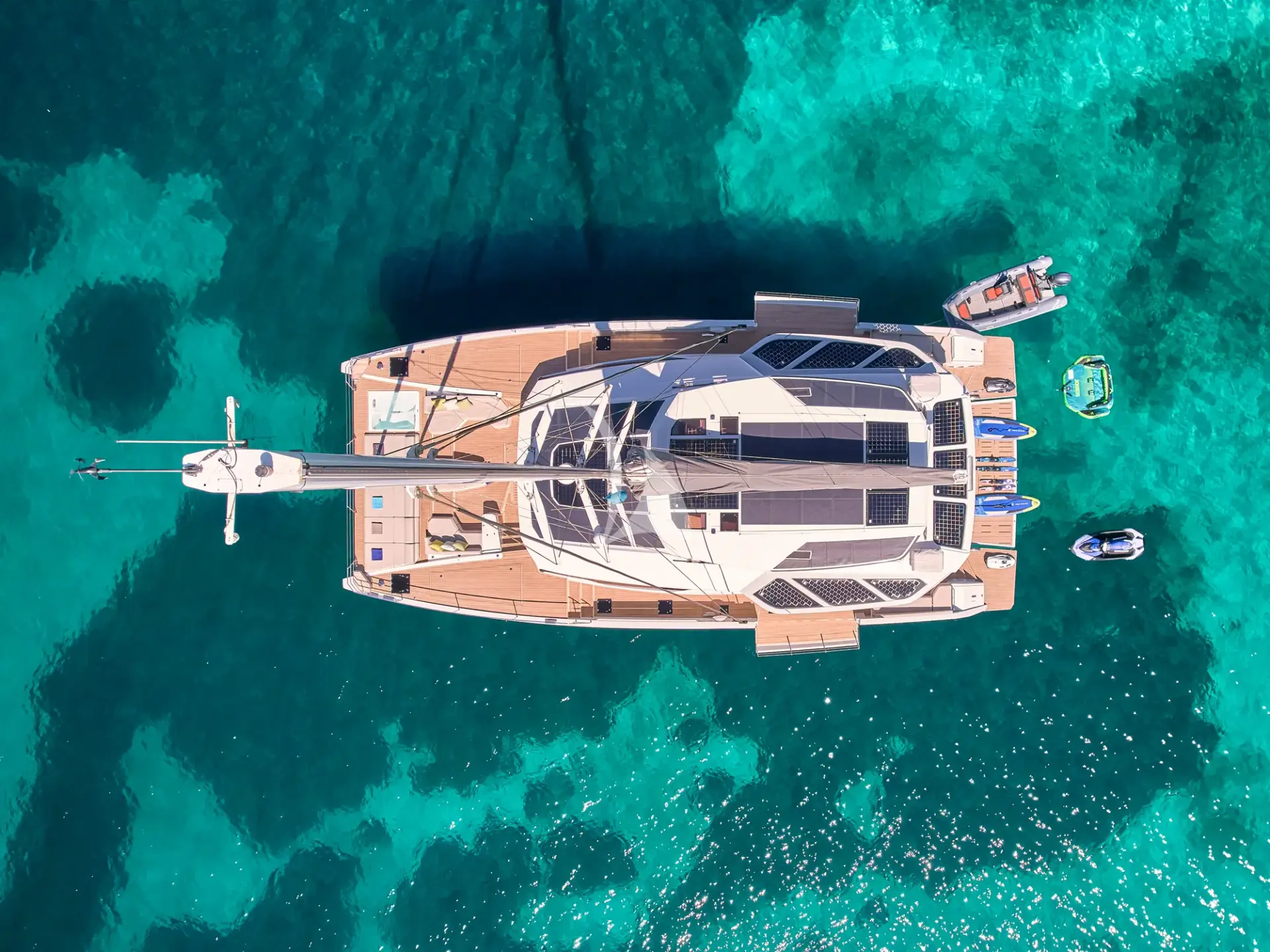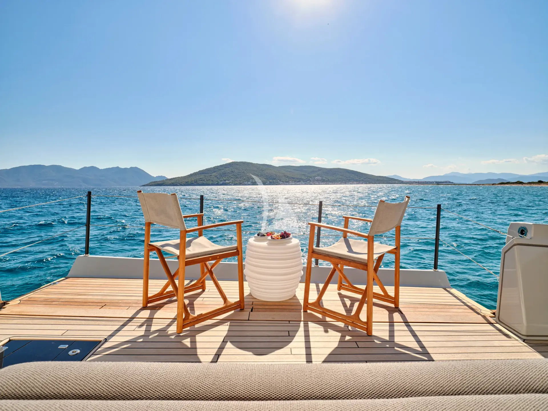 One of her biggest strengths is the sense of volume throughout: wide decks, airy interiors, and a seamless indoor–outdoor layout that makes it easy for everyone to spread out, socialise, or find a quiet corner to unwind. Whether you’re enjoying breakfast in the shade, lounging with a book, or moving between the saloon and aft deck as the breeze comes through, the flow of the yacht feels natural and unforced—perfect for unhurried days hopping between anchorages.